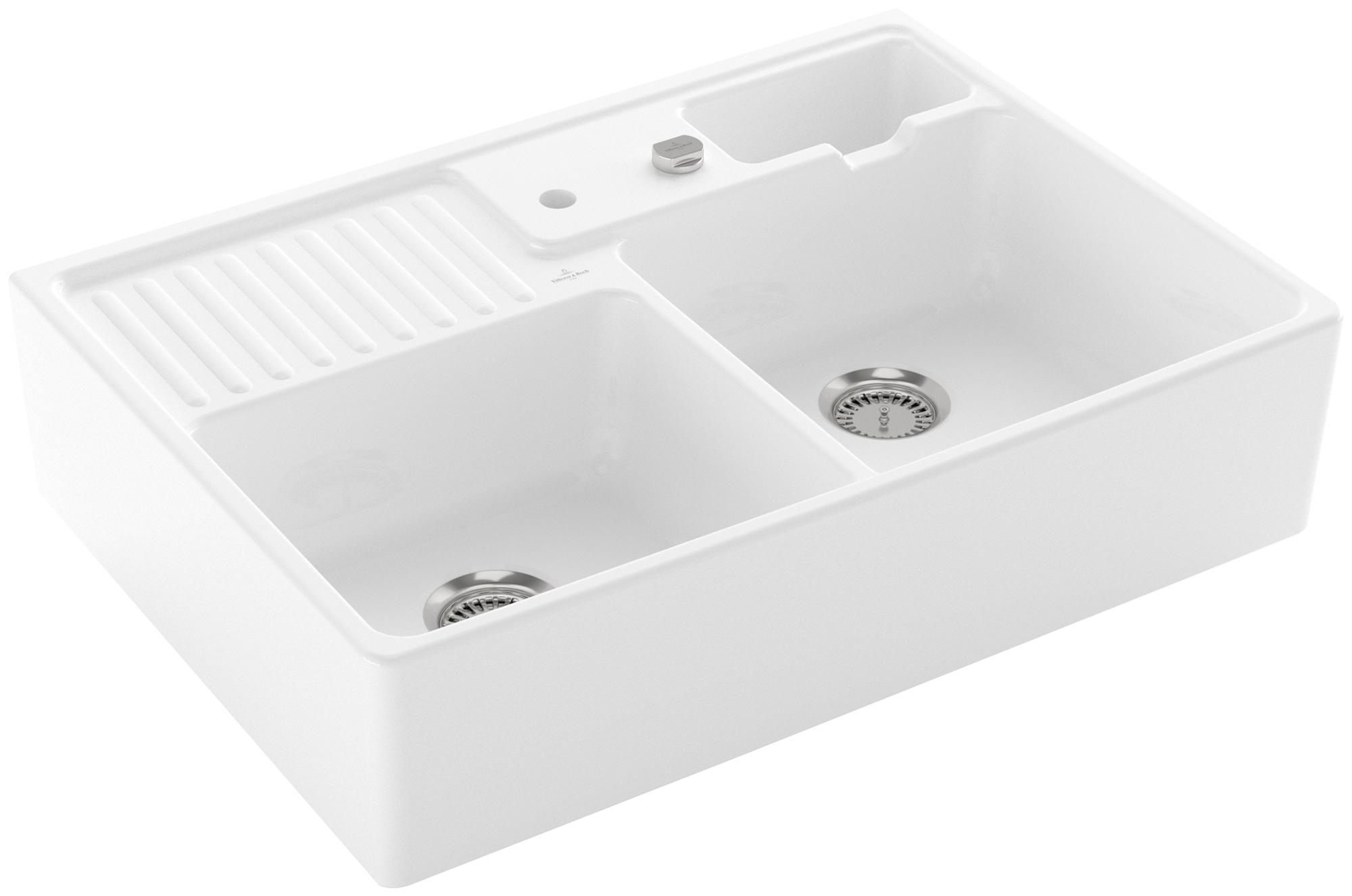 Double-bowl sink Double-bowl sink included Waste system with pop-up waste system, of Ceramic, 895x630mm, White Alpin CeramicPlus