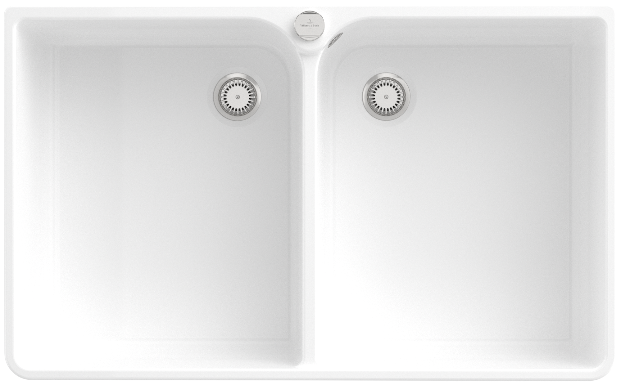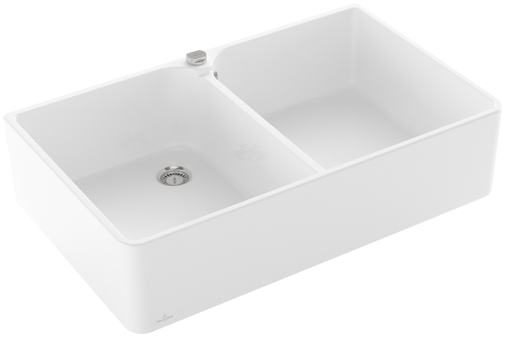 Farmhouse 90 X Double-bowl sink included Waste system with pop-up waste system, of Ceramic, 900x550mm, White Alpin CeramicPlus