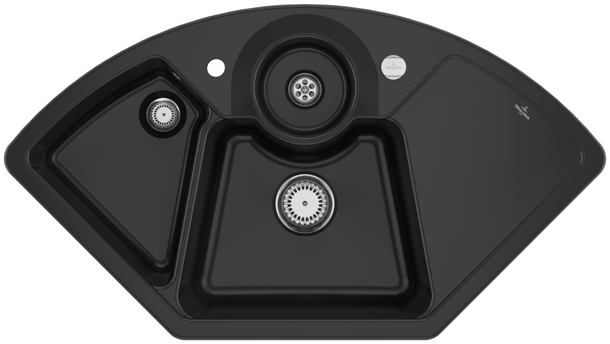 Solo corner Corner sink included Waste system with pop-up waste system, of Ceramic, 1075x600mm, Pure Black