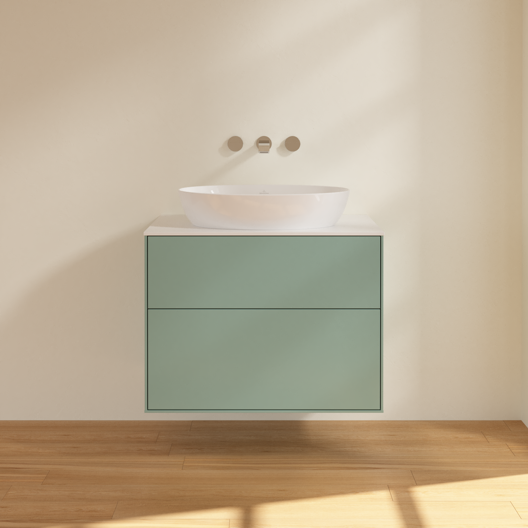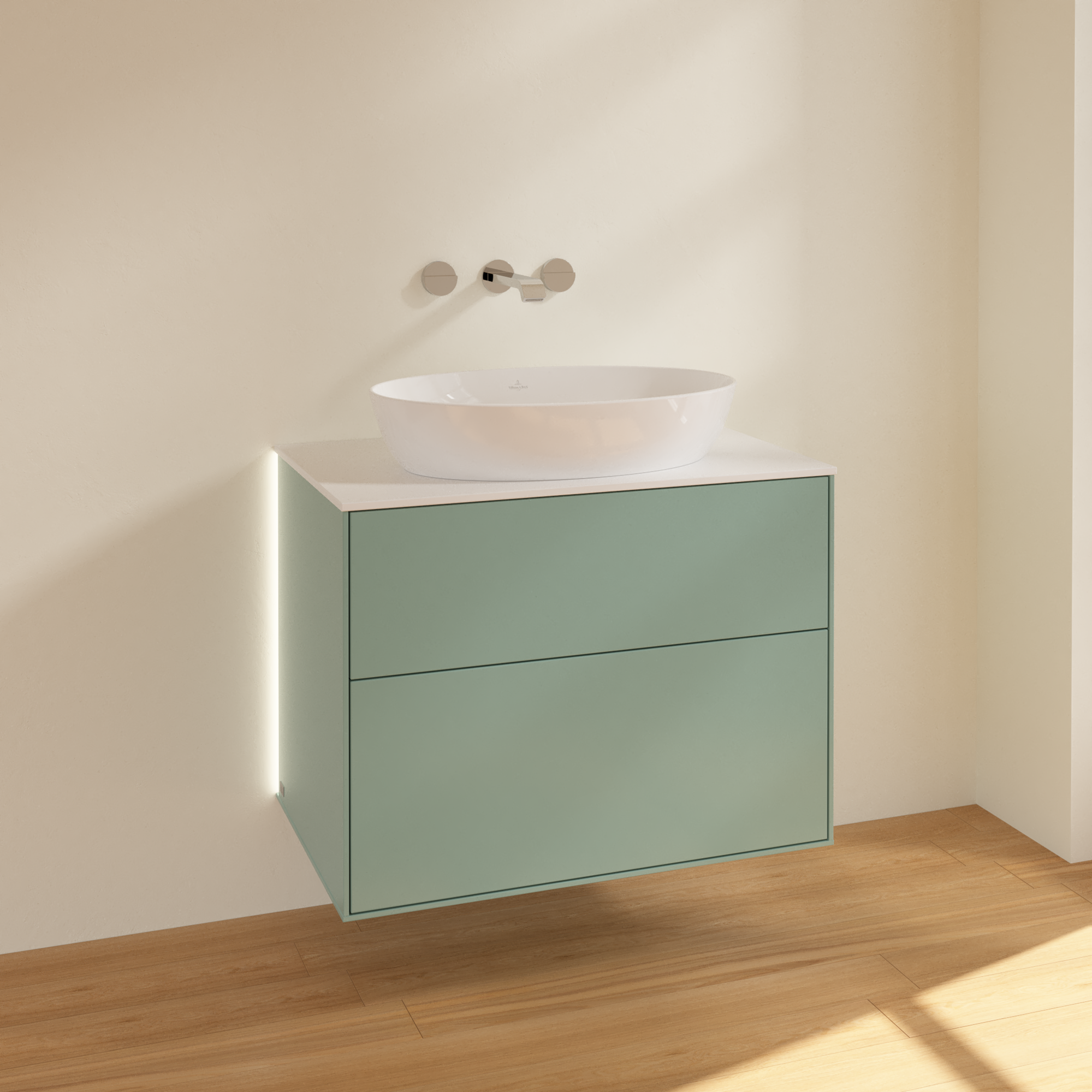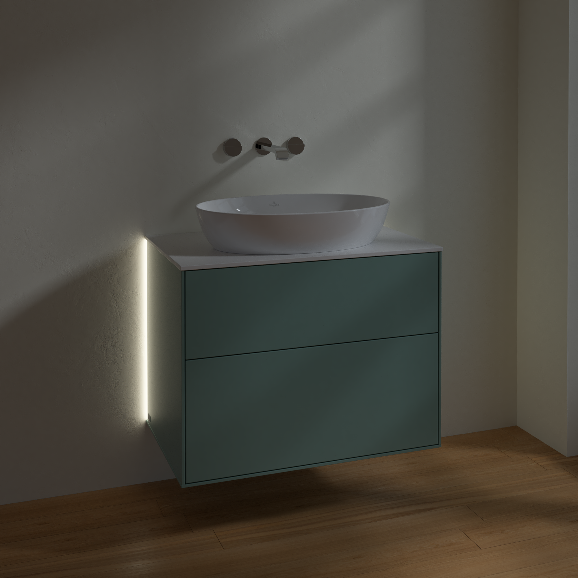 Finion Vanity unit, with lighting, 2 pull-out compartments, 800x603x501mm, Body: Olive Matt Lacquer, Front: Olive Matt Lacquer, Cover plate: Glass White Matt
