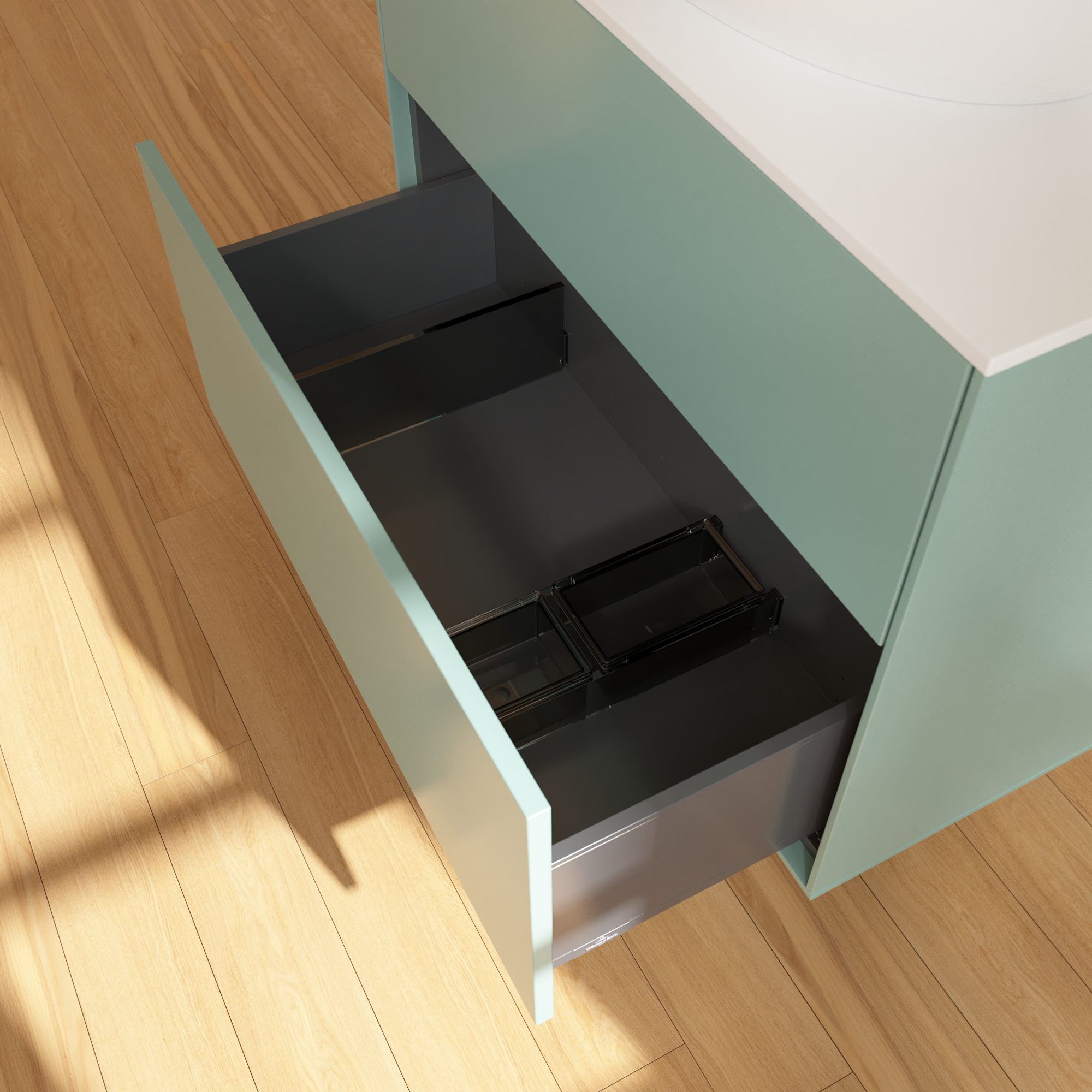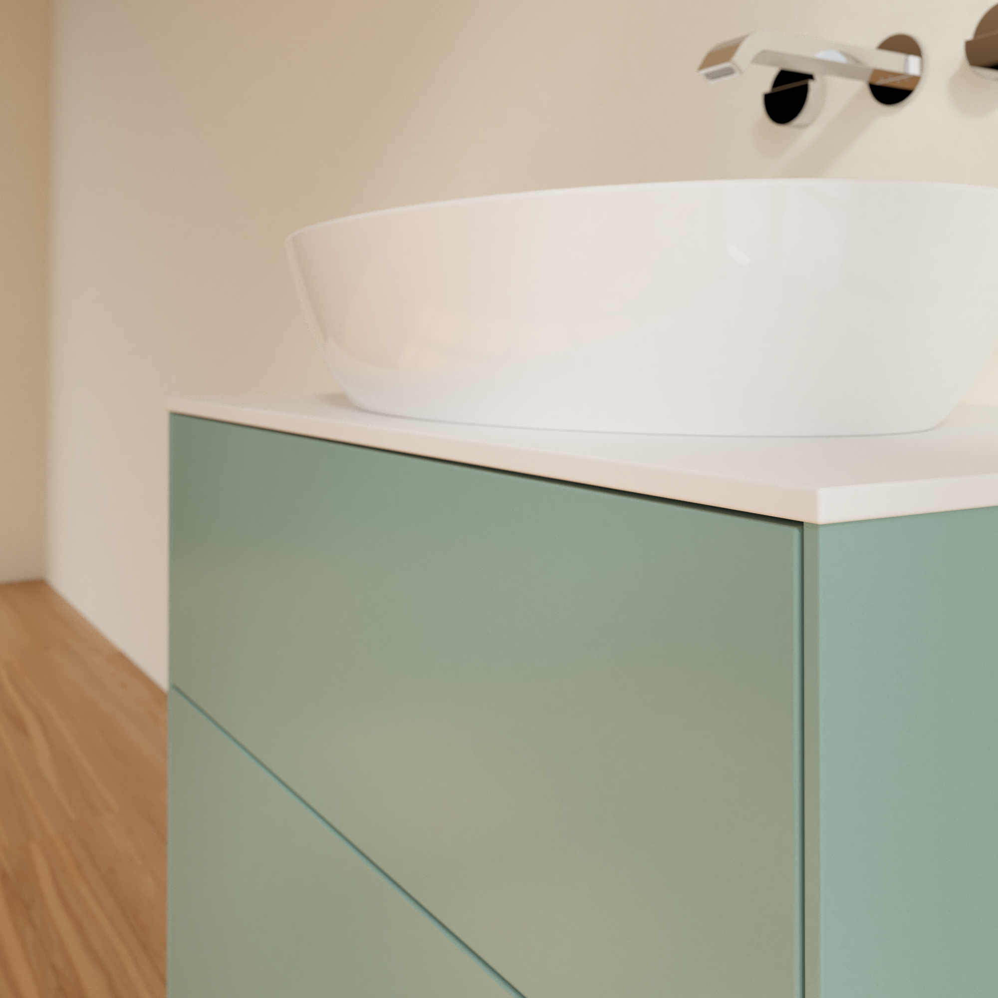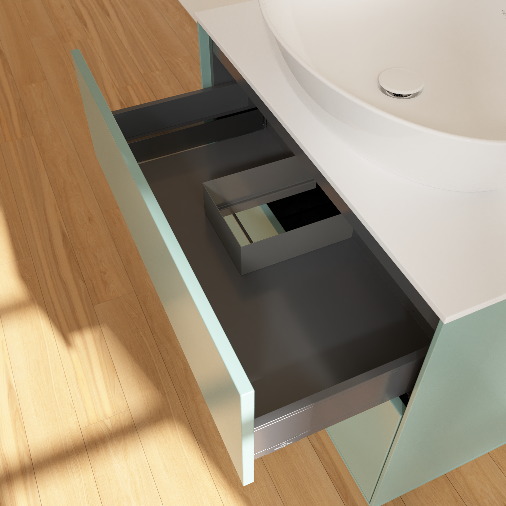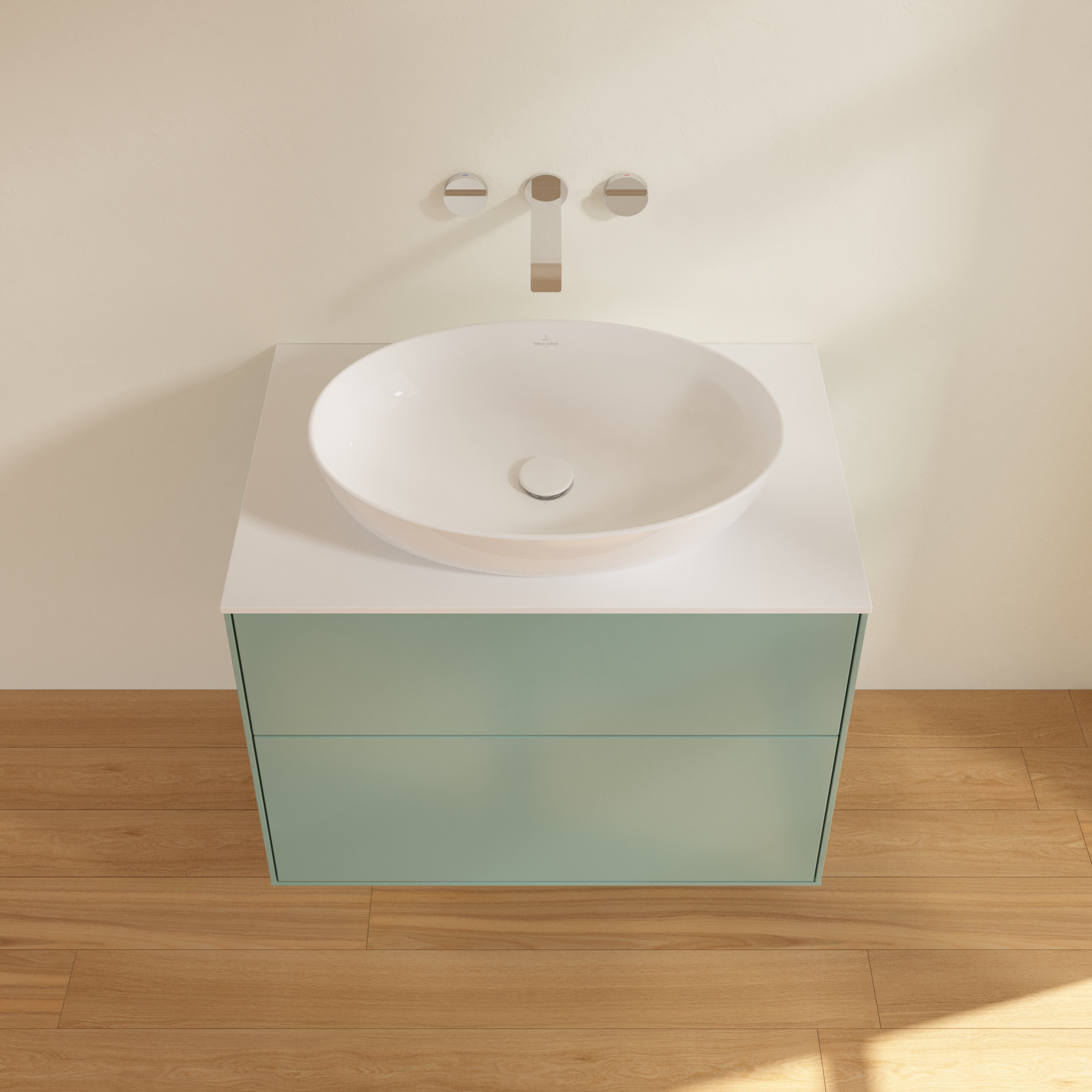 Finion Vanity unit, with lighting, 2 pull-out compartments, 800x603x501mm, Body: Olive Matt Lacquer, Front: Olive Matt Lacquer, Cover plate: Glass White Matt