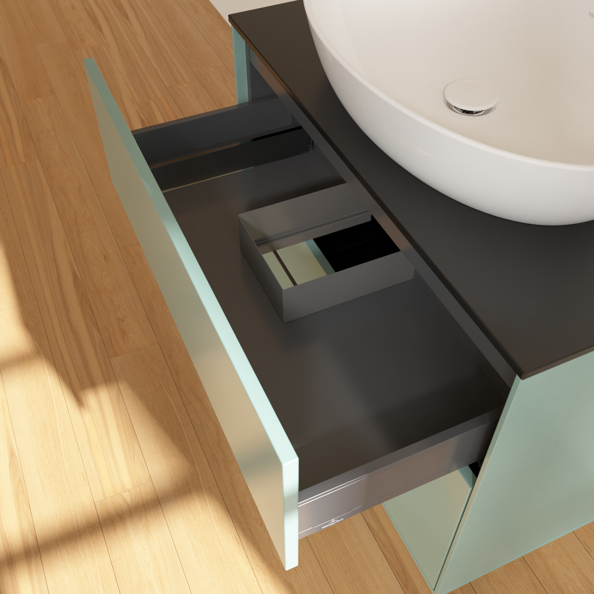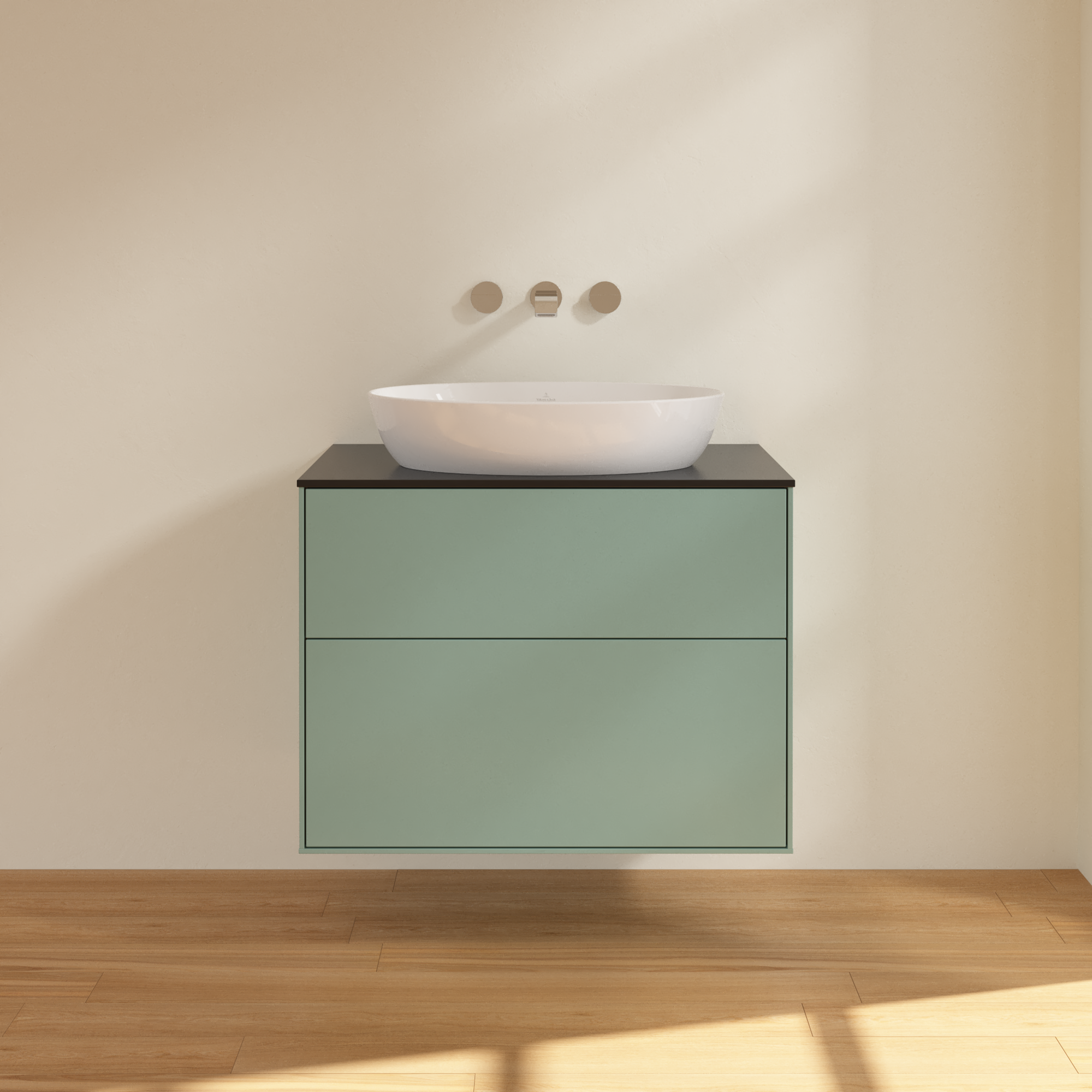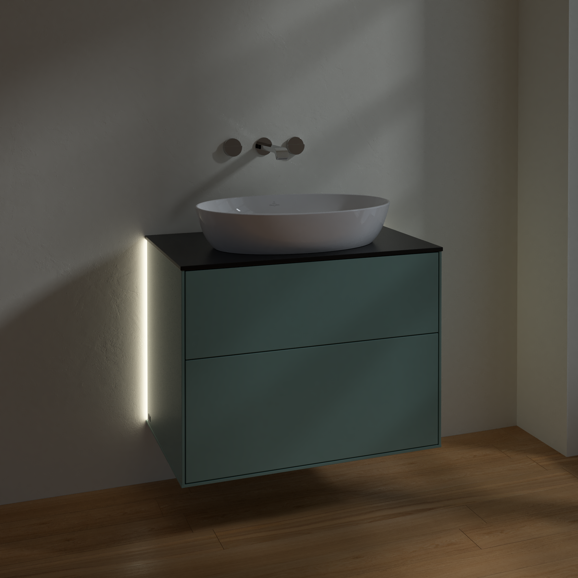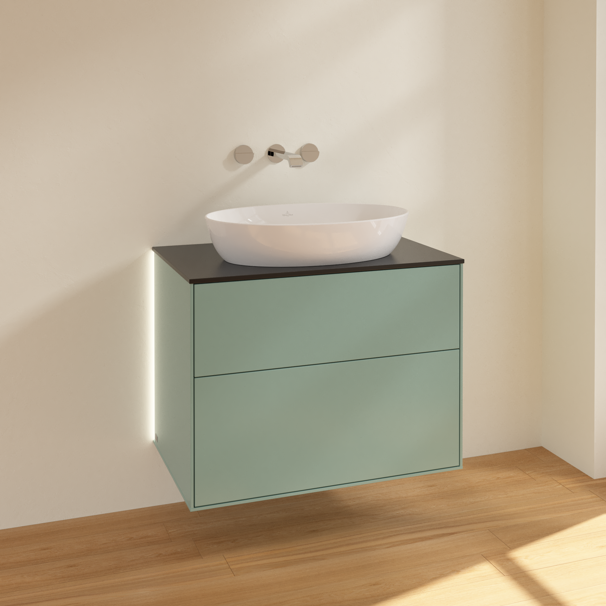 Finion Vanity unit, with lighting, 2 pull-out compartments, 800x603x501mm, Body: Olive Matt Lacquer, Front: Olive Matt Lacquer, Cover plate: Glass Black Matt