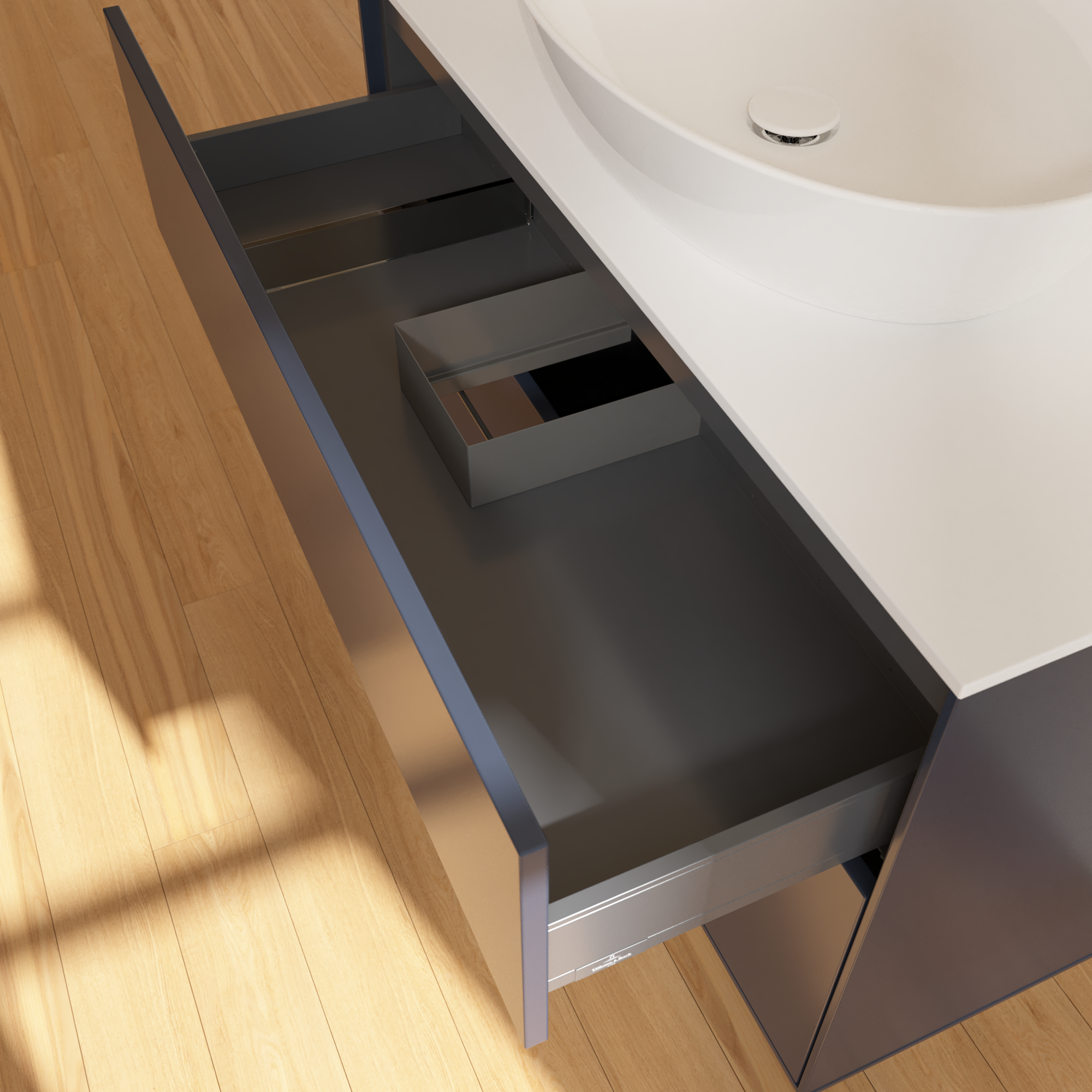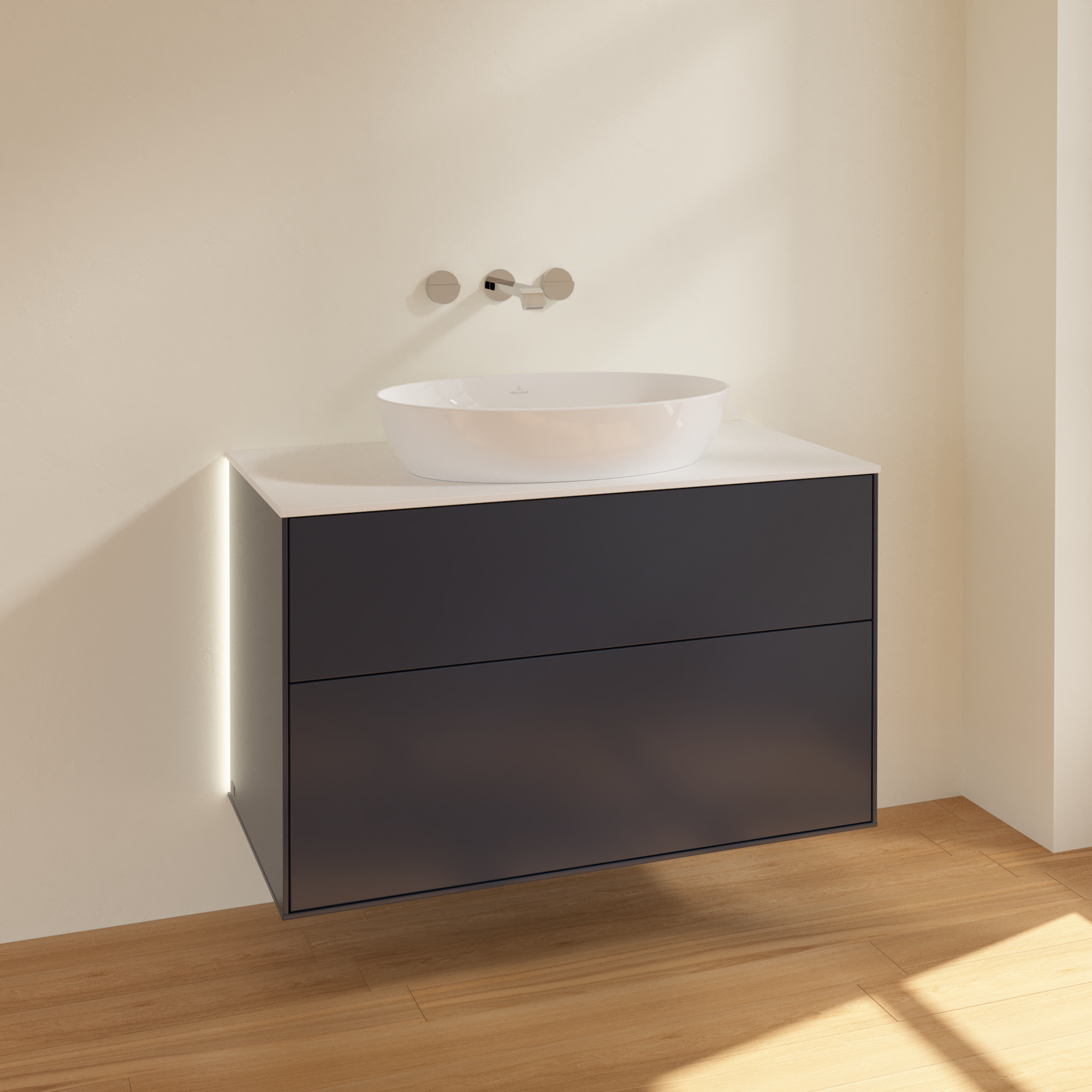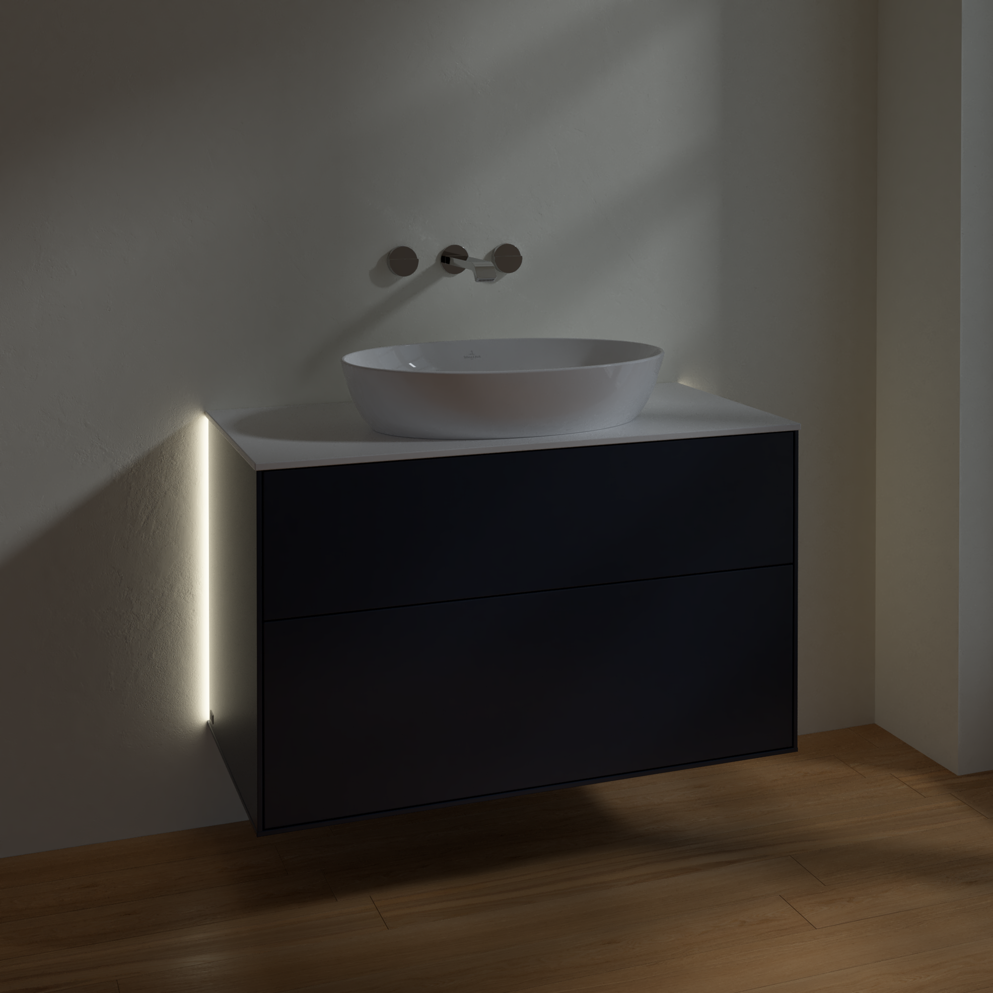 Finion Vanity unit, with lighting, 2 pull-out compartments, 1000x603x501mm, Body: Midnight Blue Matt Lacquer, Front: Midnight Blue Matt Lacquer, Cover plate: Glass White Matt