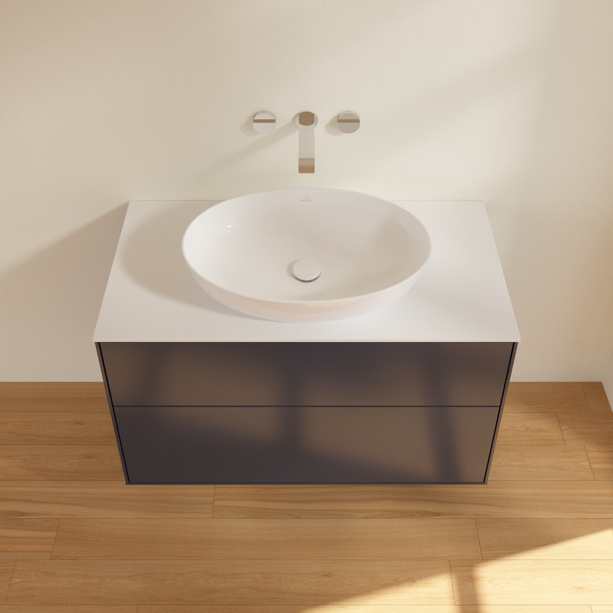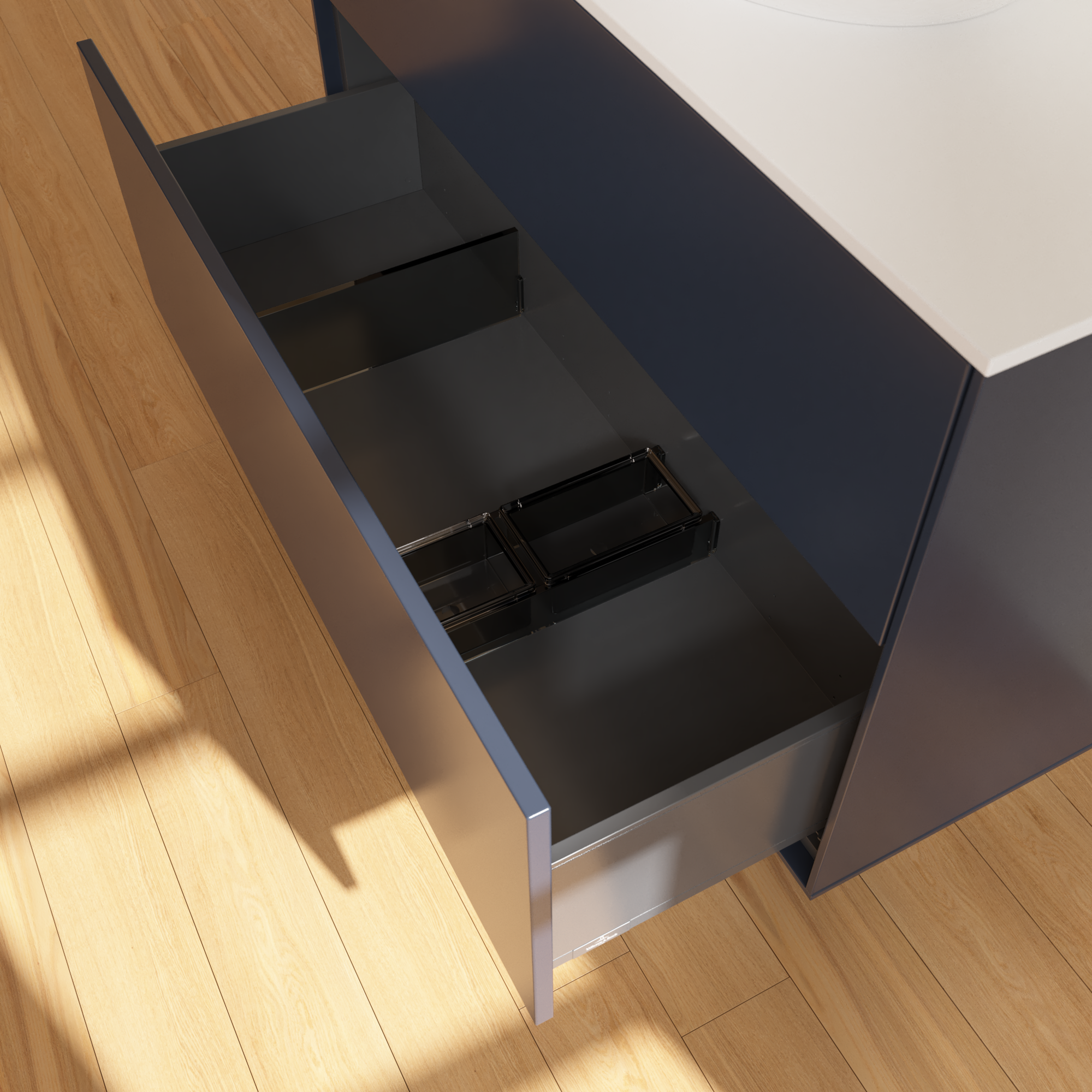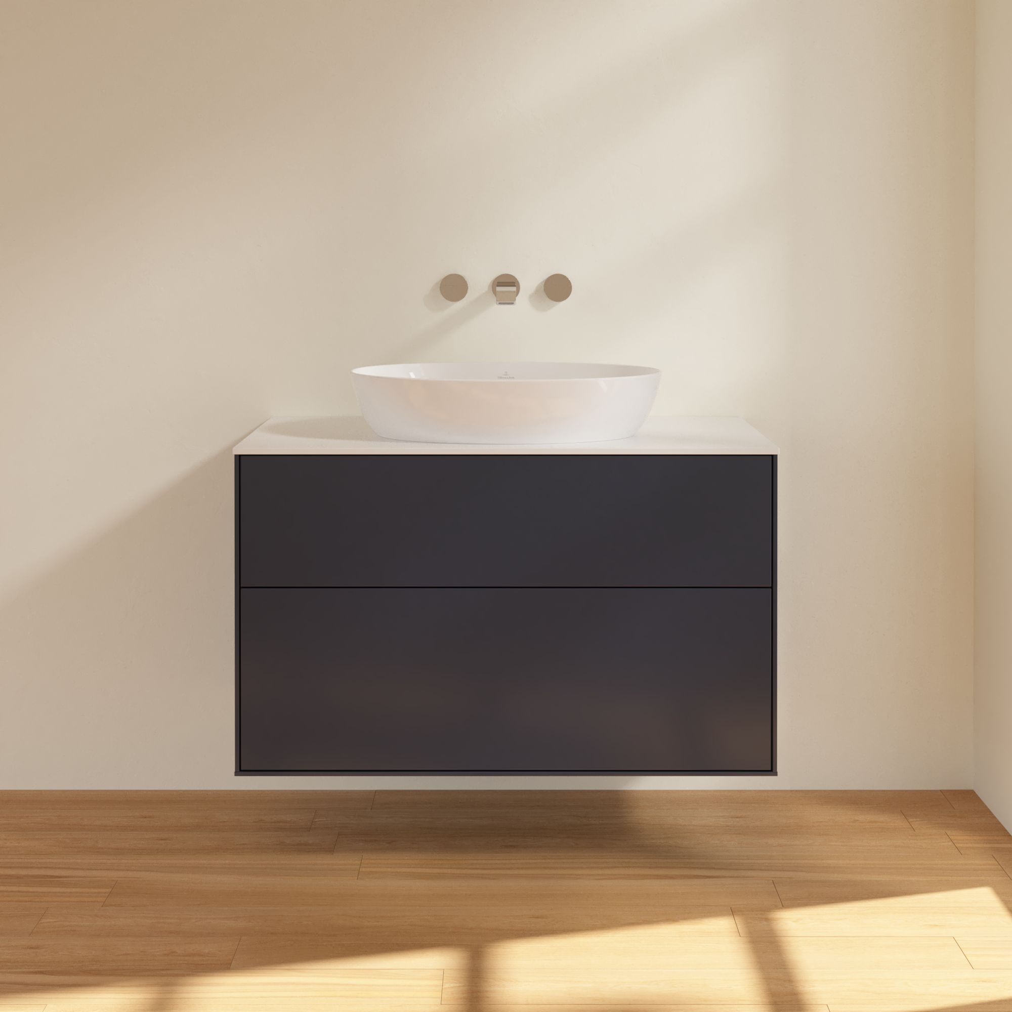 Finion Vanity unit, with lighting, 2 pull-out compartments, 1000x603x501mm, Body: Midnight Blue Matt Lacquer, Front: Midnight Blue Matt Lacquer, Cover plate: Glass White Matt