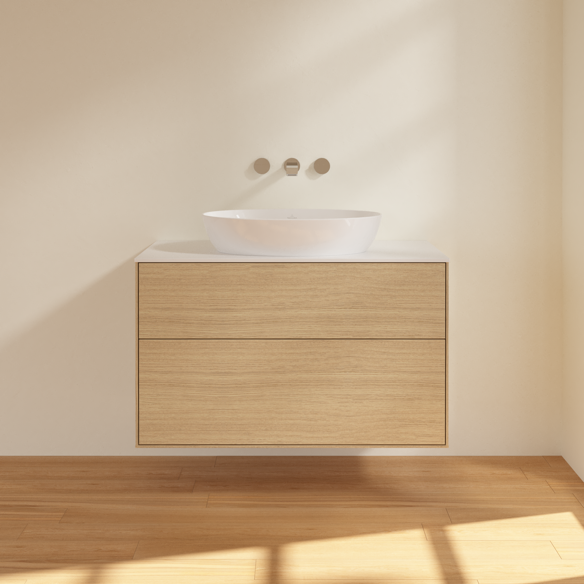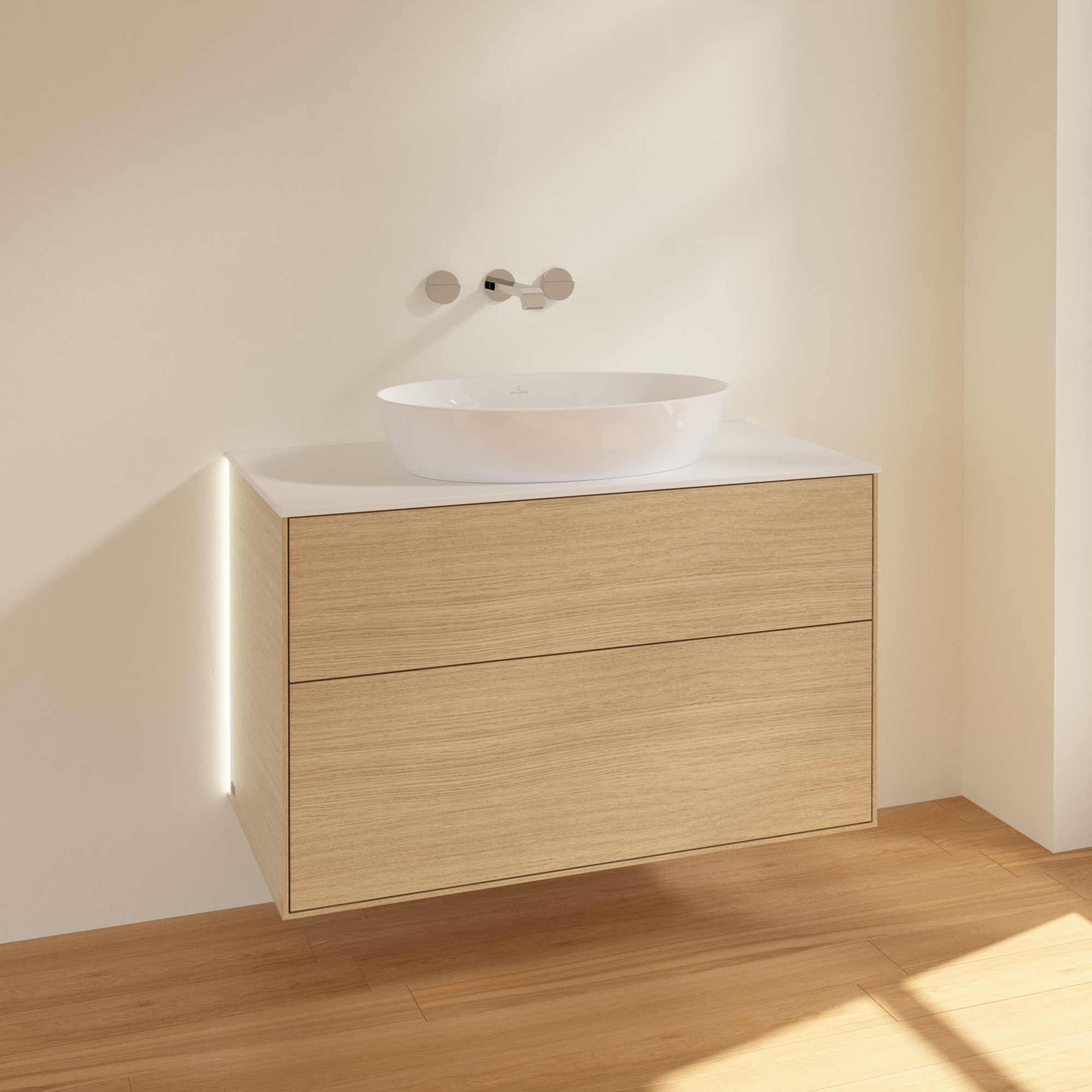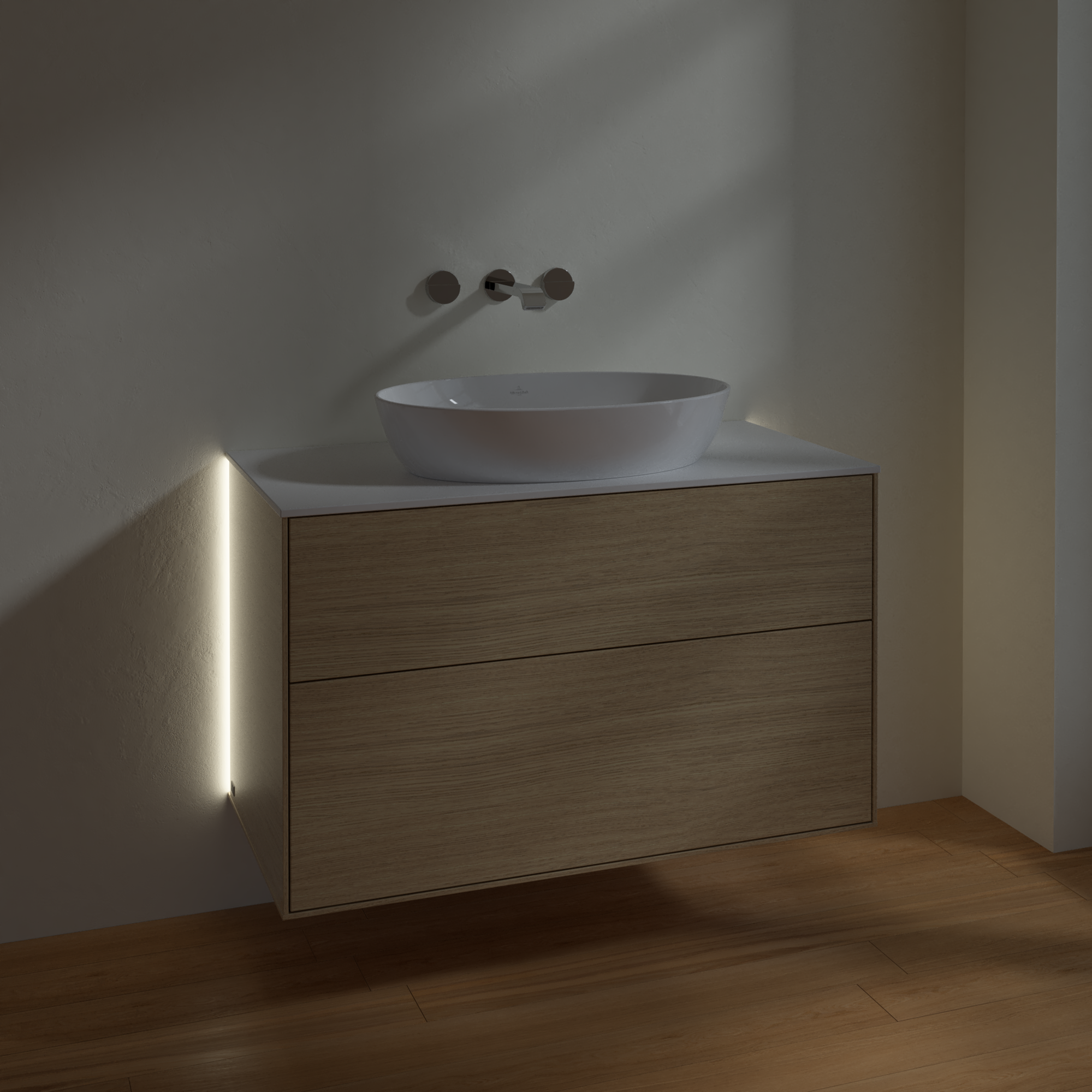 Finion Vanity unit, with lighting, 2 pull-out compartments, 1000x603x501mm, Body: Oak Veneer, Front: Oak Veneer, Cover plate: Glass White Matt