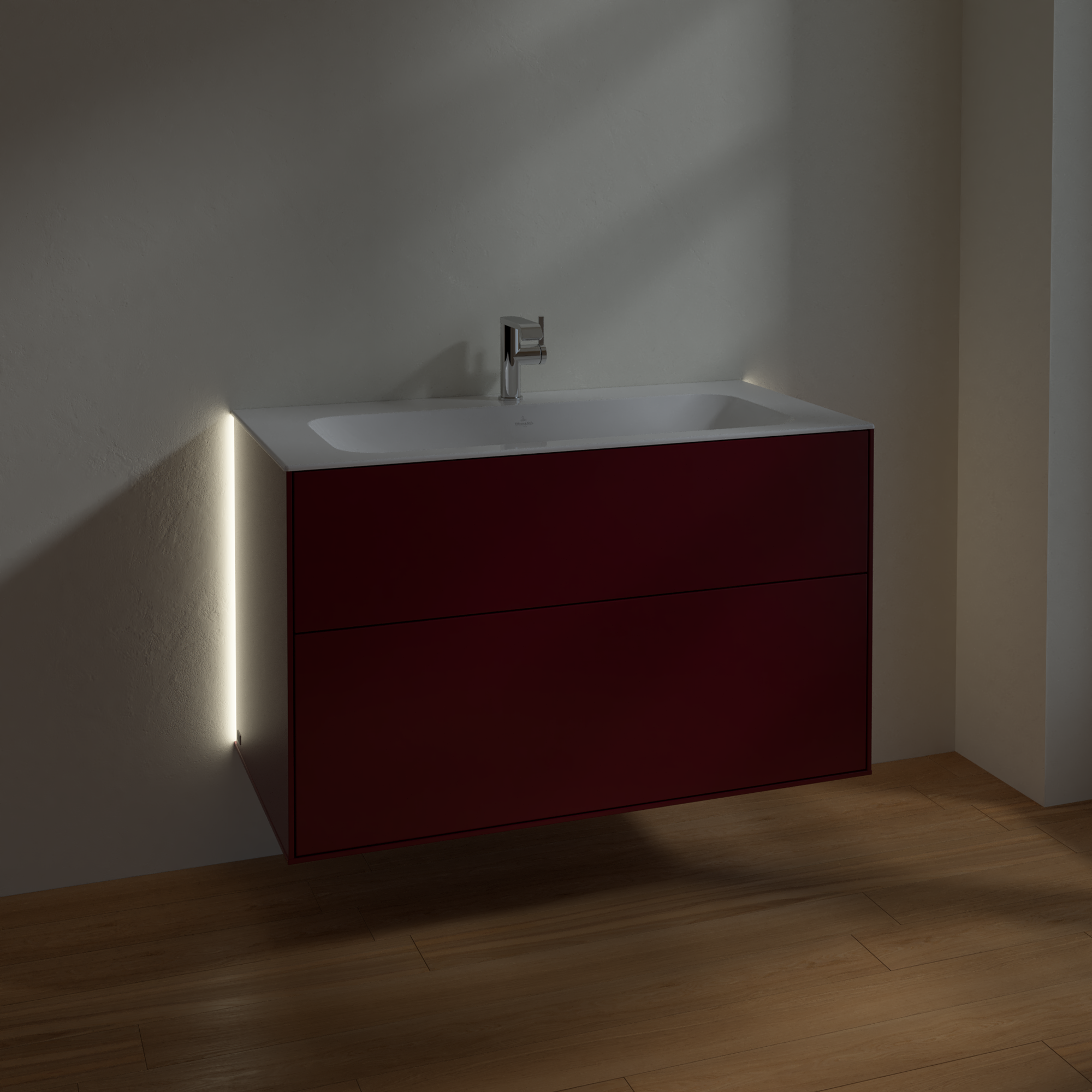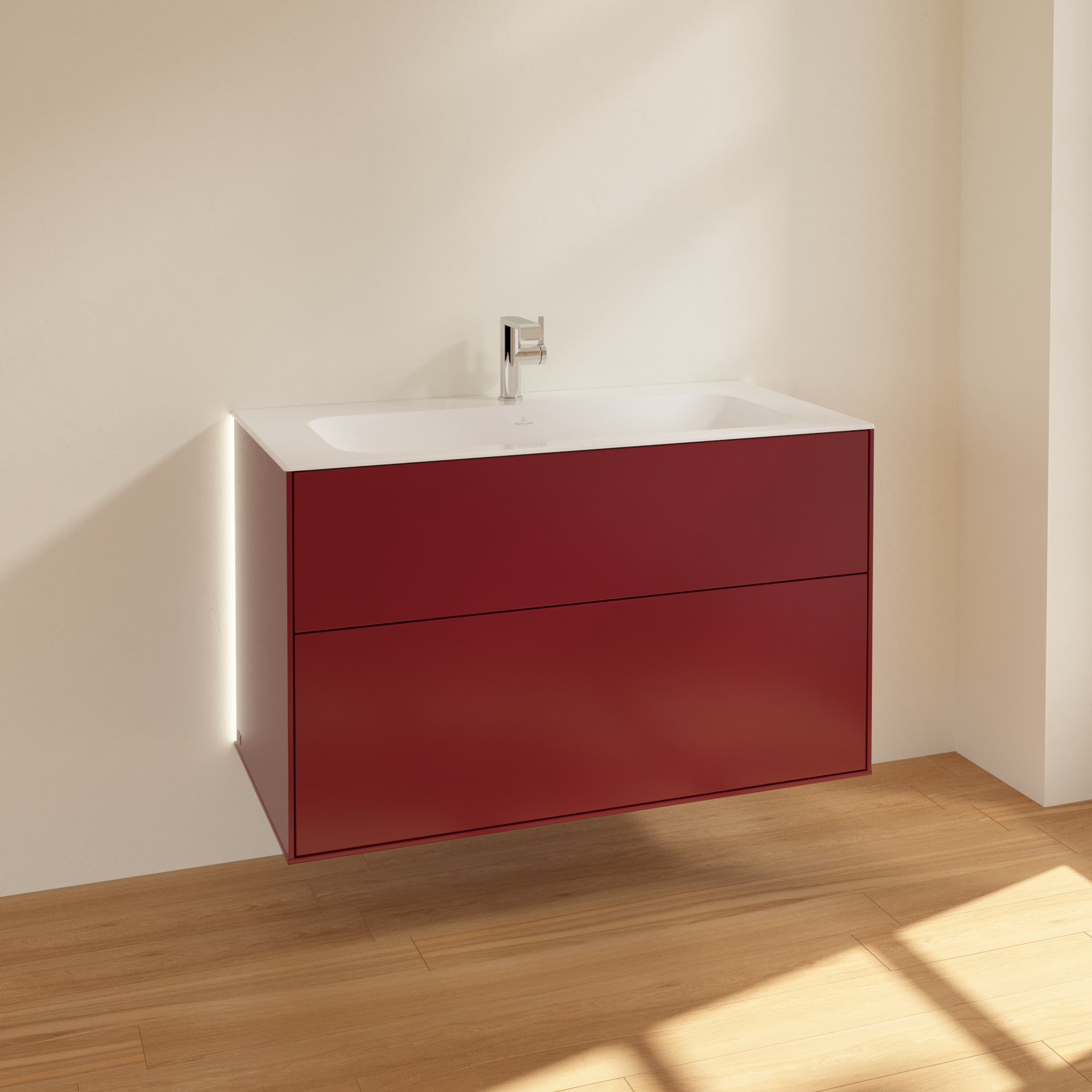 Finion Vanity unit, with lighting, 2 pull-out compartments, 996x591x498mm, Body: Peony Matt Lacquer, Front: Peony Matt Lacquer