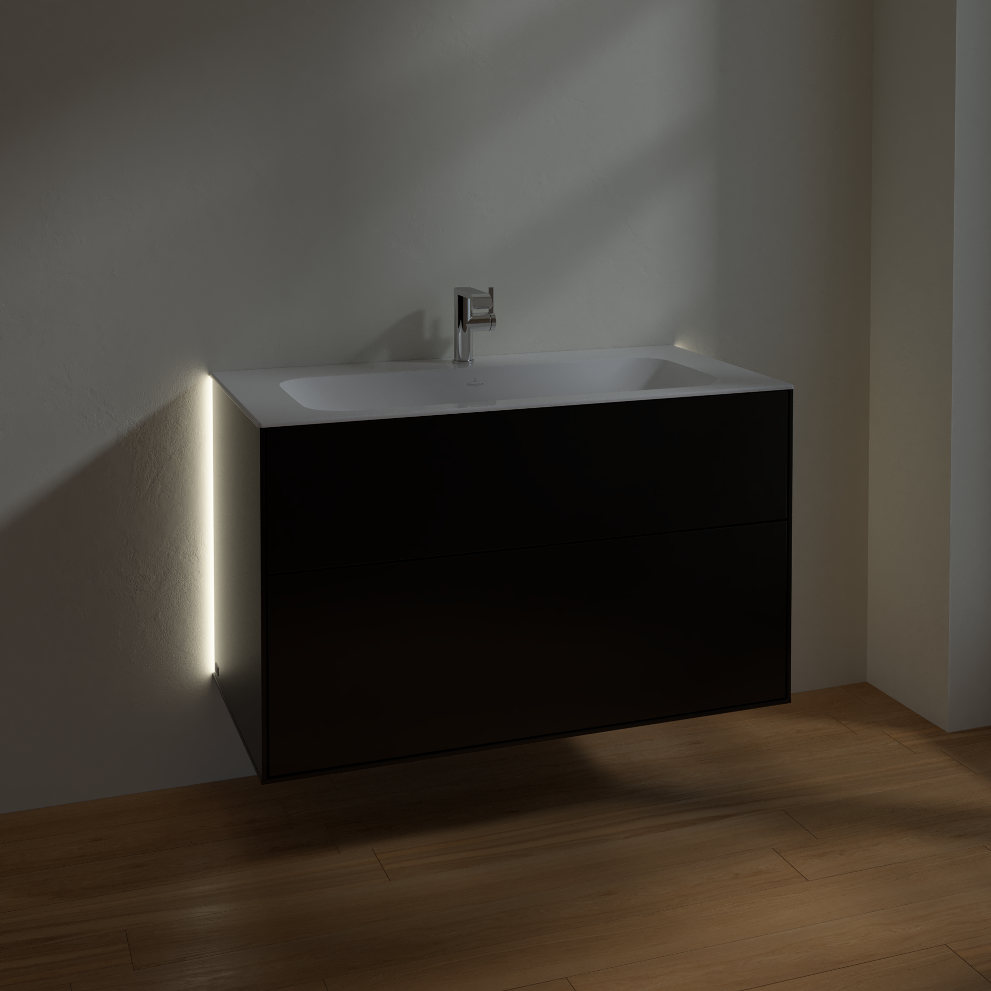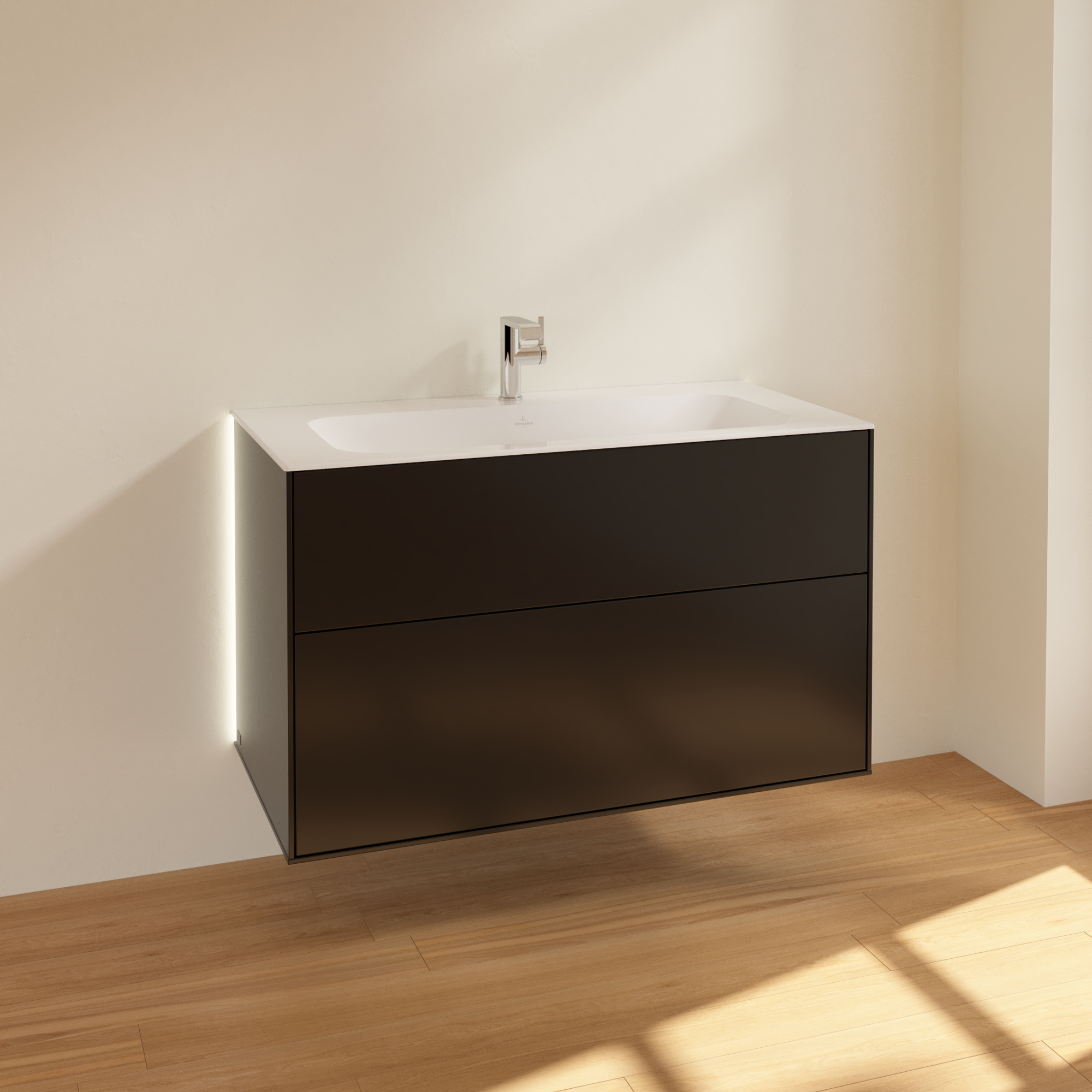 Finion Vanity unit, with lighting, 2 pull-out compartments, 996x591x498mm, Body: Black Matt Lacquer, Front: Black Matt Lacquer