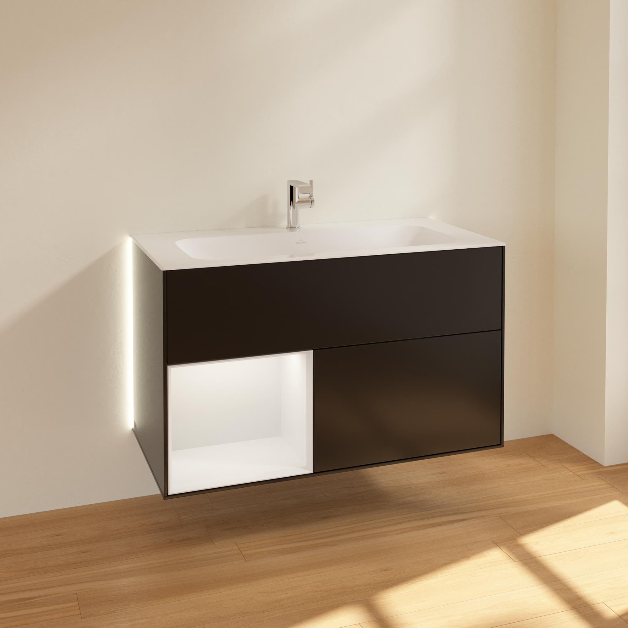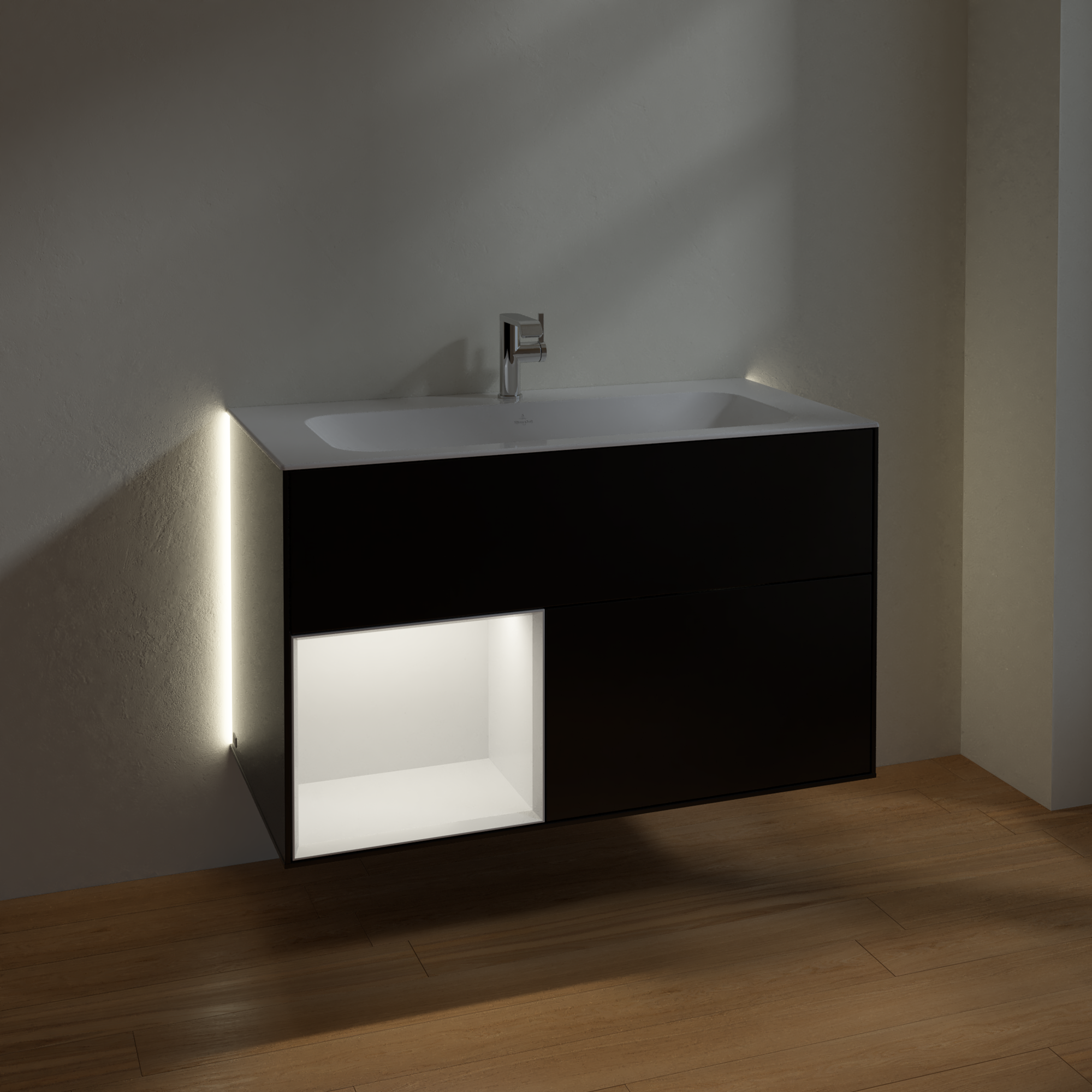 Finion Vanity unit, with lighting, 2 pull-out compartments, 996x591x498mm, Body: Black Matt Lacquer, Front: Black Matt Lacquer, Shelf: Anthracite Matt Lacquer