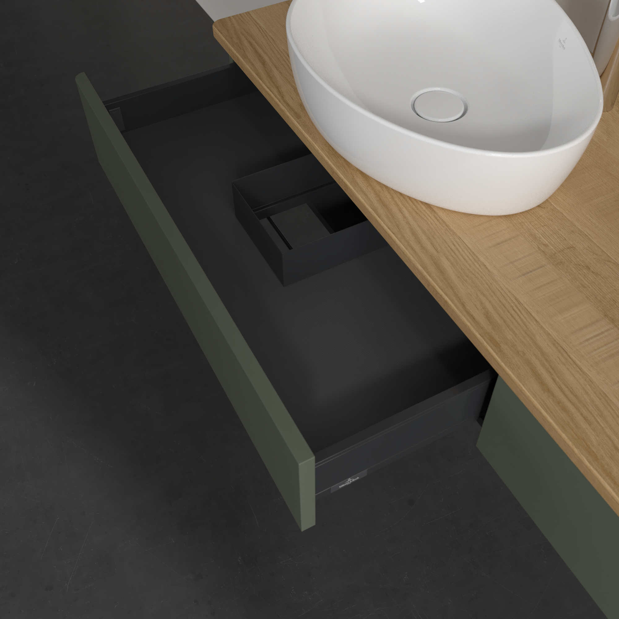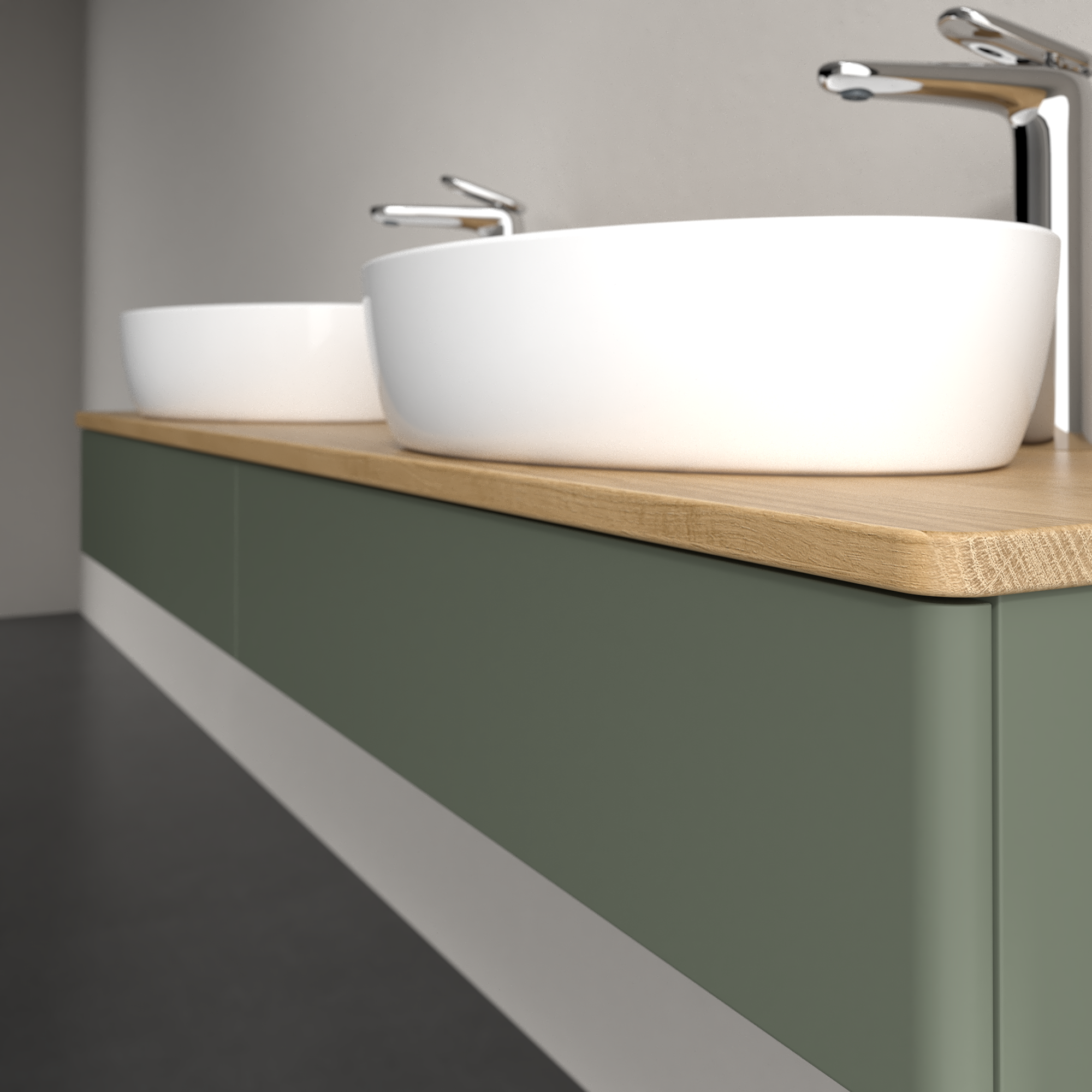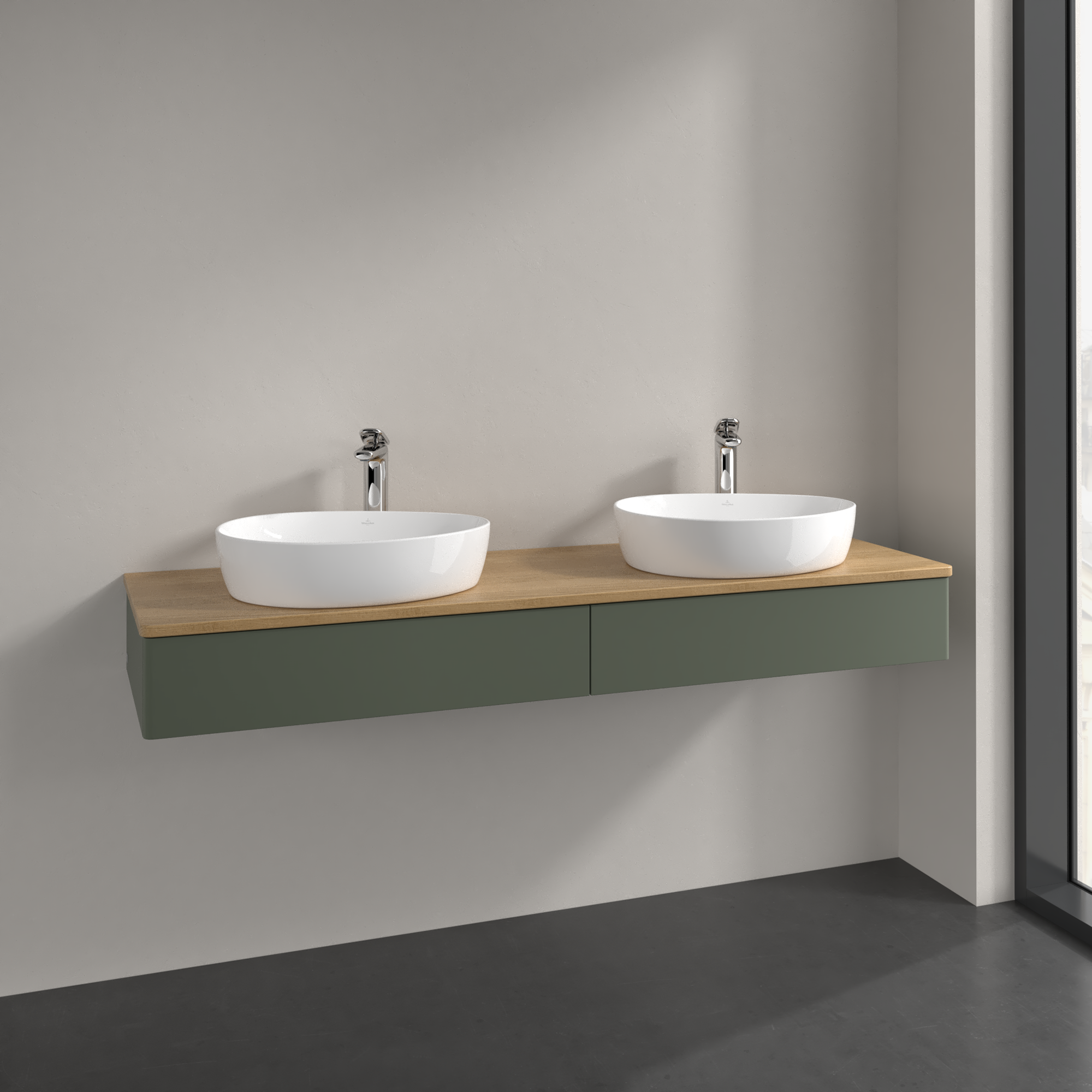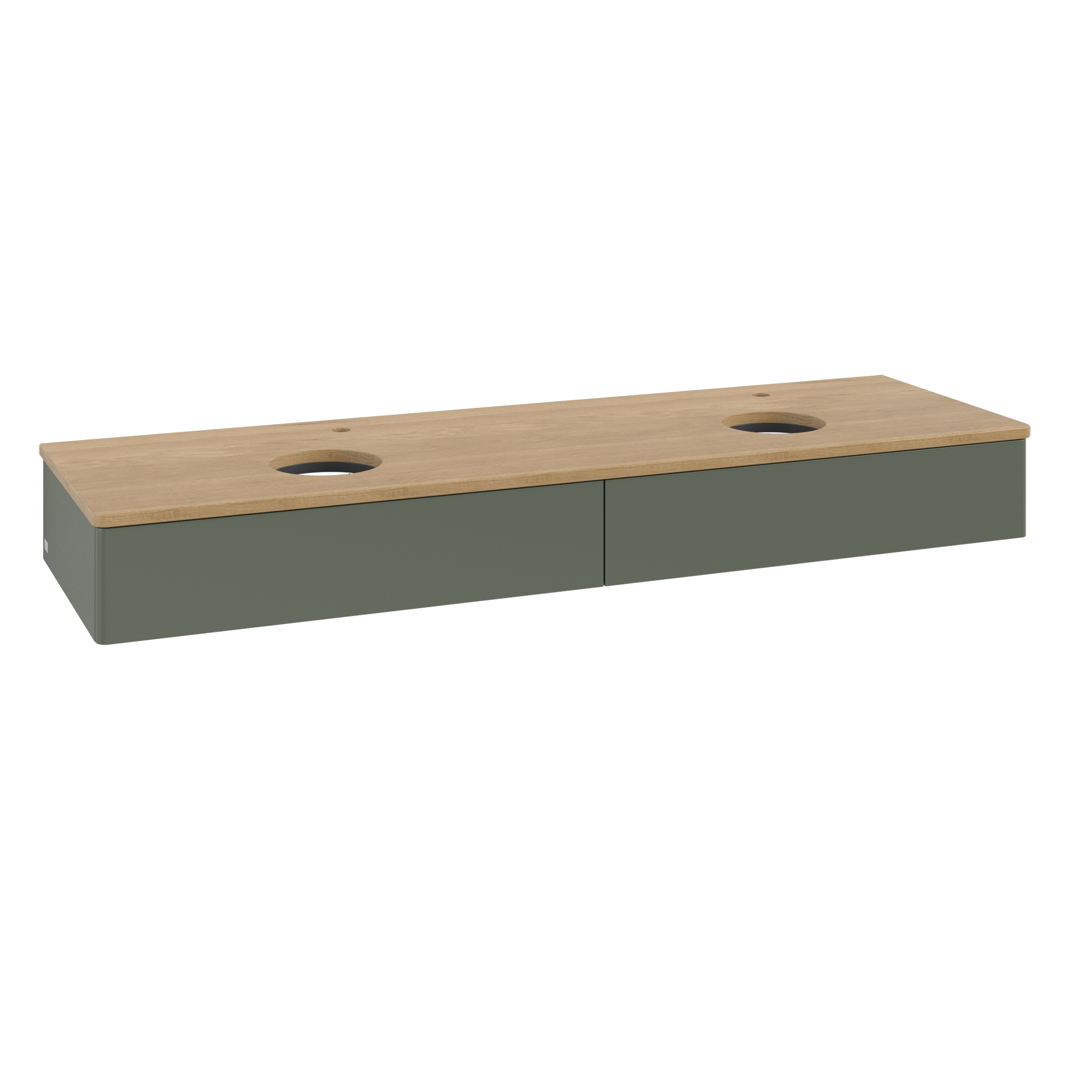 Antao Vanity unit, 2 pull-out compartments, 1600x190x500mm, Front without structure, Body: Leaf Green Matt Lacquer, Front: Leaf Green Matt Lacquer, Cover plate: Honey Oak
