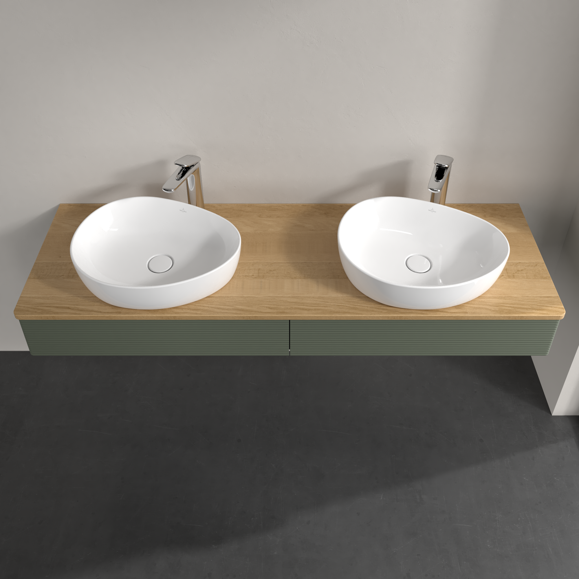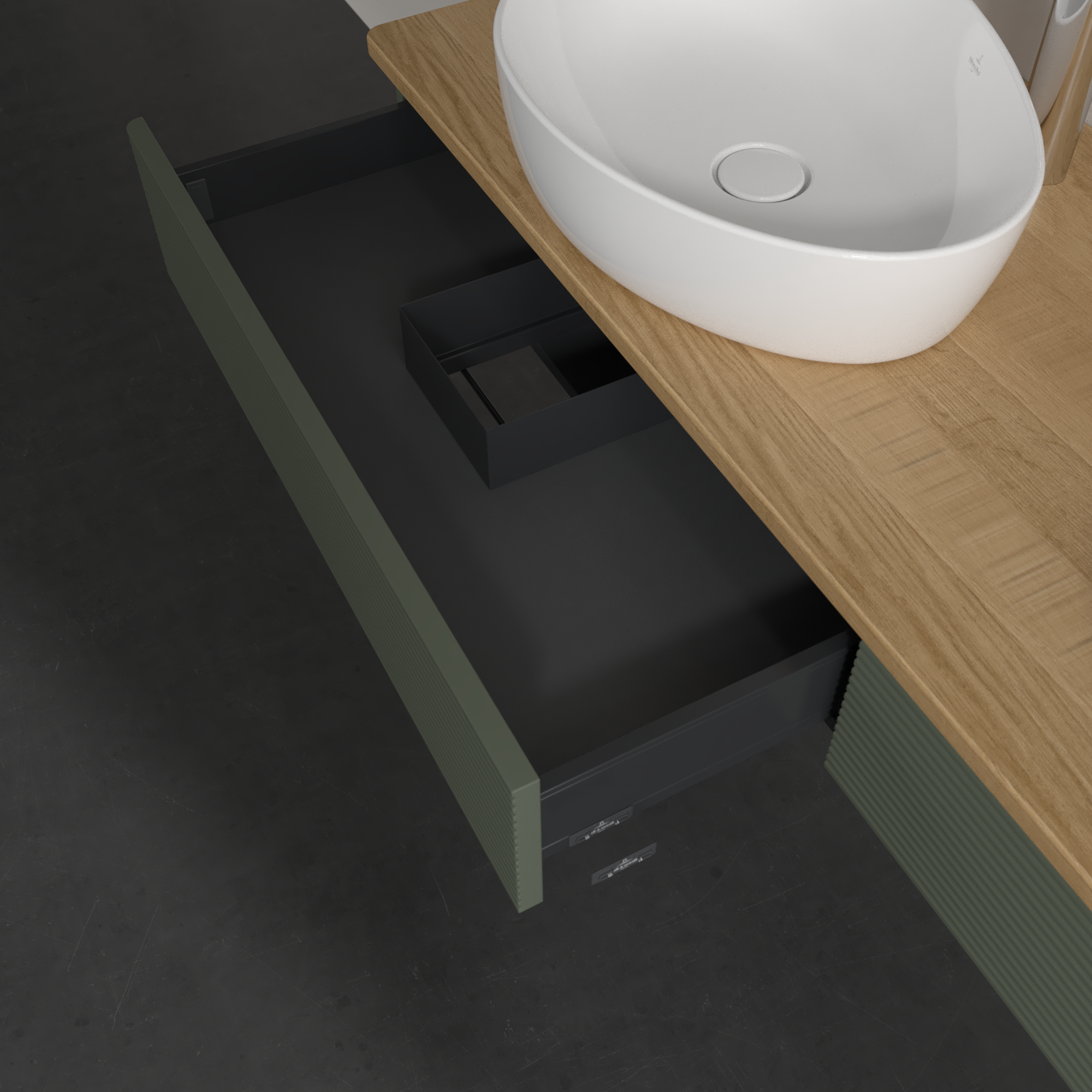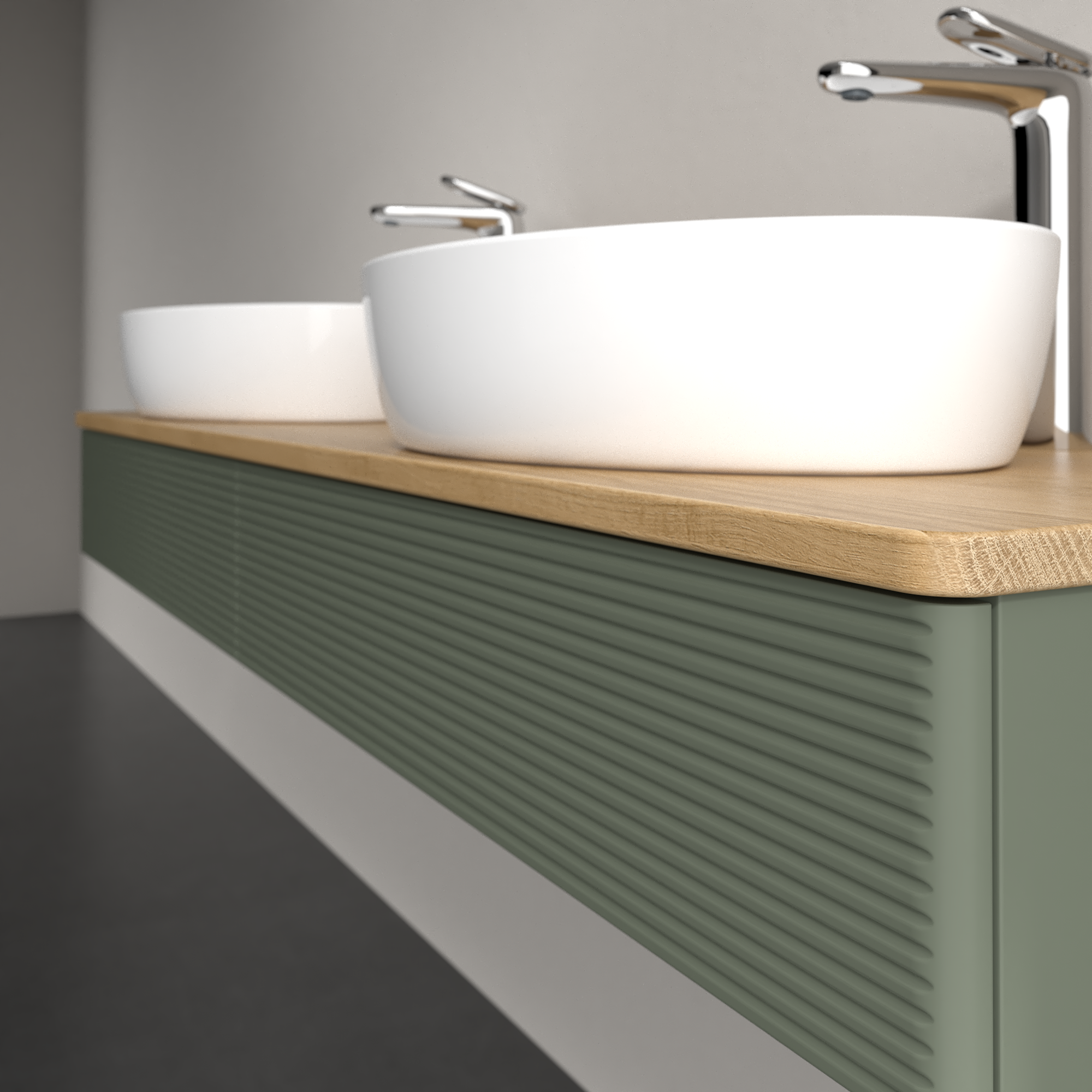 Antao Vanity unit, 2 pull-out compartments, 1600x190x500mm, Front with grain texture, Body: Leaf Green Matt Lacquer, Front: Leaf Green Matt Lacquer, Cover plate: Honey Oak