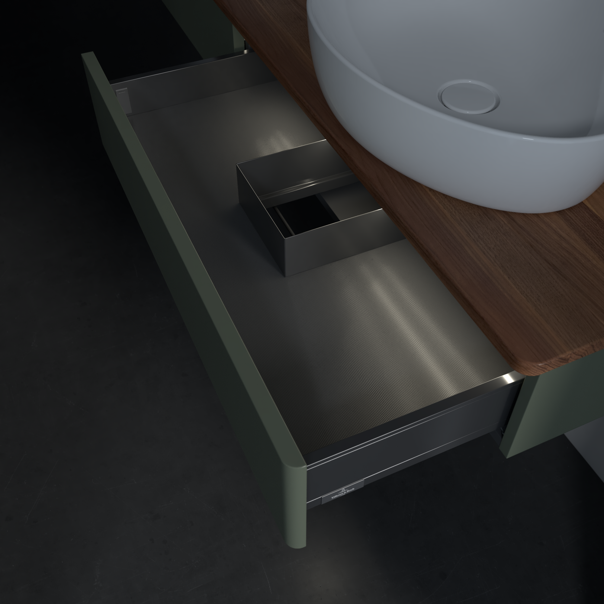 Antao Vanity unit, with lighting, 2 pull-out compartments, 1600x190x500mm, Front without structure, Body: Leaf Green Matt Lacquer, Front: Leaf Green Matt Lacquer, Cover plate: Warm Walnut
