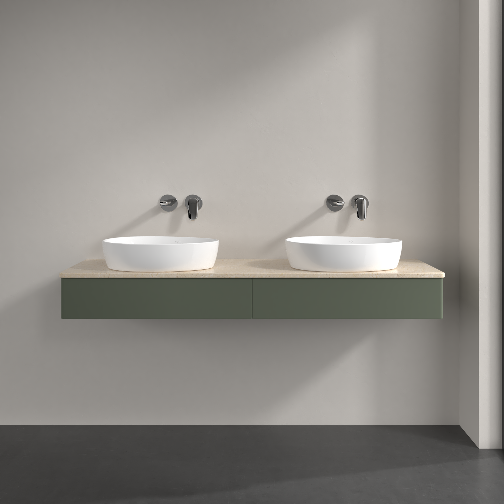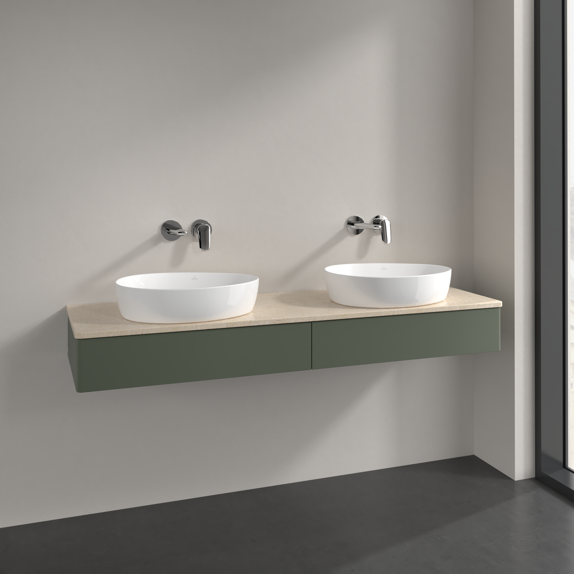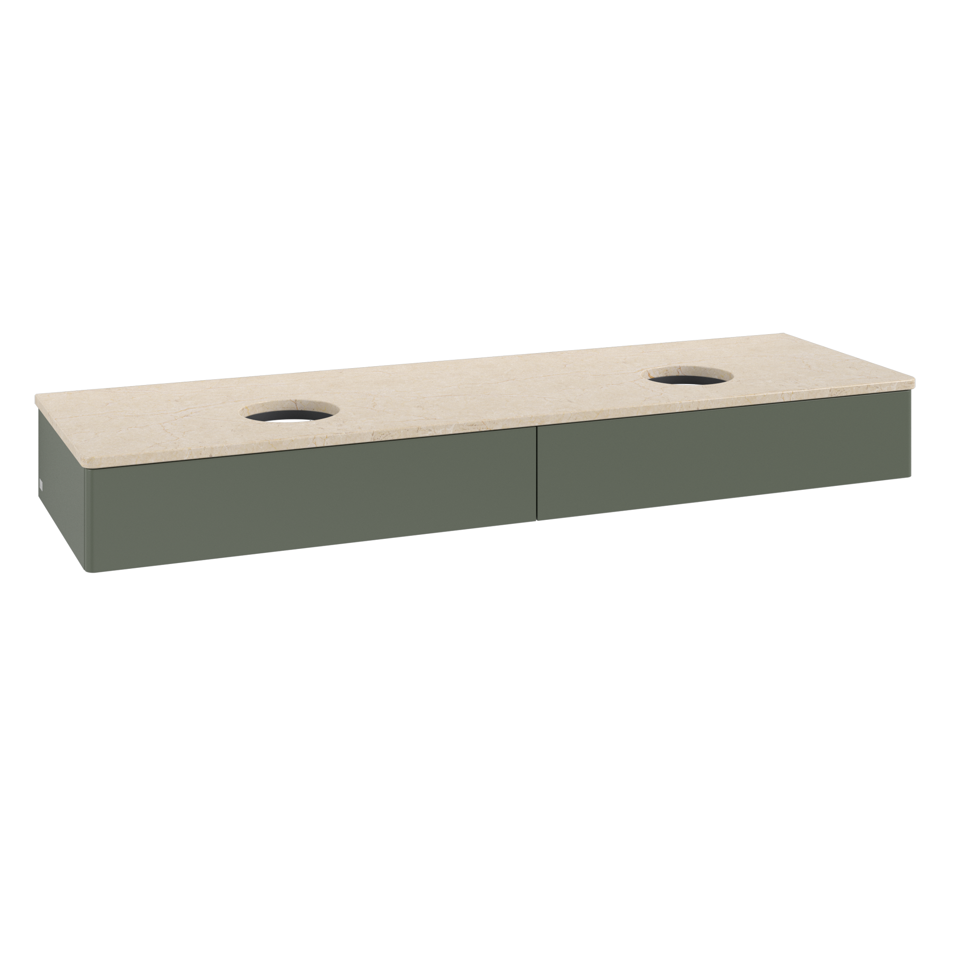 Antao Vanity unit, with lighting, 2 pull-out compartments, 1600x190x500mm, Front without structure, Body: Leaf Green Matt Lacquer, Front: Leaf Green Matt Lacquer, Cover plate: Botticino