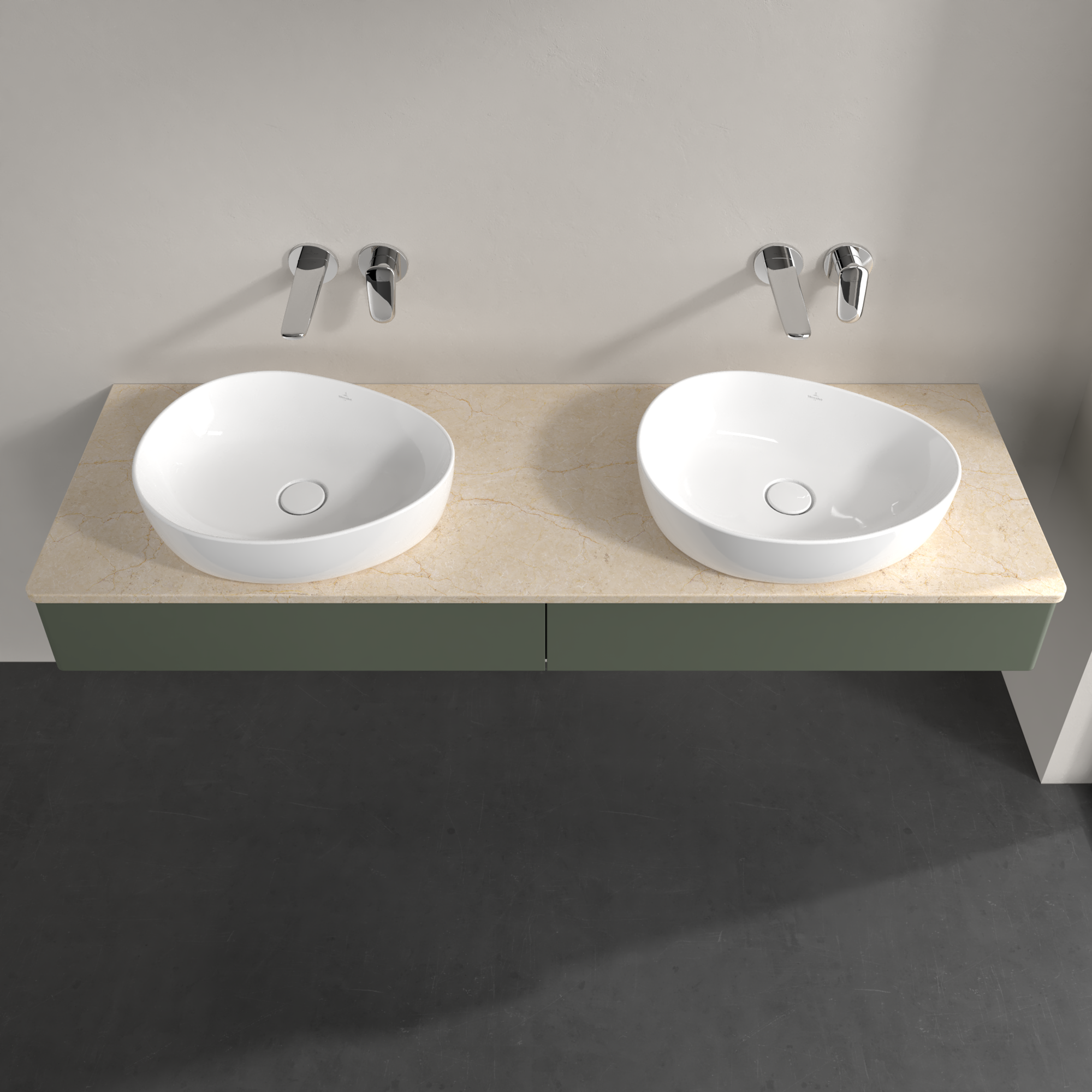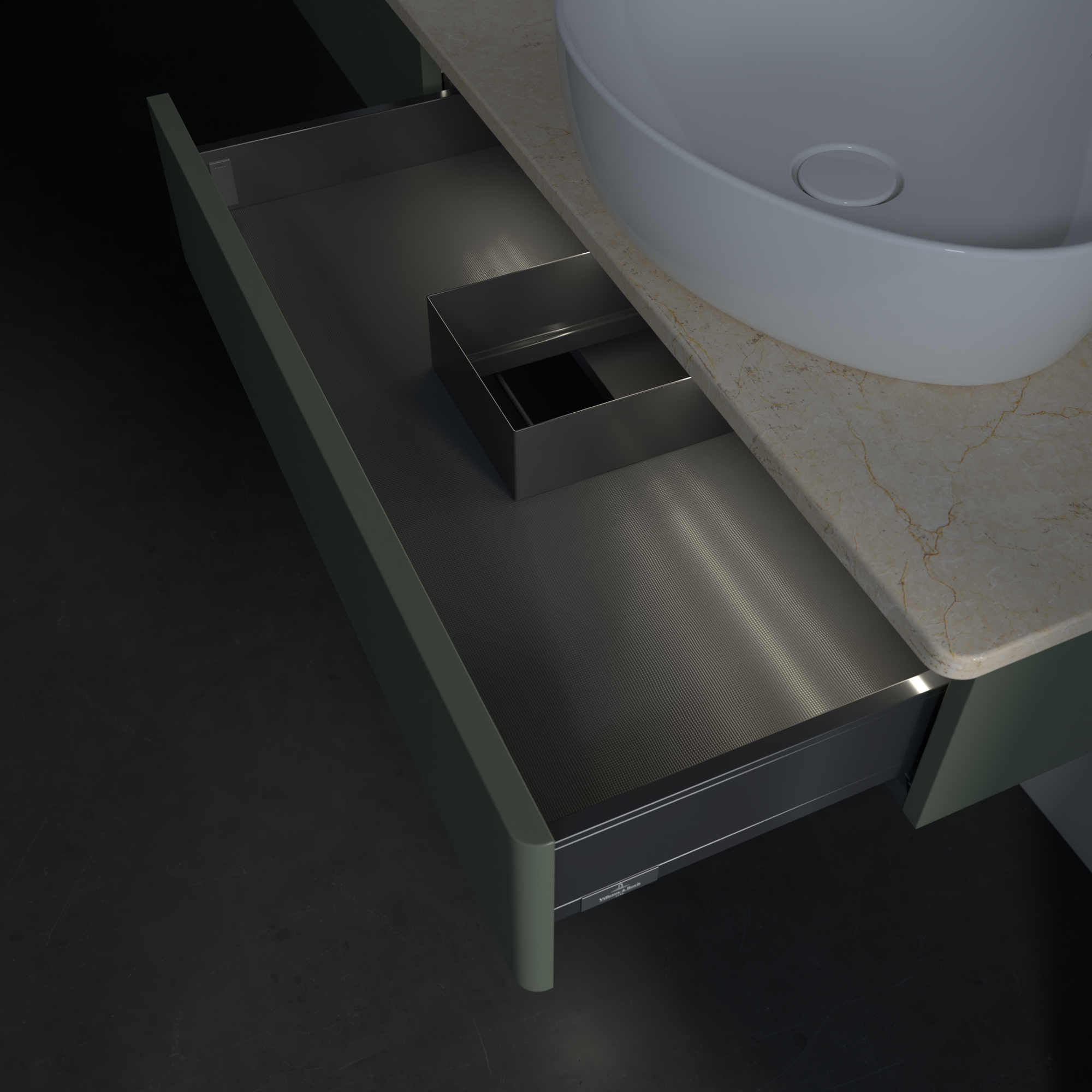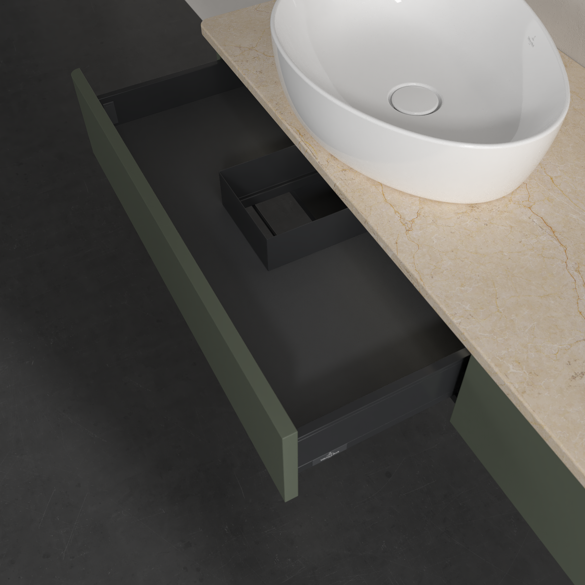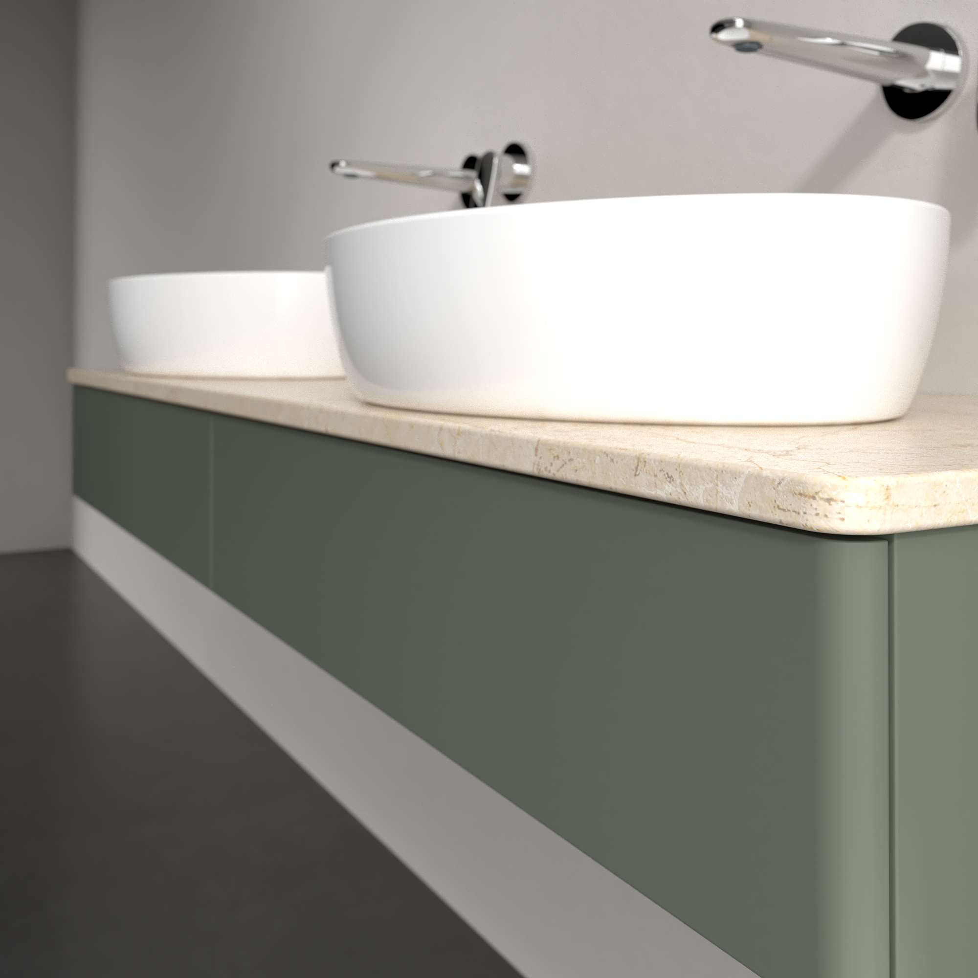 Antao Vanity unit, with lighting, 2 pull-out compartments, 1600x190x500mm, Front without structure, Body: Leaf Green Matt Lacquer, Front: Leaf Green Matt Lacquer, Cover plate: Botticino