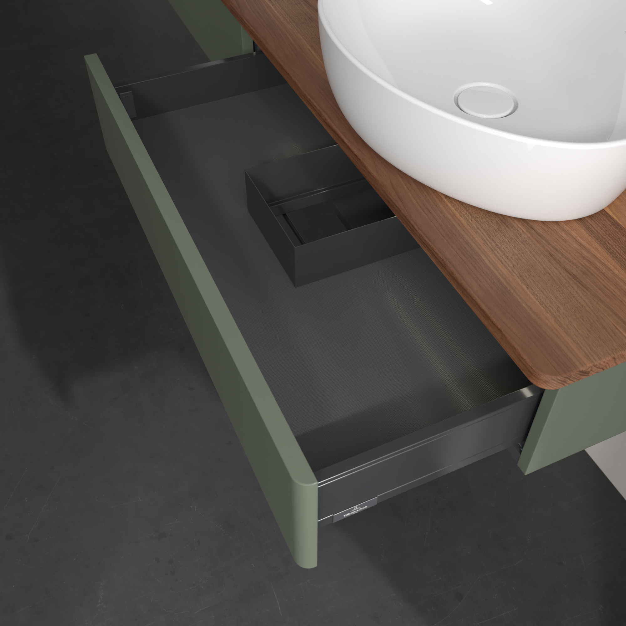Antao Vanity unit, with lighting, 2 pull-out compartments, 1600x190x500mm, Front without structure, Body: Leaf Green Matt Lacquer, Front: Leaf Green Matt Lacquer, Cover plate: Warm Walnut