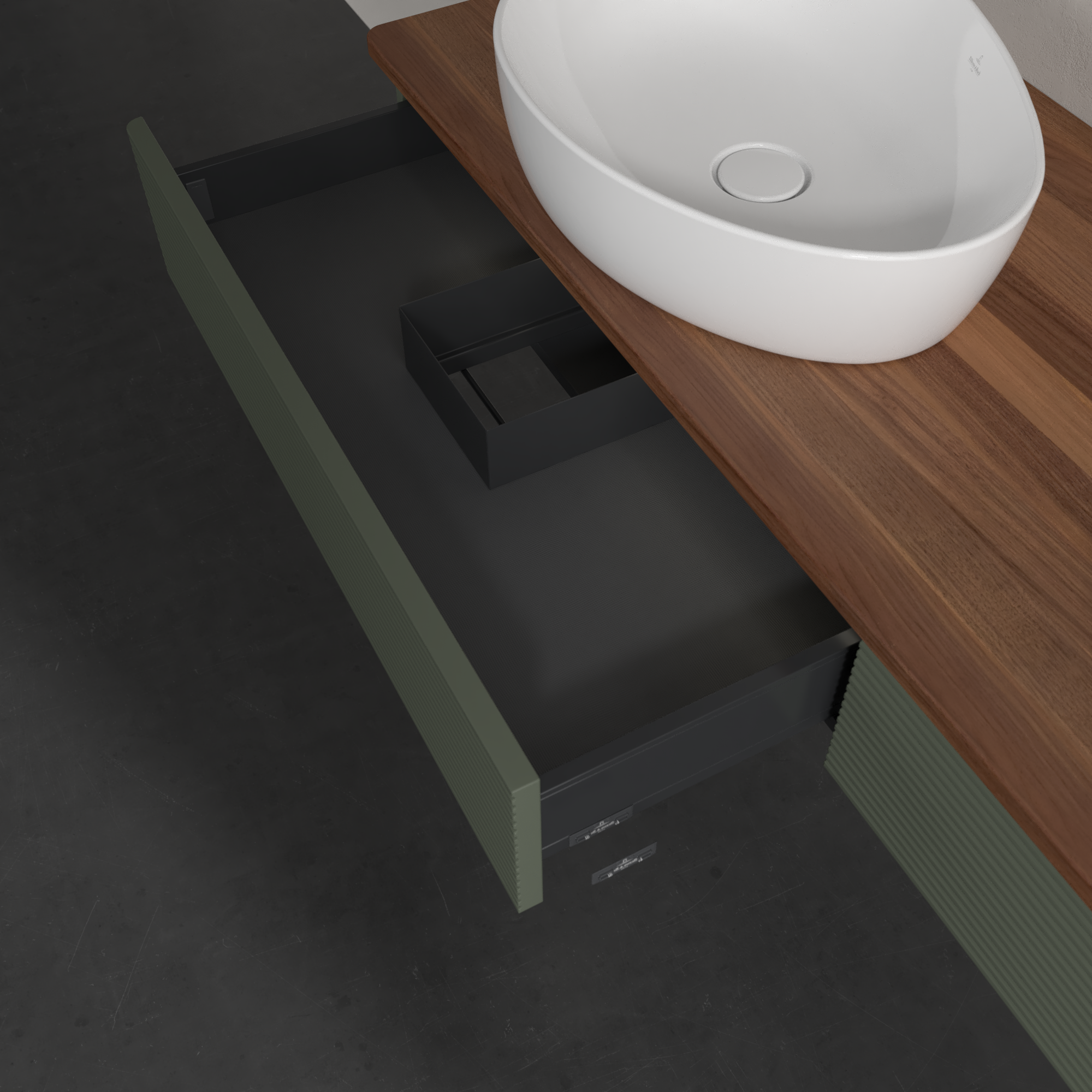 Antao Vanity unit, with lighting, 2 pull-out compartments, 1600x190x500mm, Front with grain texture, Body: Leaf Green Matt Lacquer, Front: Leaf Green Matt Lacquer, Cover plate: Warm Walnut