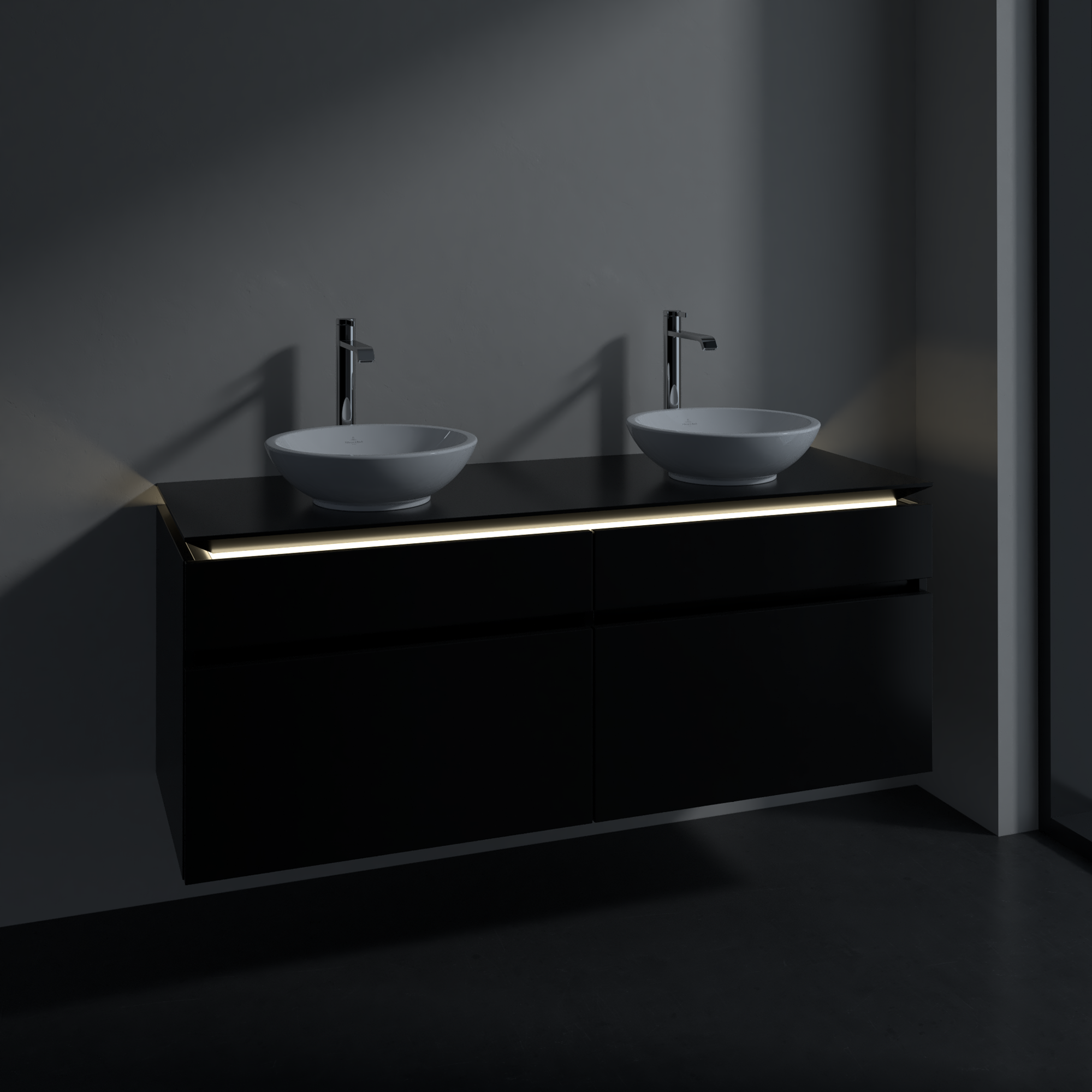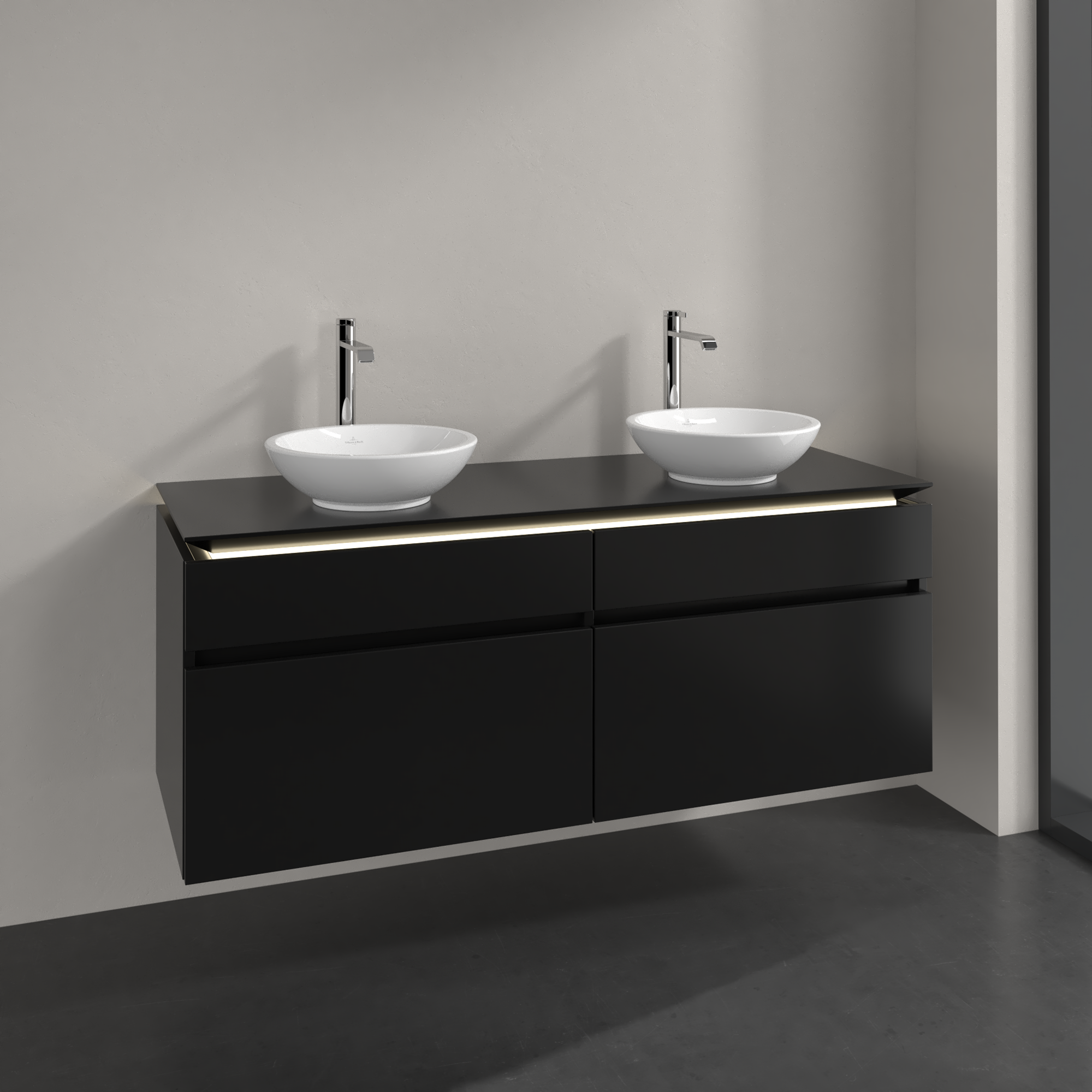 Legato Vanity unit, with lighting, 4 pull-out compartments, 1400x550x500mm, Body: Black Matt Lacquer, Front: Black Matt Lacquer