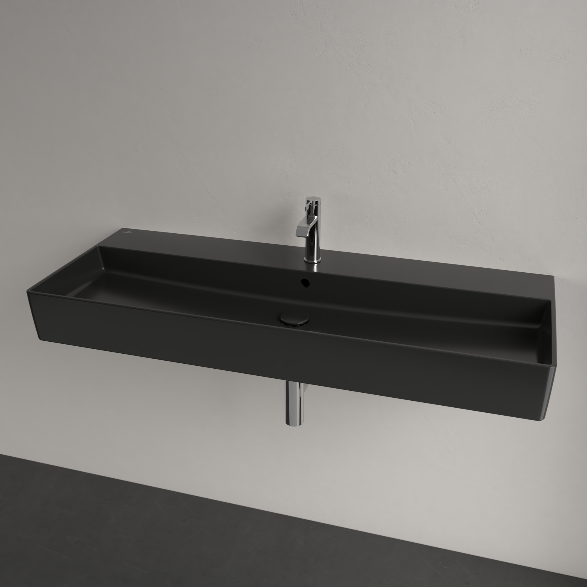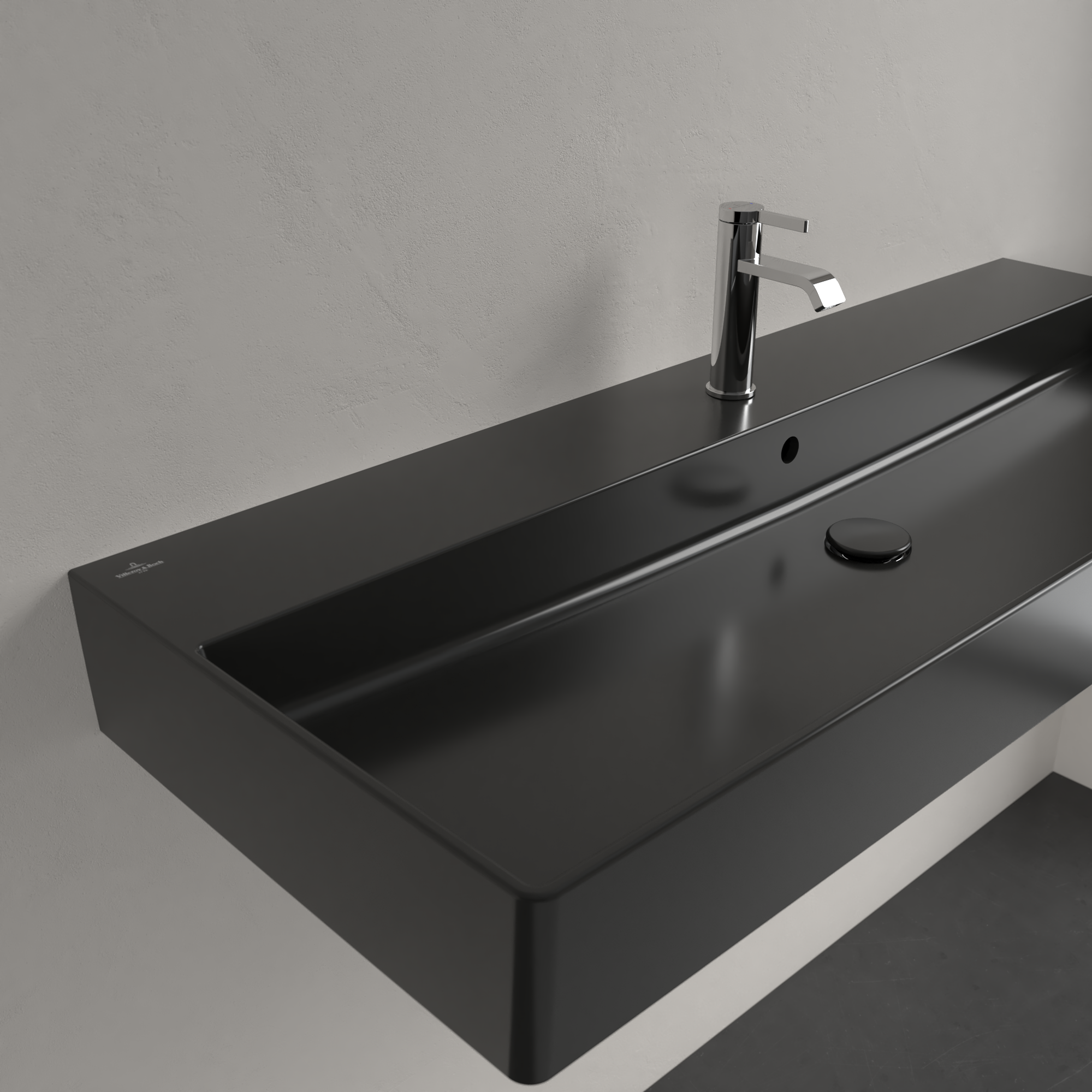 Memento 2.0 Washbasin, 1200x470x150mm, with overflow, Pure Black CeramicPlus