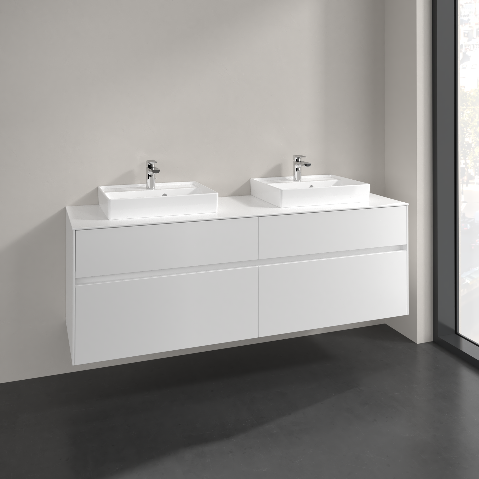 Collaro Vanity unit, 4 pull-out compartments, 1600x548x500mm, Body: White Matt, Front: White Matt