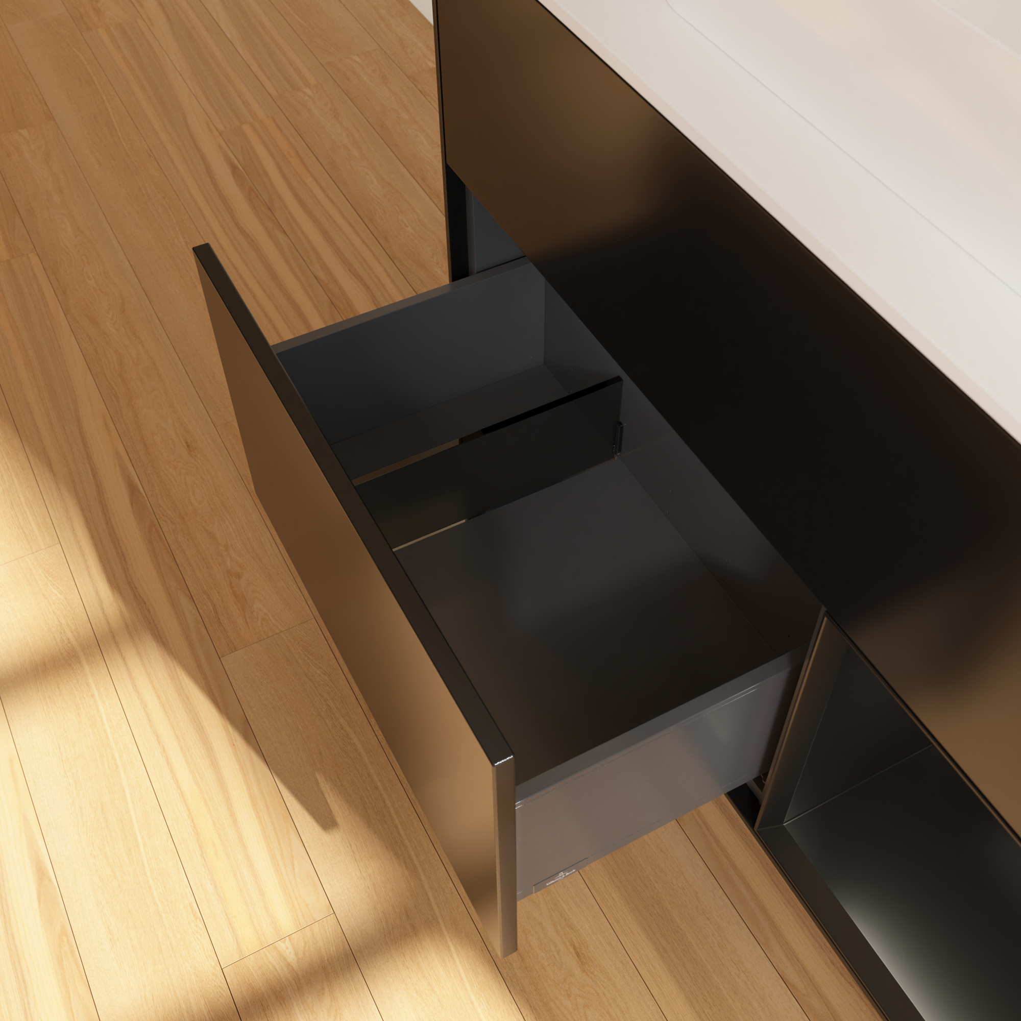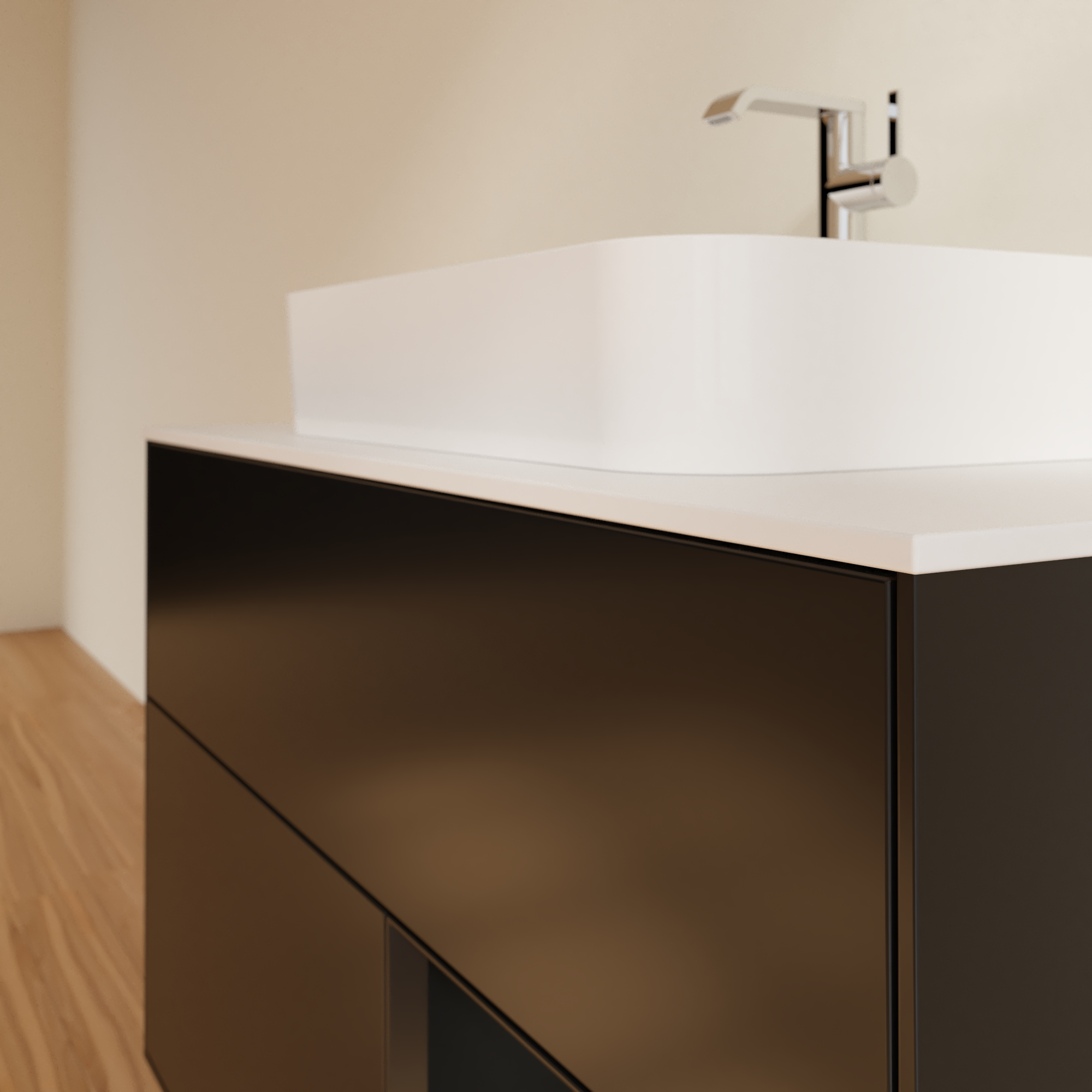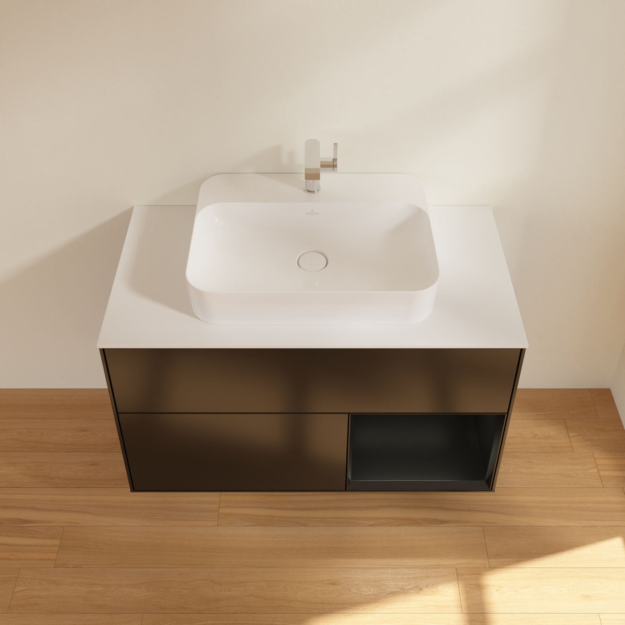Finion Vanity unit, with lighting, 2 pull-out compartments, 1000x603x501mm, Body: Black Matt Lacquer, Front: Black Matt Lacquer, Shelf: Black Matt Lacquer, Cover plate: Glass White Matt