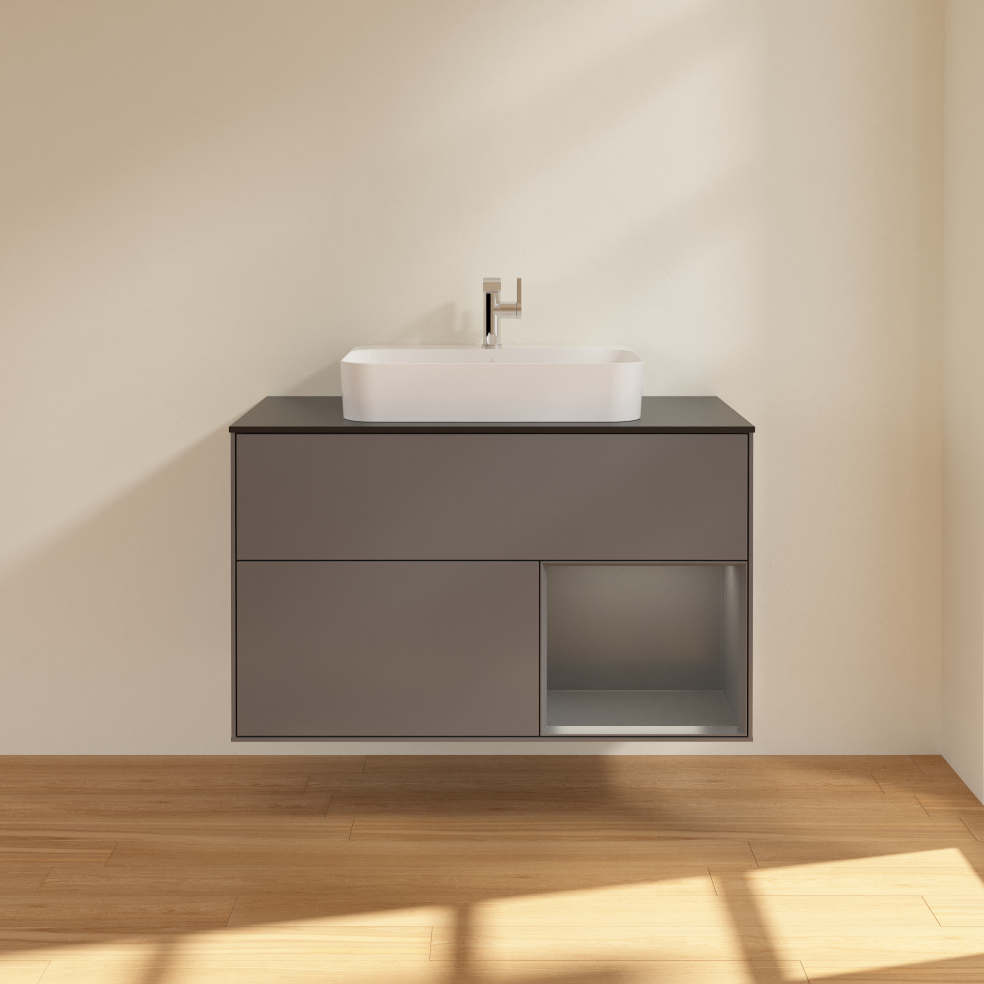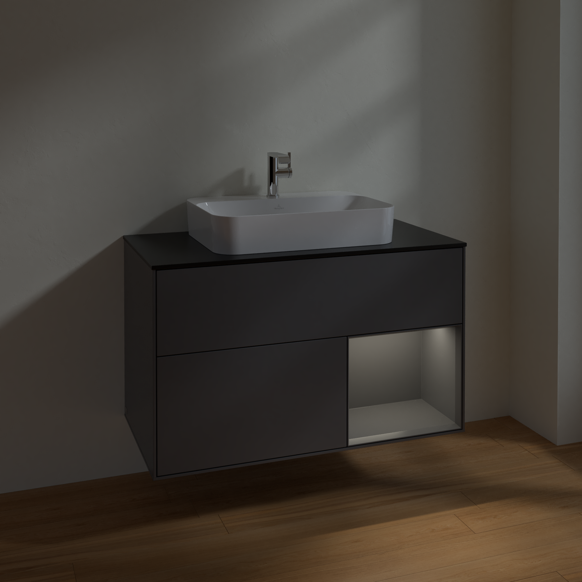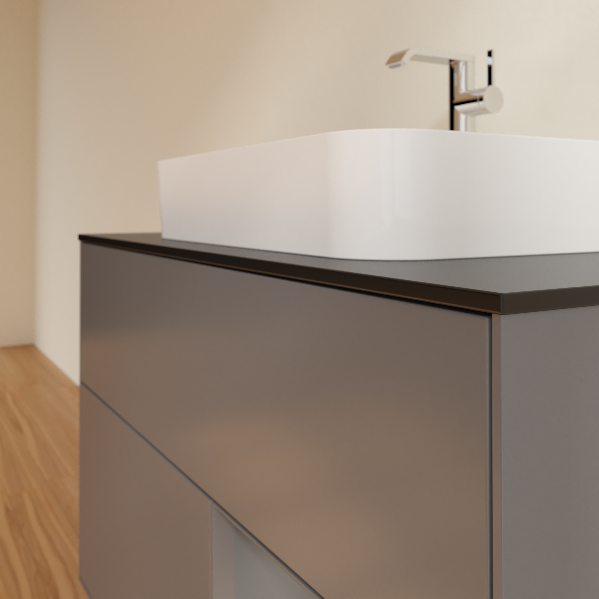 Finion Vanity unit, with lighting, 2 pull-out compartments, 1000x603x501mm, Body: Anthracite Matt Lacquer, Front: Anthracite Matt Lacquer, Shelf: Anthracite Matt Lacquer, Cover plate: Glass Black Matt