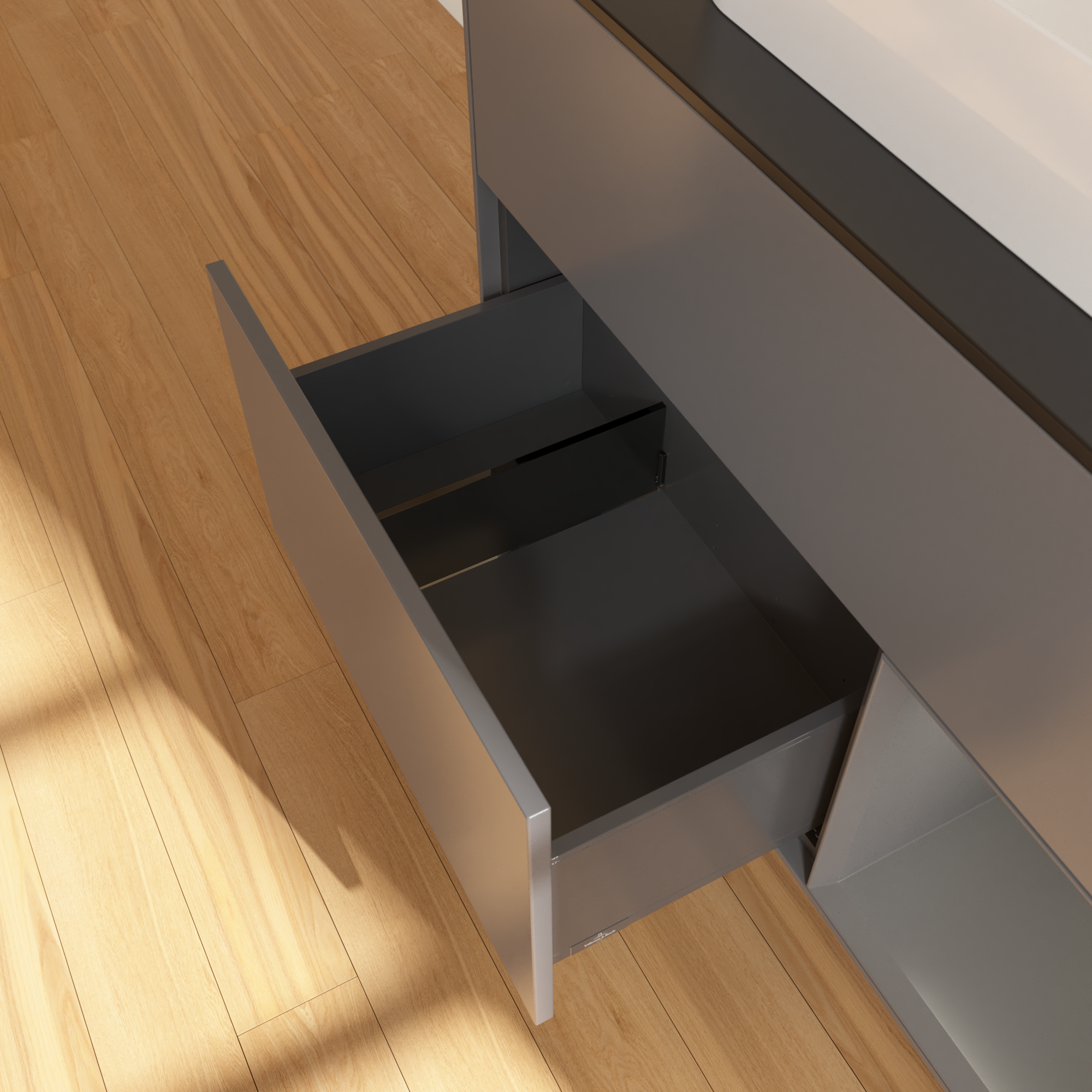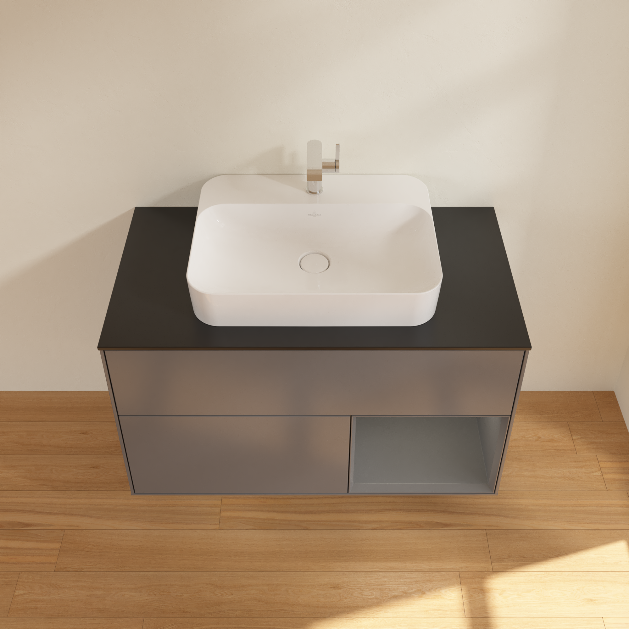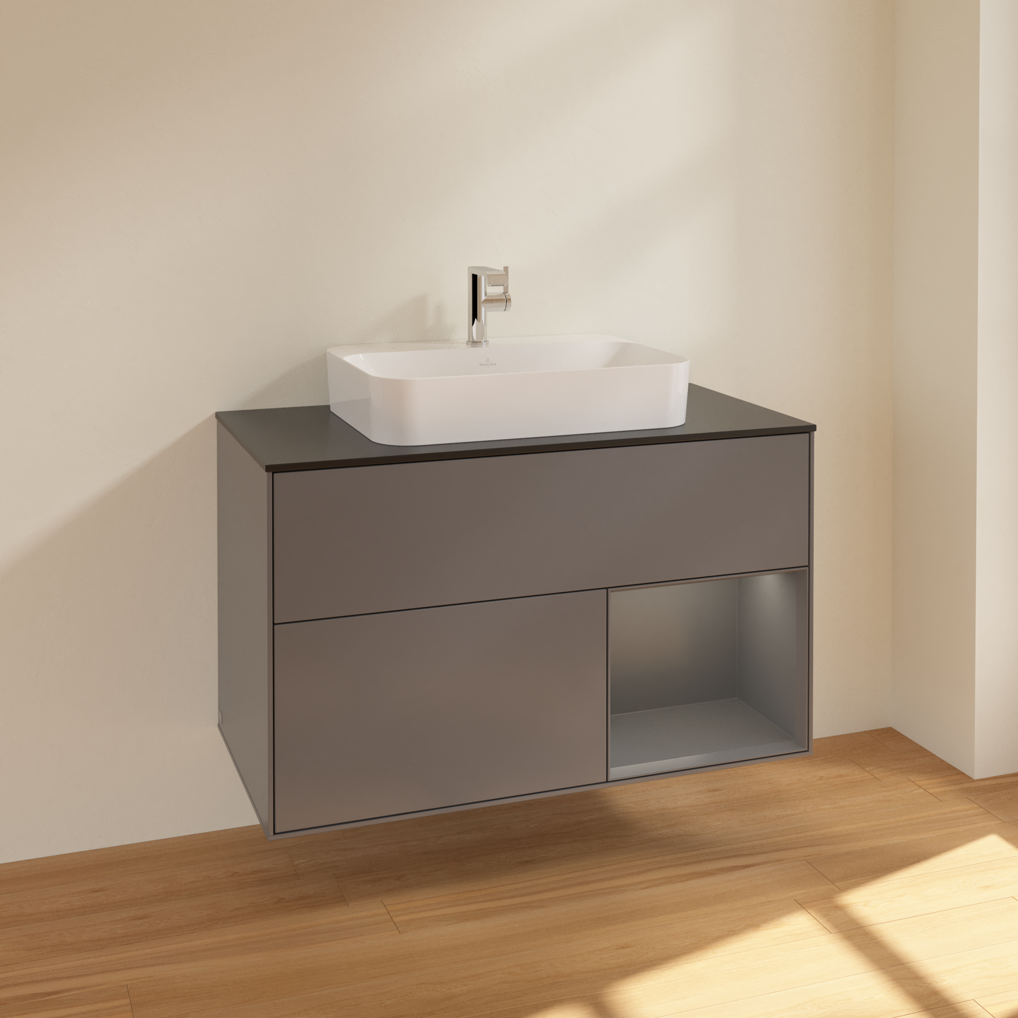 Finion Vanity unit, with lighting, 2 pull-out compartments, 1000x603x501mm, Body: Anthracite Matt Lacquer, Front: Anthracite Matt Lacquer, Shelf: Anthracite Matt Lacquer, Cover plate: Glass Black Matt