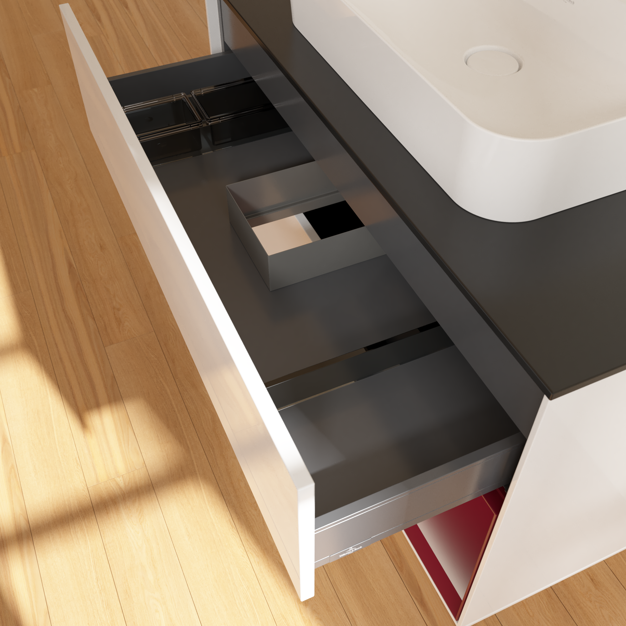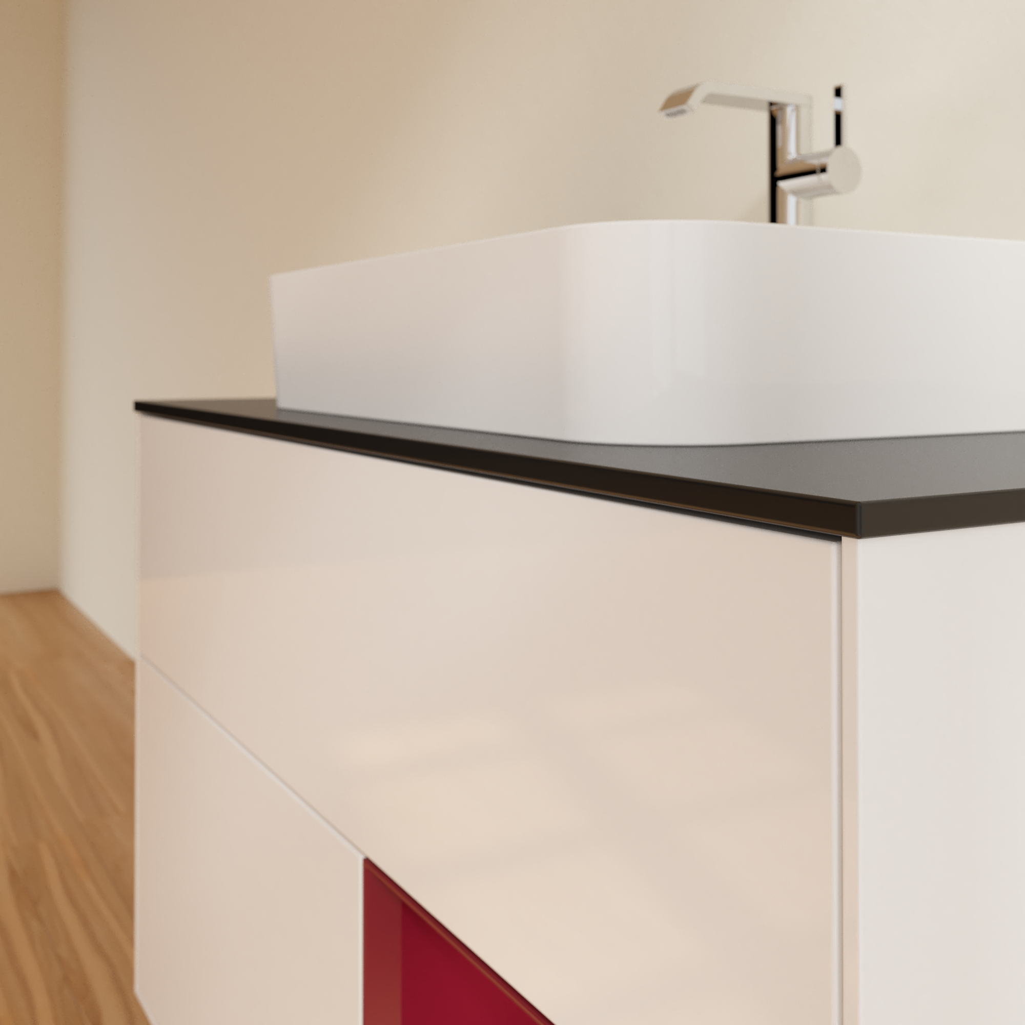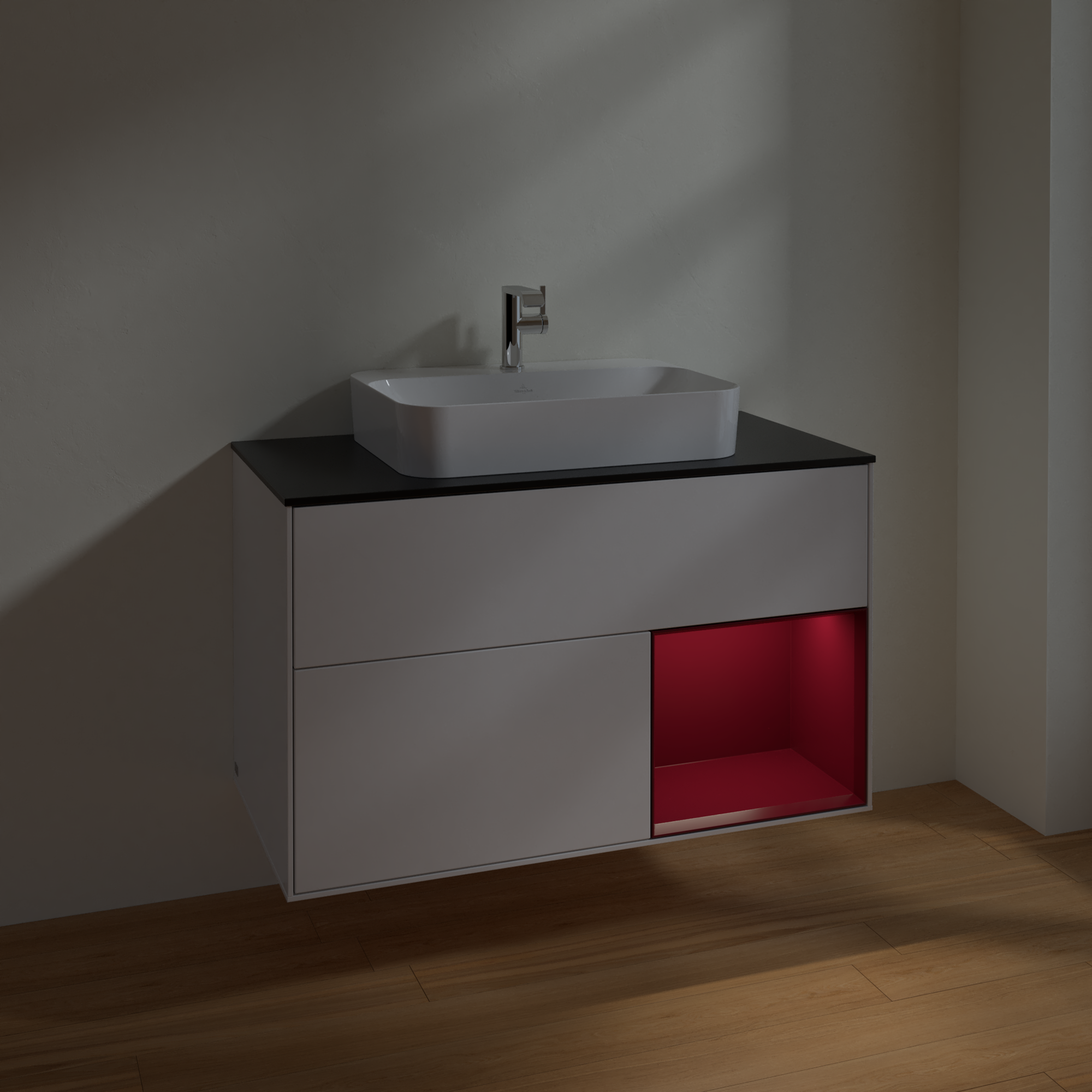 Finion Vanity unit, with lighting, 2 pull-out compartments, 1000x603x501mm, Body: Glossy White Lacquer, Front: Glossy White Lacquer, Shelf: Peony Matt Lacquer, Cover plate: Glass Black Matt