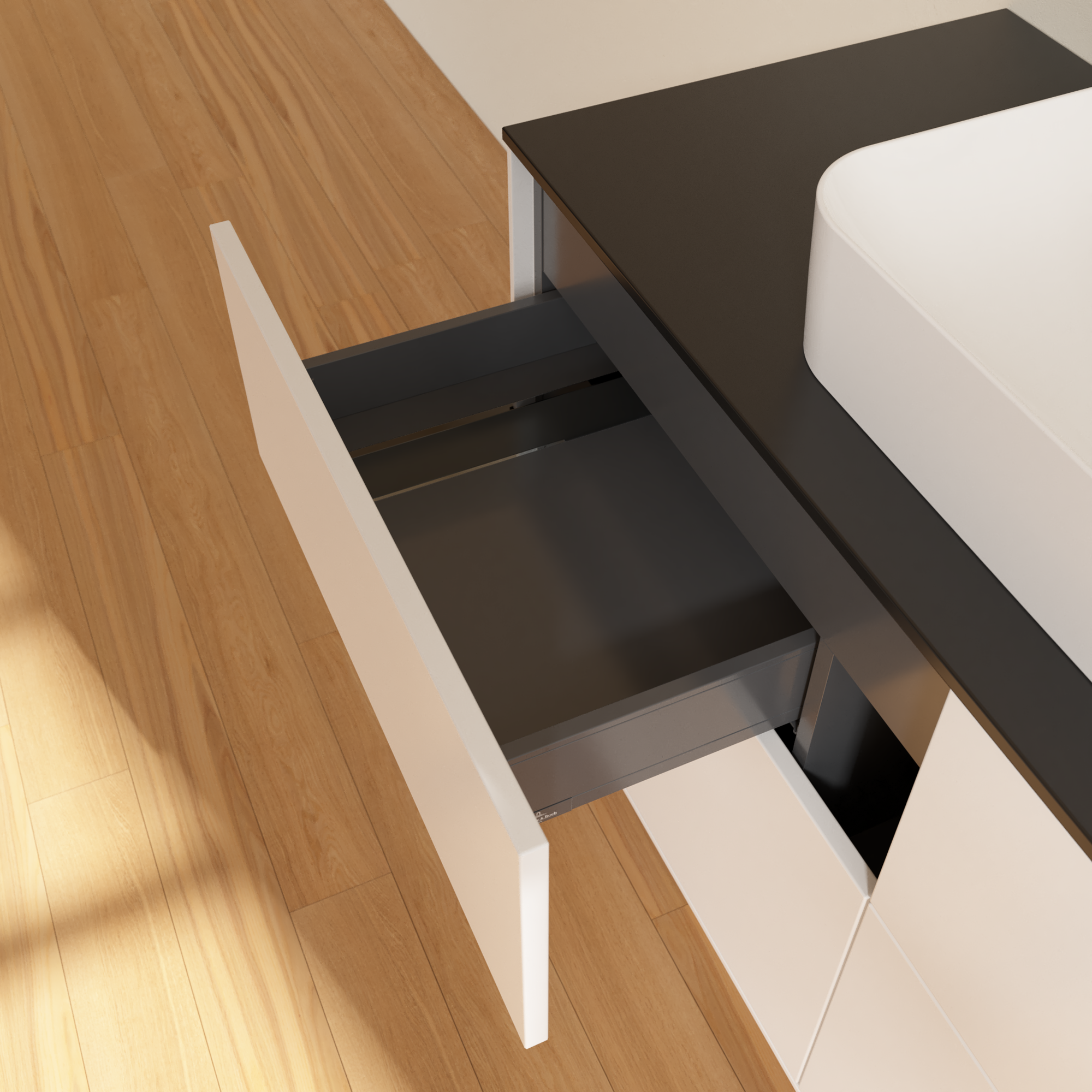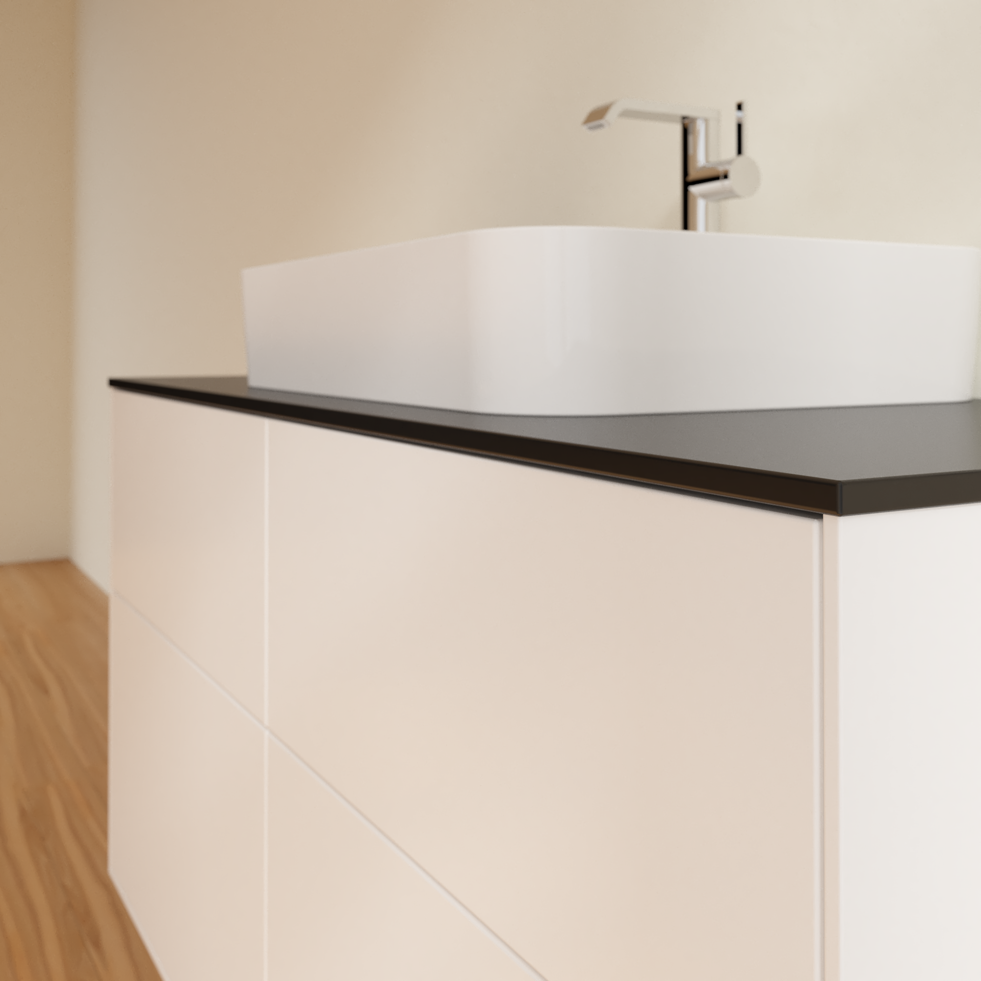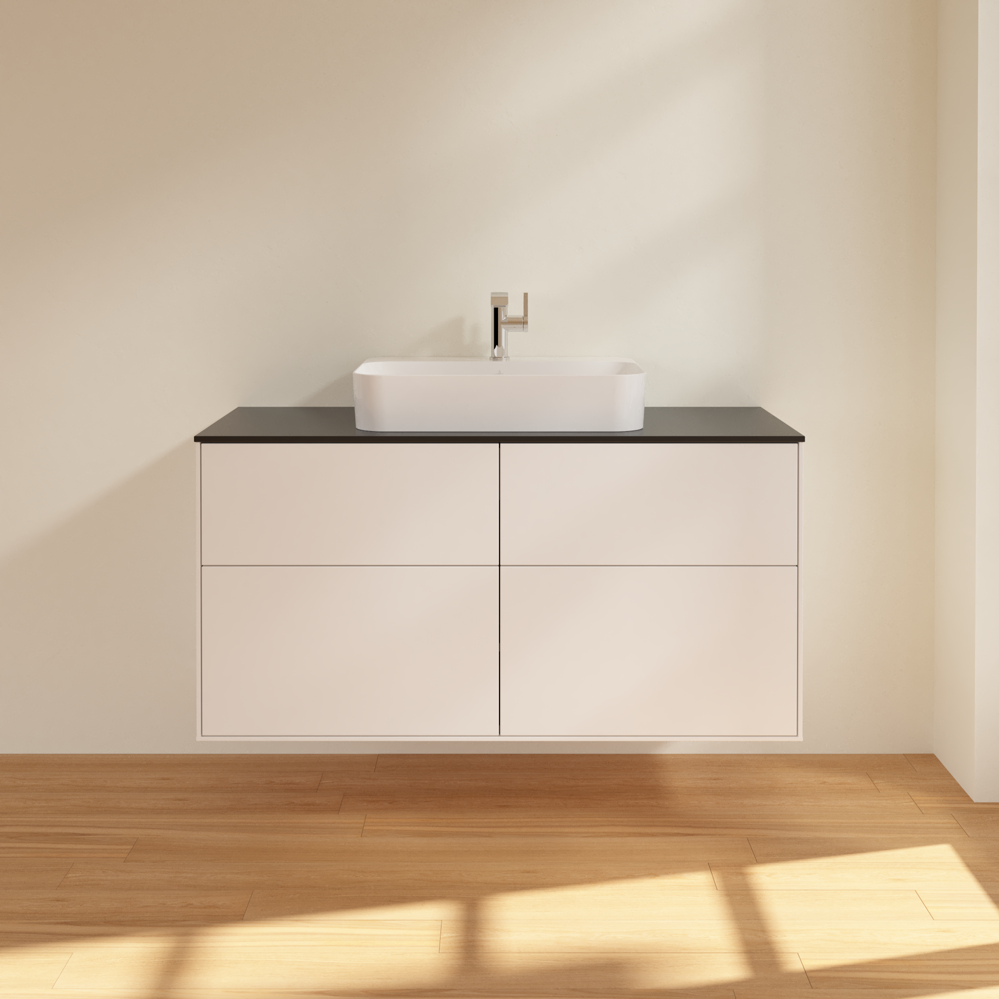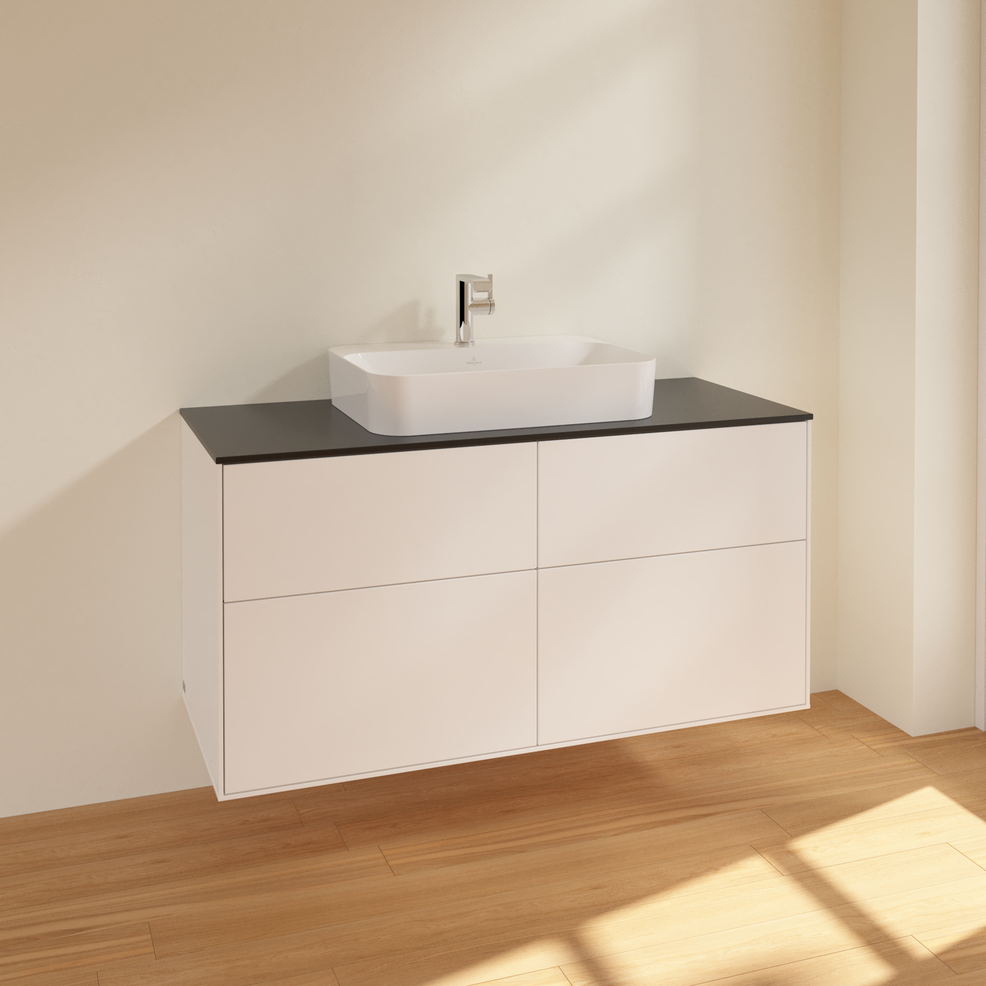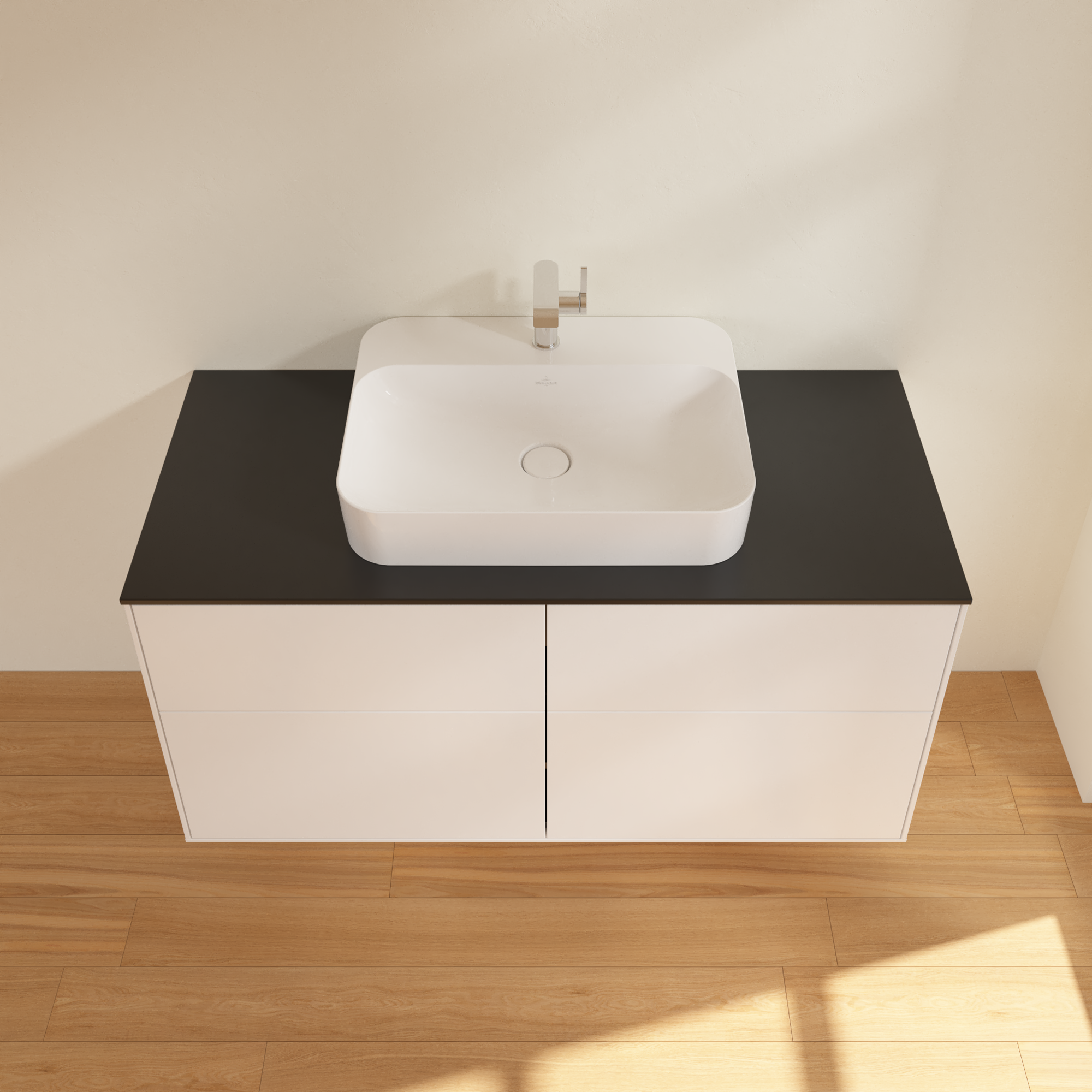 Finion Vanity unit, 4 pull-out compartments, 1200x603x501mm, Body: White Matt Lacquer, Front: White Matt Lacquer, Cover plate: Glass Black Matt