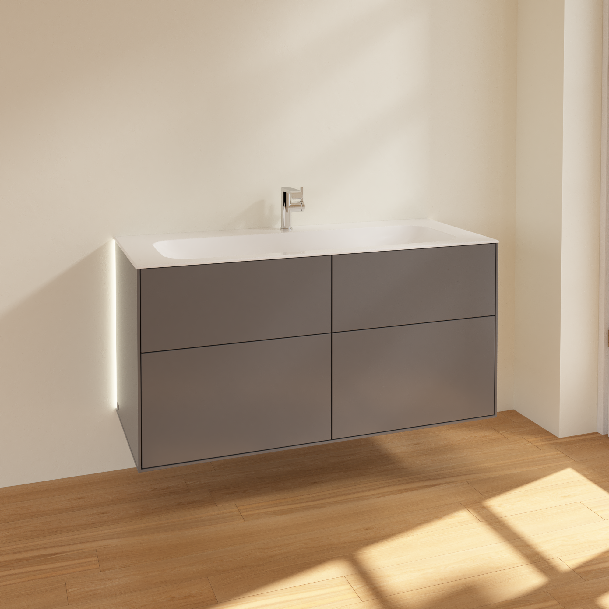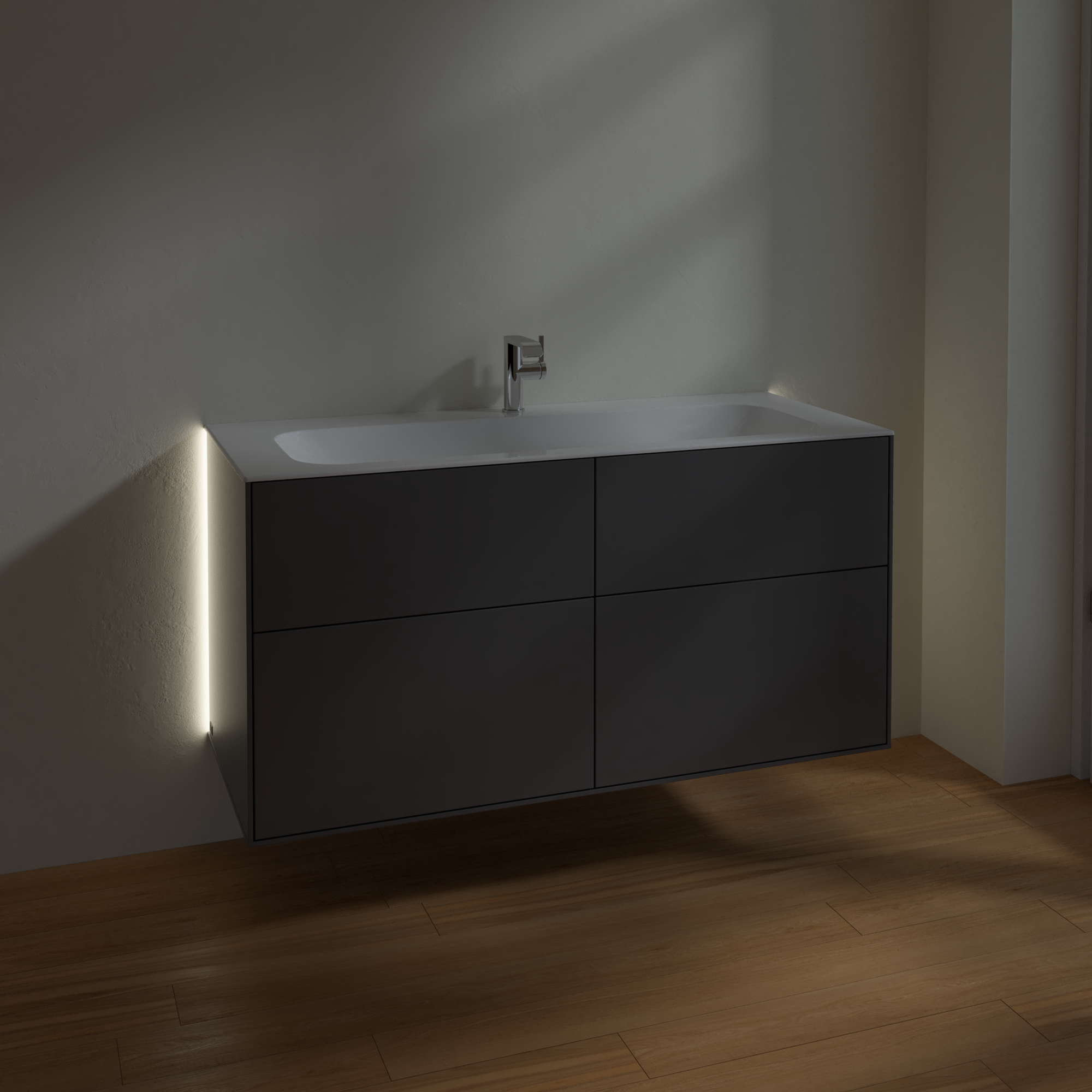 Finion Vanity unit, with lighting, 4 pull-out compartments, 1196x591x498mm, Body: Anthracite Matt Lacquer, Front: Anthracite Matt Lacquer