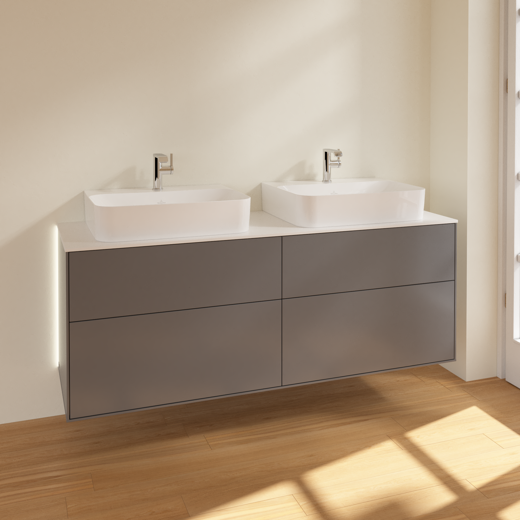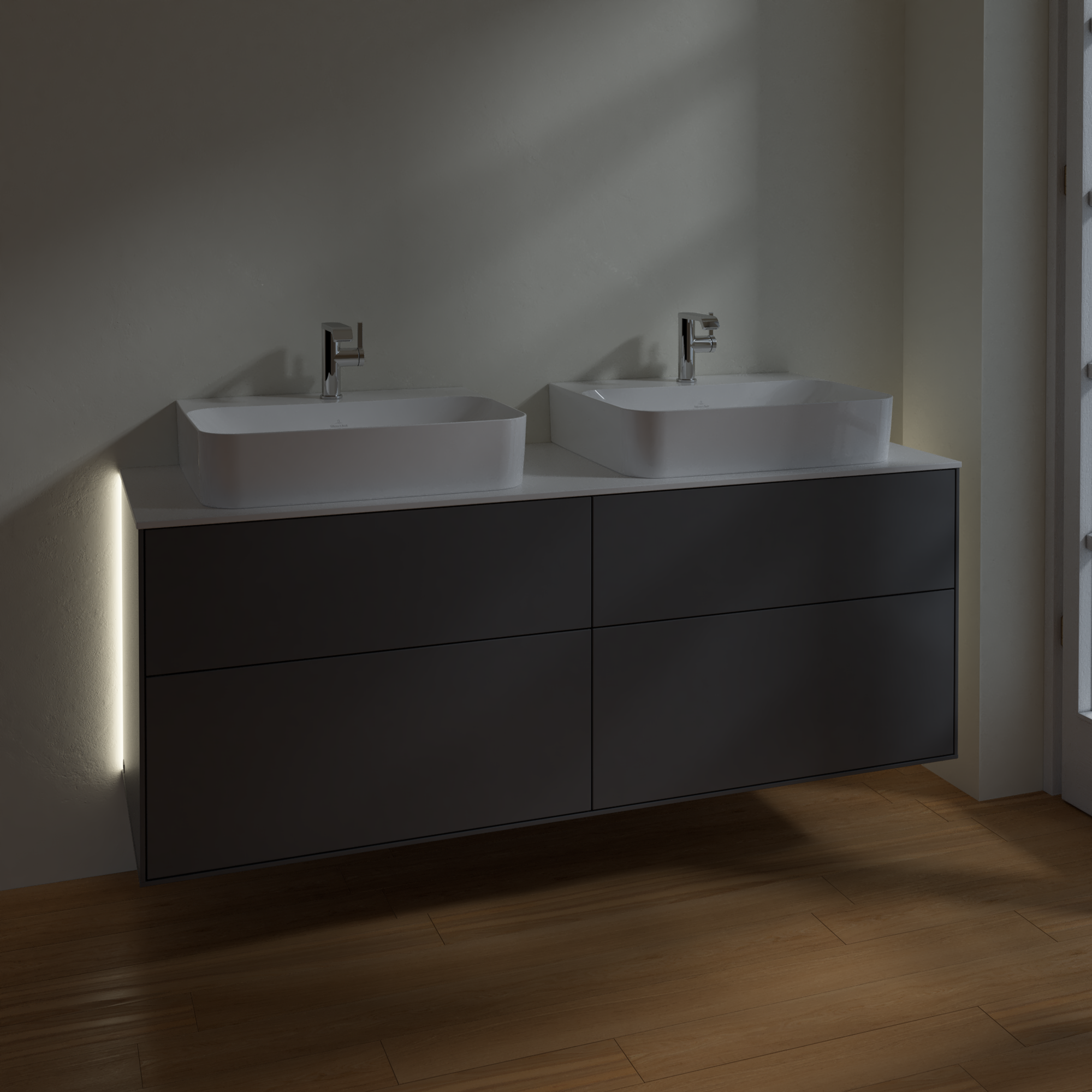 Finion Vanity unit, with lighting, 4 pull-out compartments, 1600x603x501mm, Body: Anthracite Matt Lacquer, Front: Anthracite Matt Lacquer, Cover plate: Glass White Matt