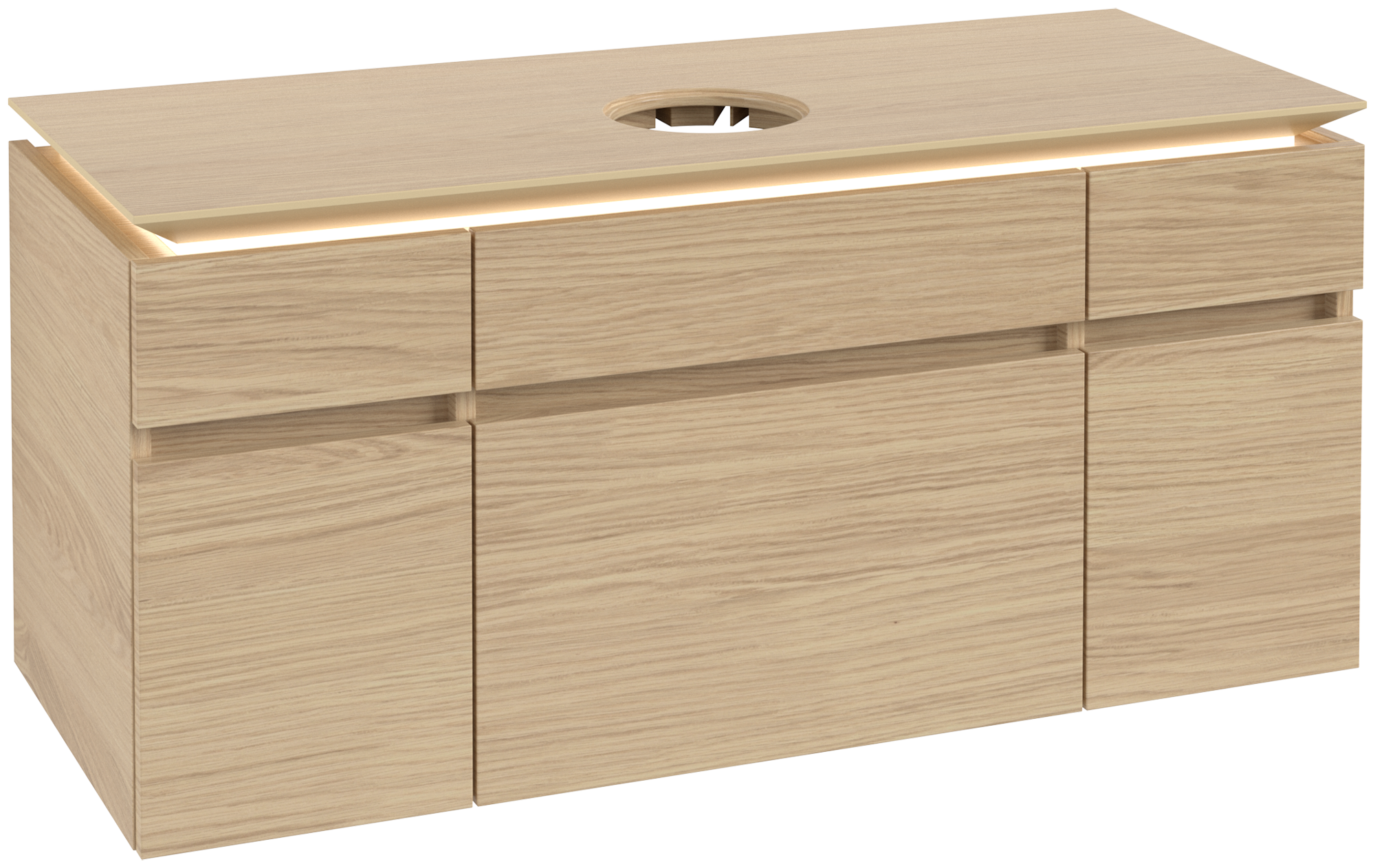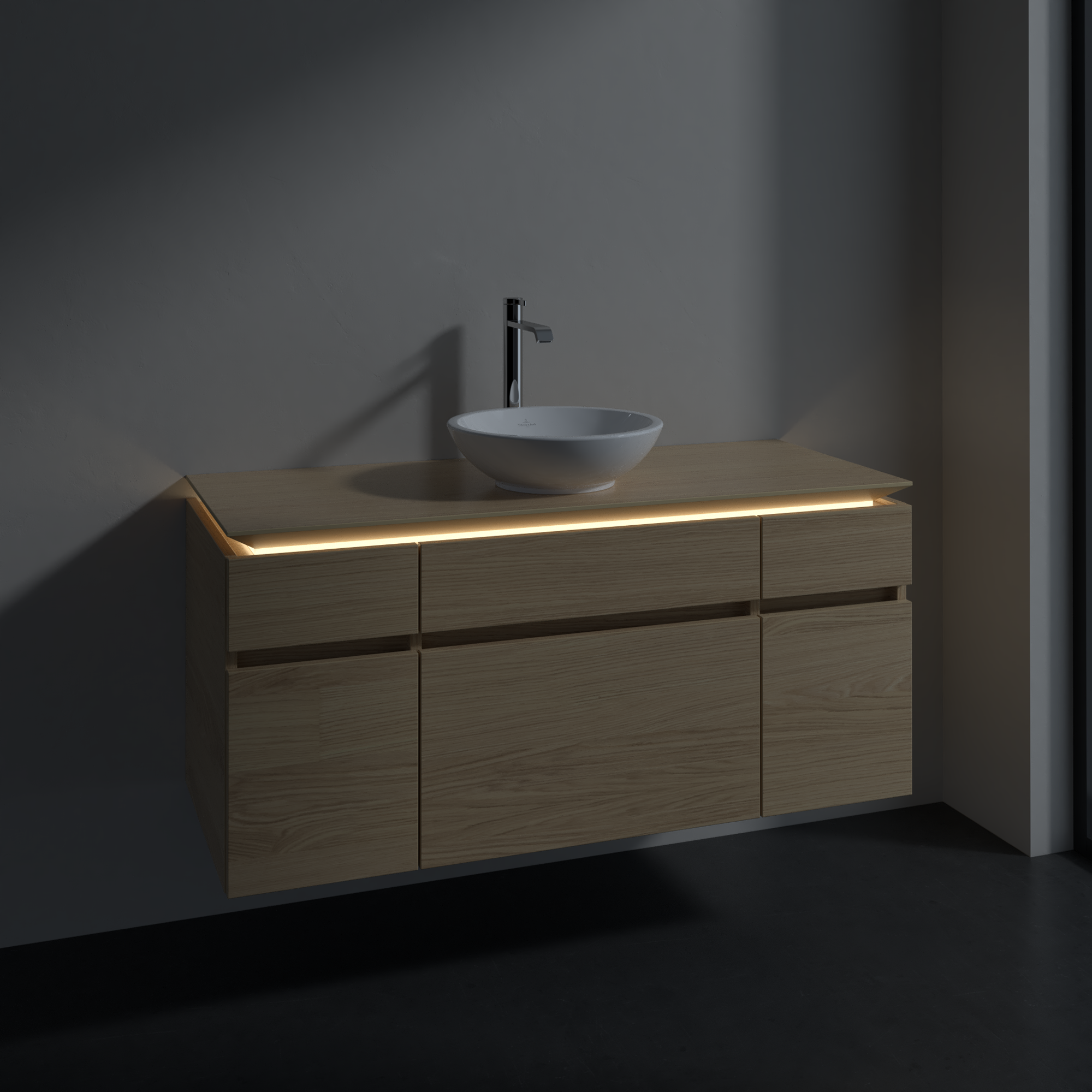 Legato Vanity unit, with lighting, 5 pull-out compartments, 1200x550x500mm, Body: Nordic Oak, Front: Nordic Oak
