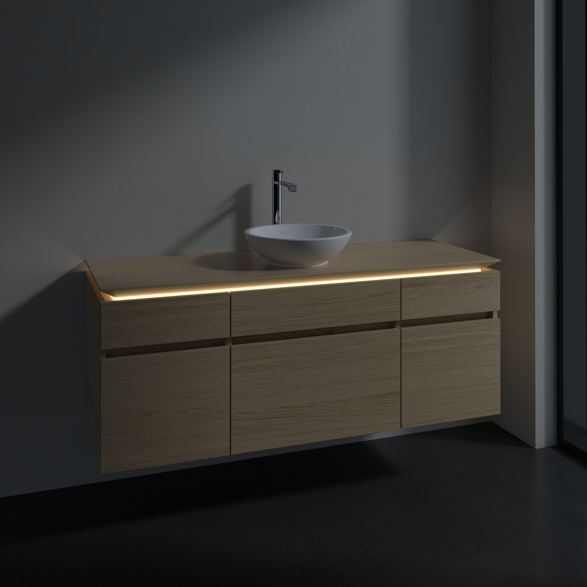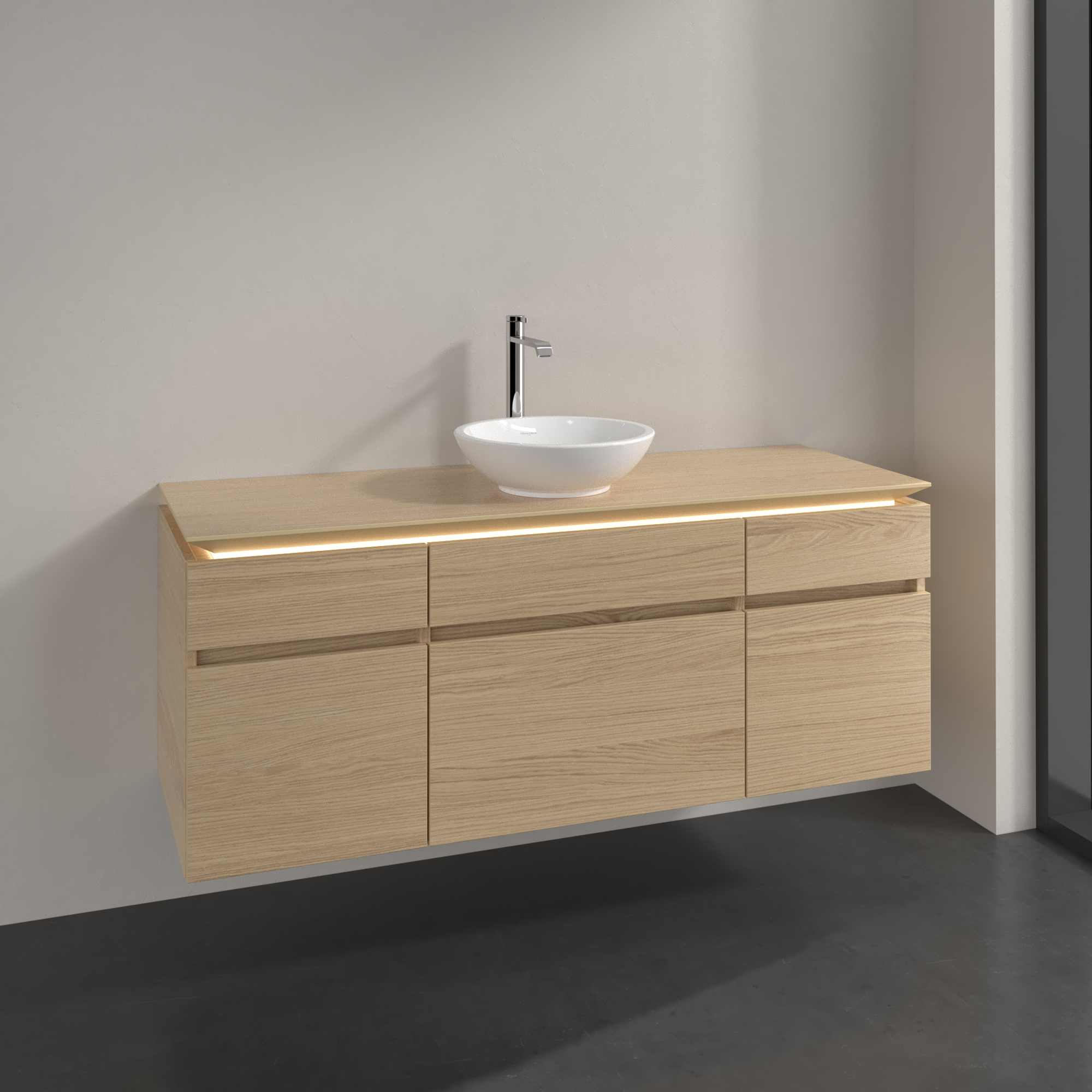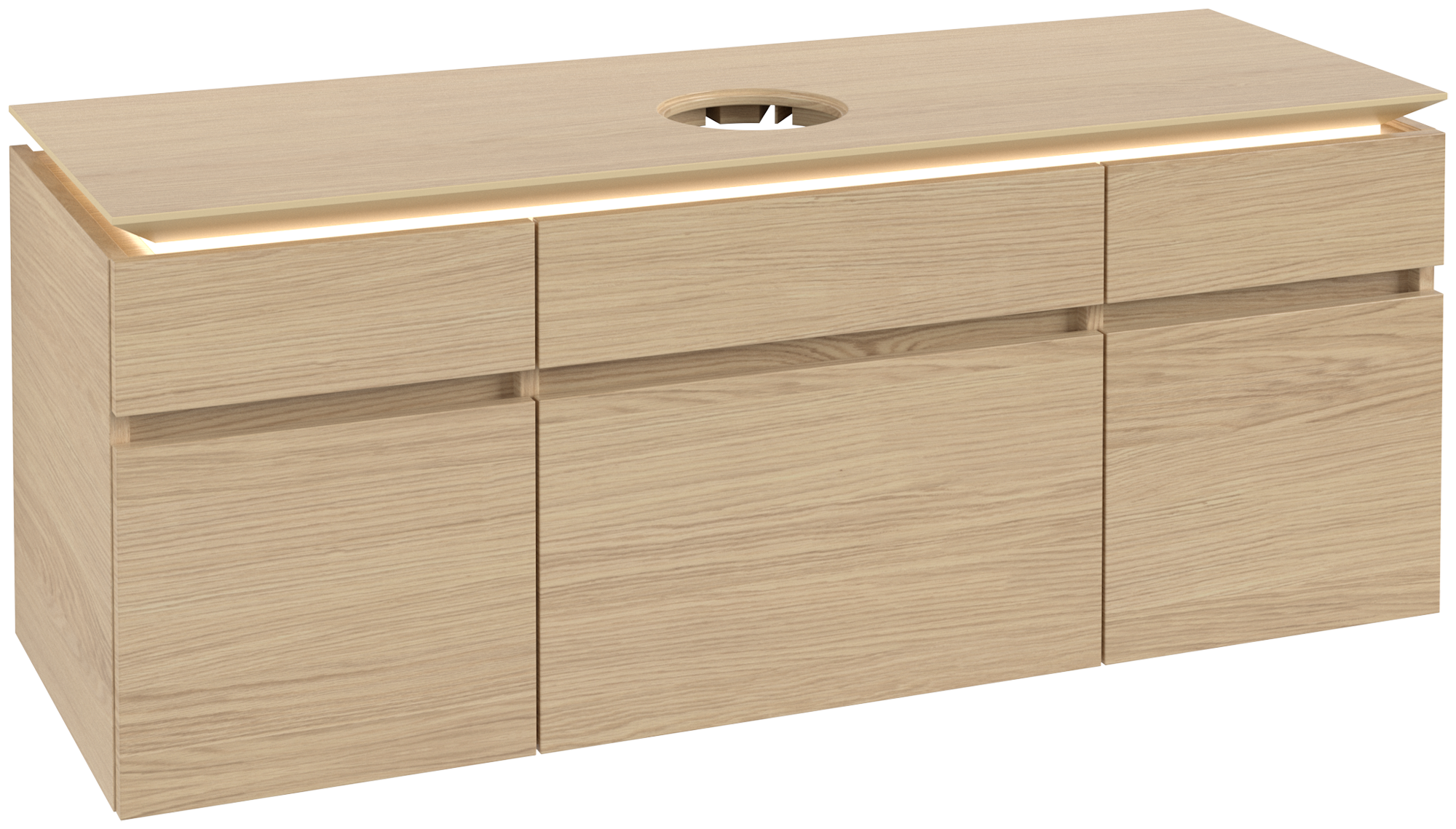 Legato Vanity unit, with lighting, 5 pull-out compartments, 1400x550x500mm, Body: Nordic Oak, Front: Nordic Oak