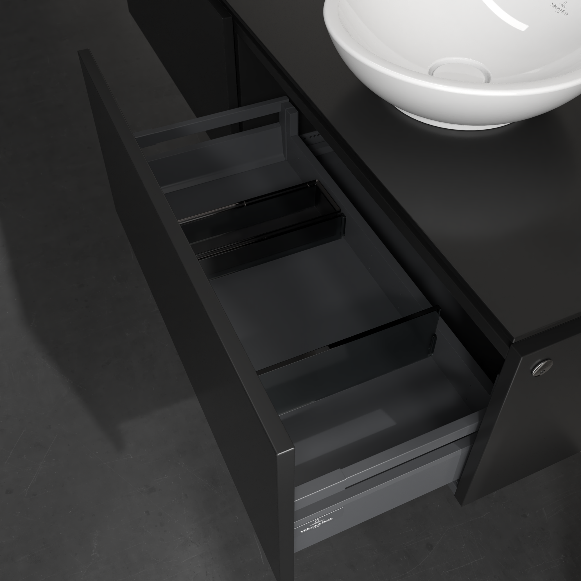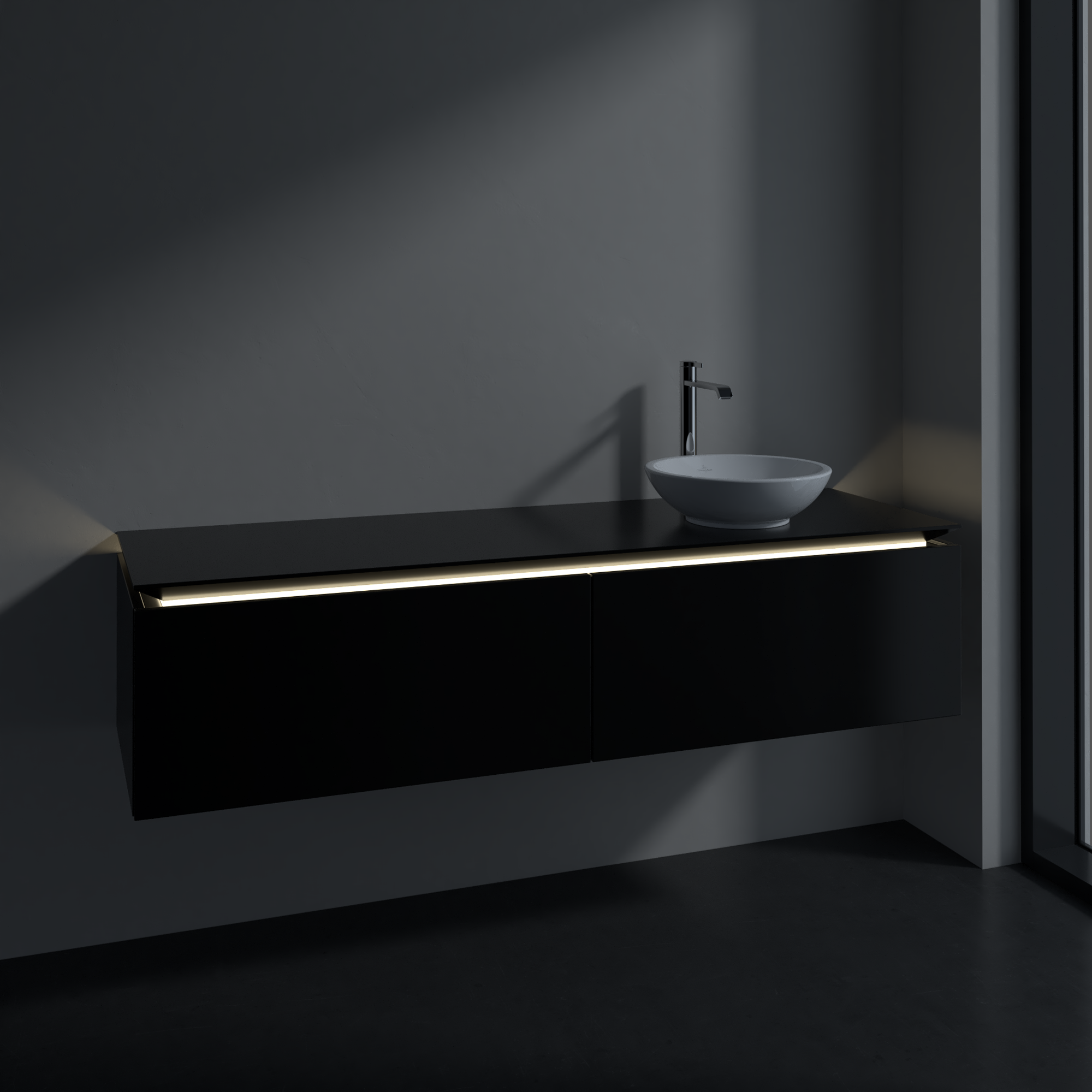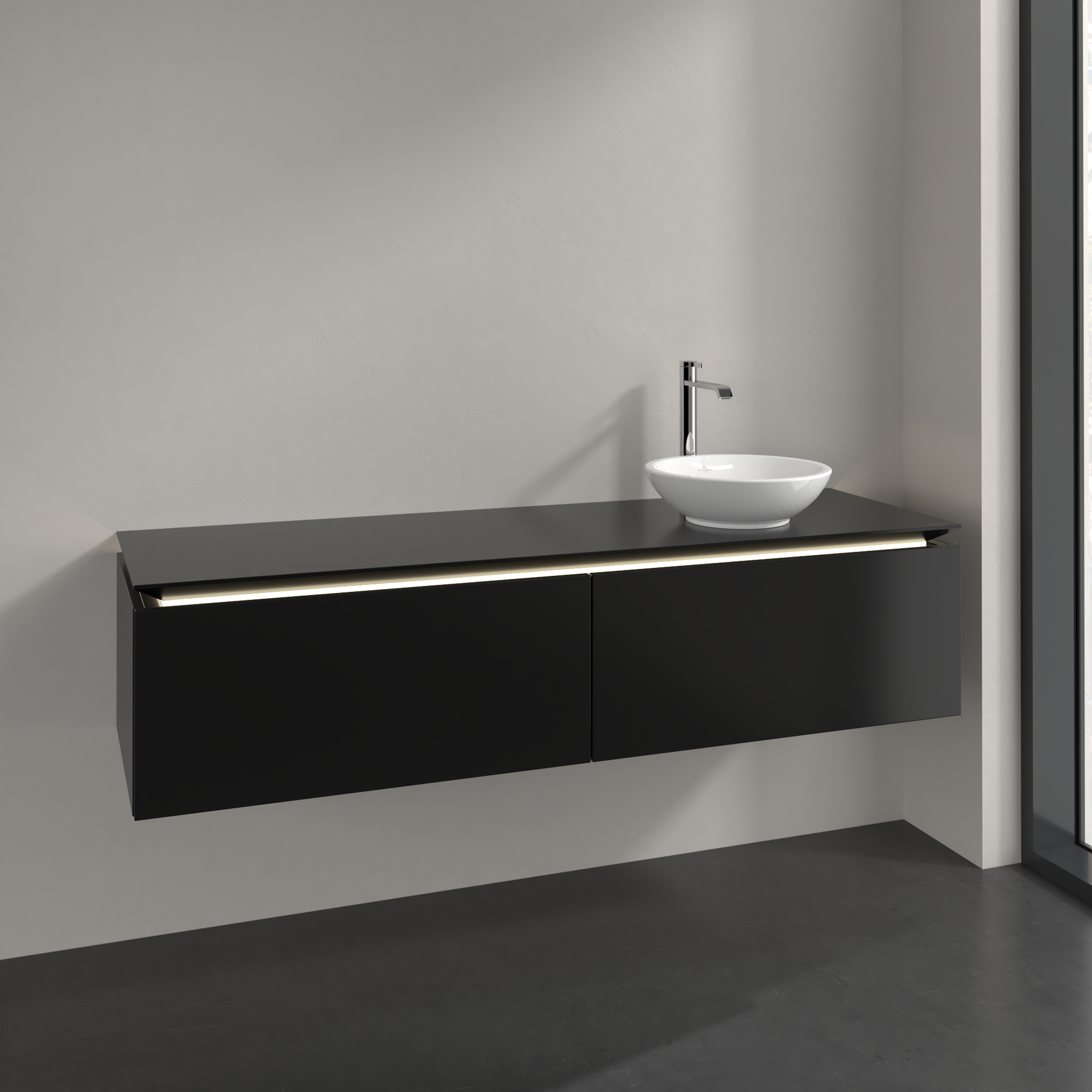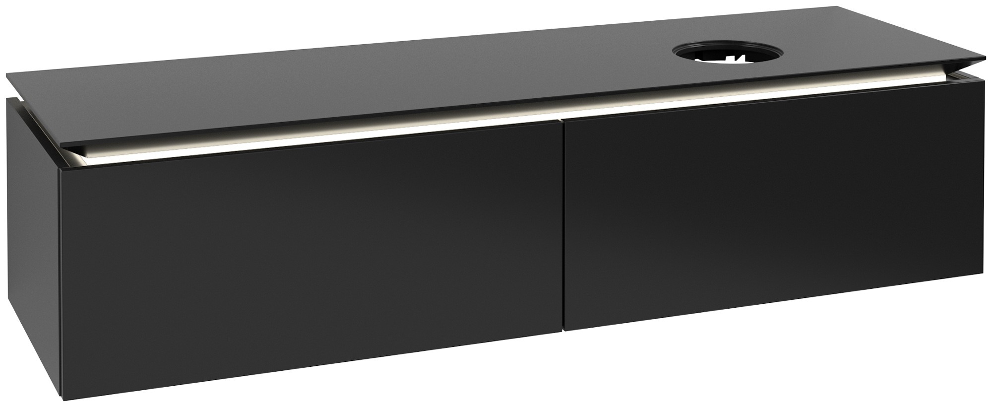 Legato Vanity unit, with lighting, 2 pull-out compartments, 1600x380x500mm, Body: Black Matt Lacquer, Front: Black Matt Lacquer