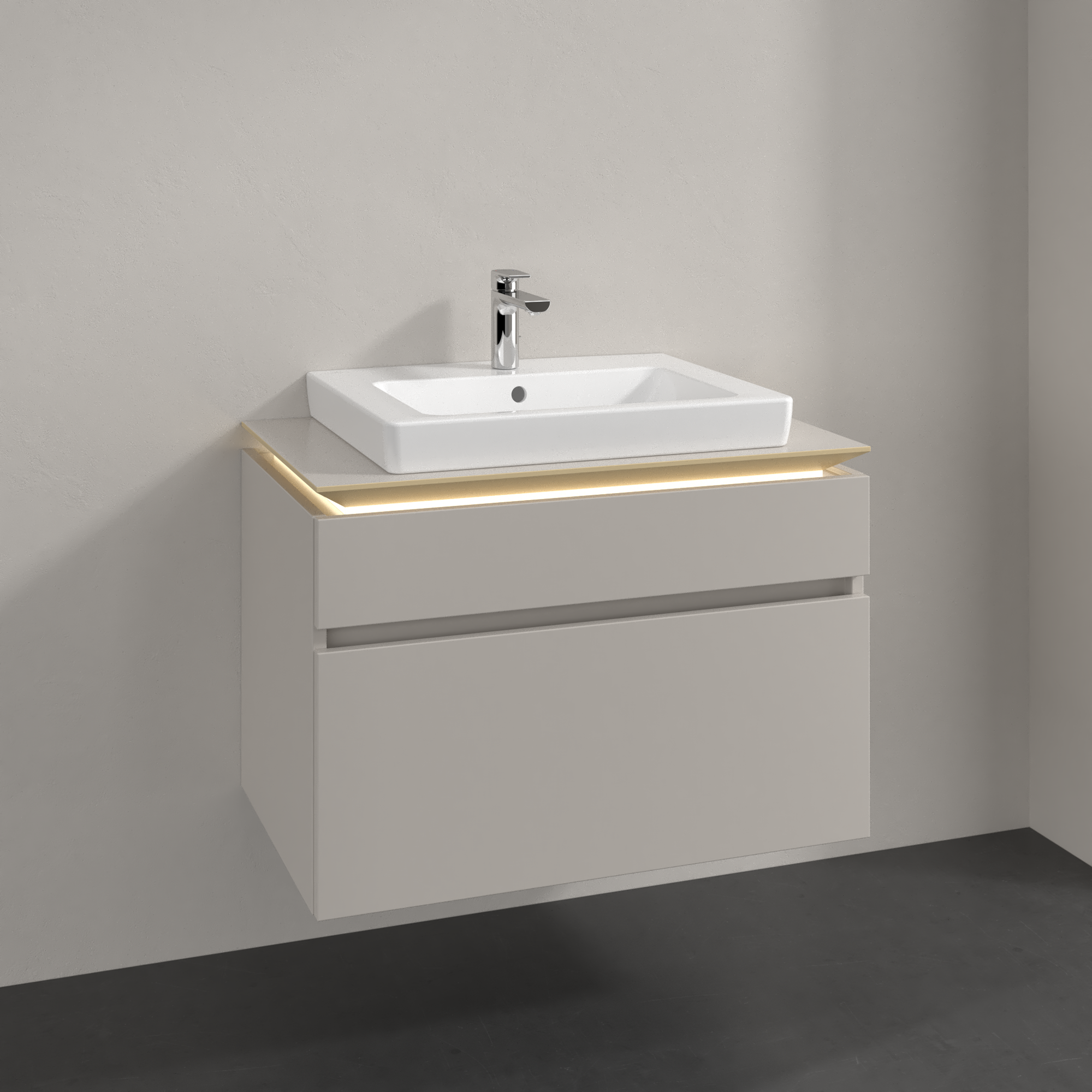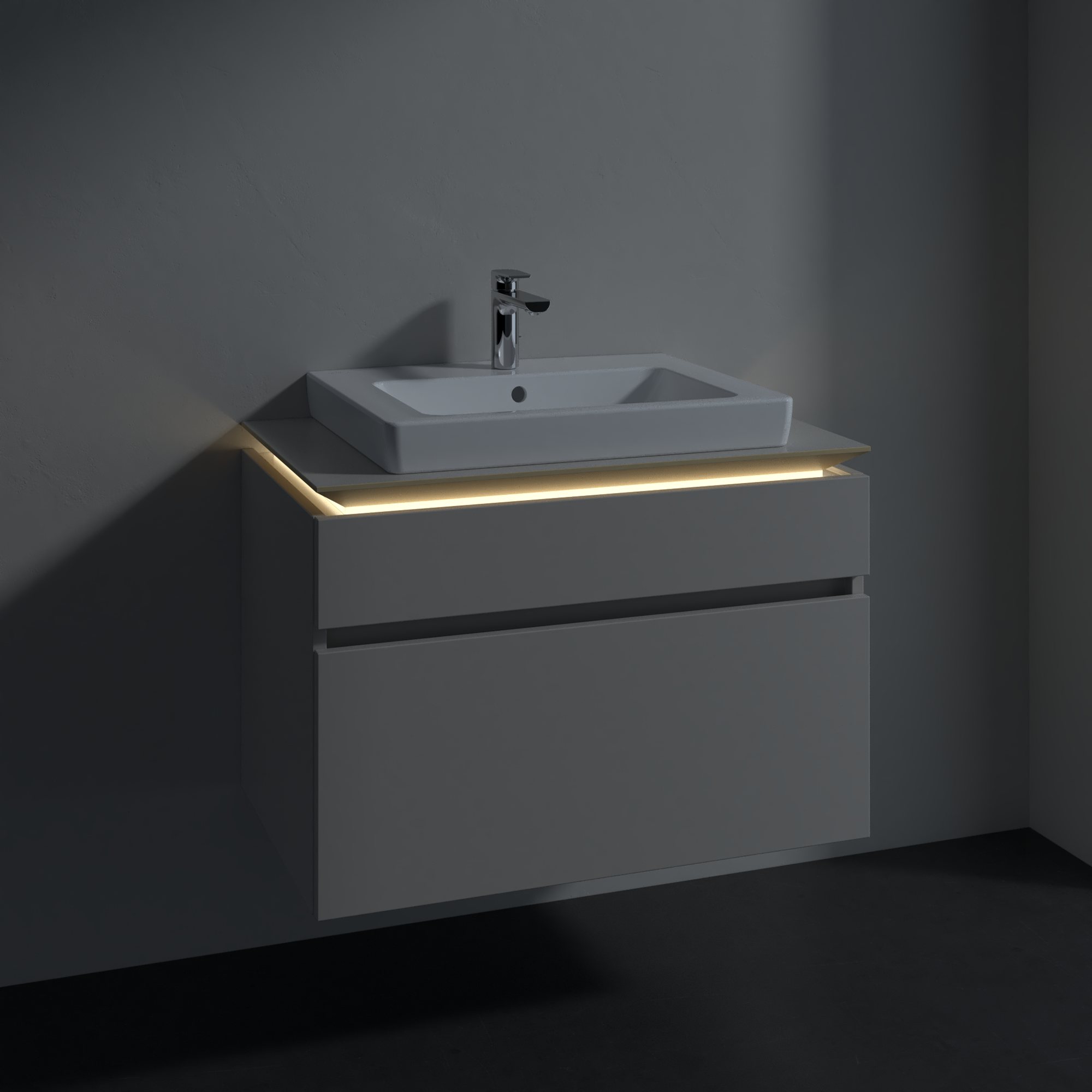 Legato Vanity unit, with lighting, 2 pull-out compartments, 800x550x500mm, Body: Soft Grey, Front: Soft Grey