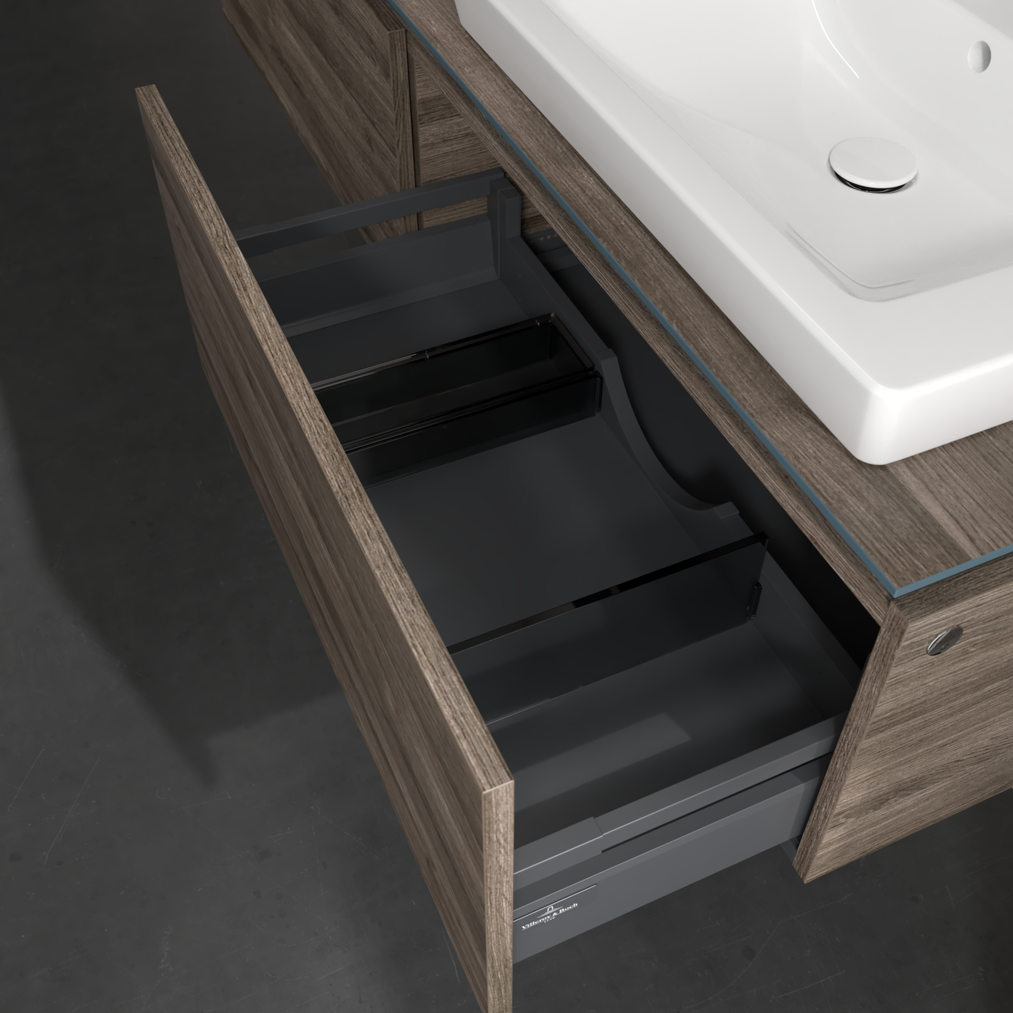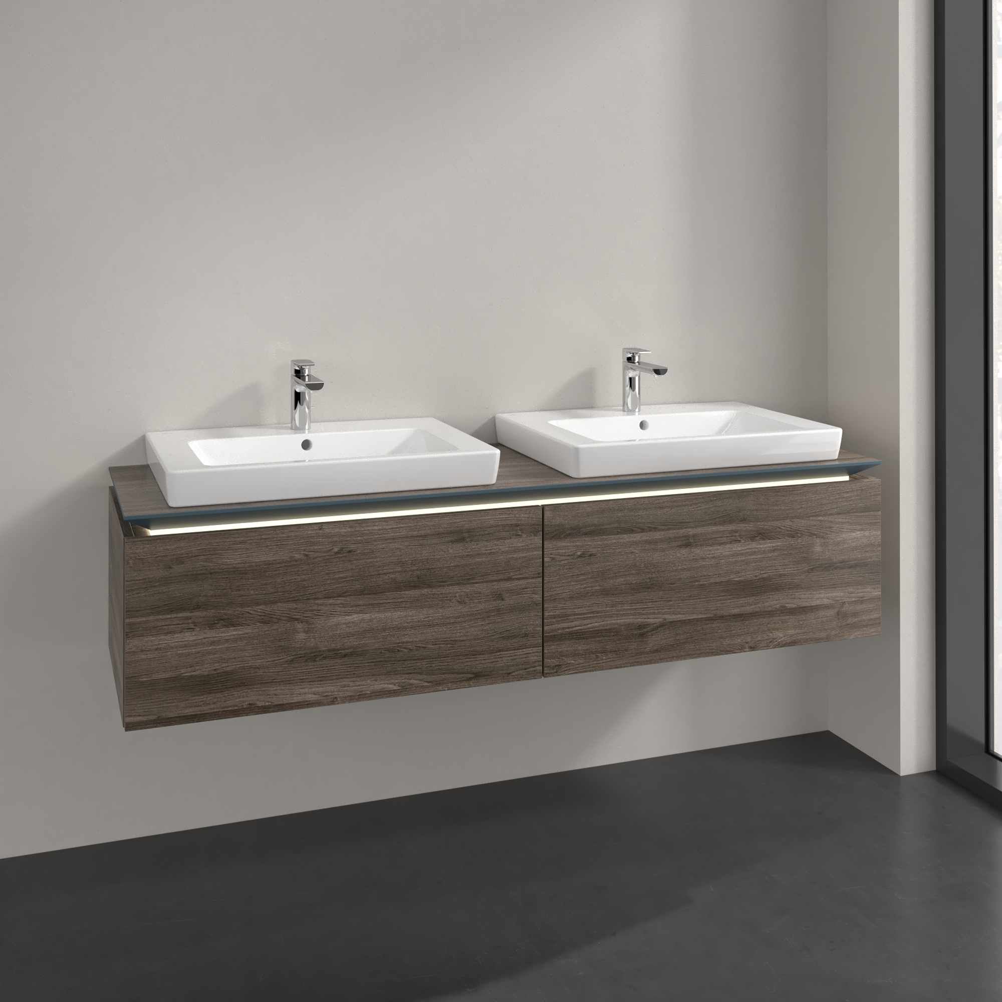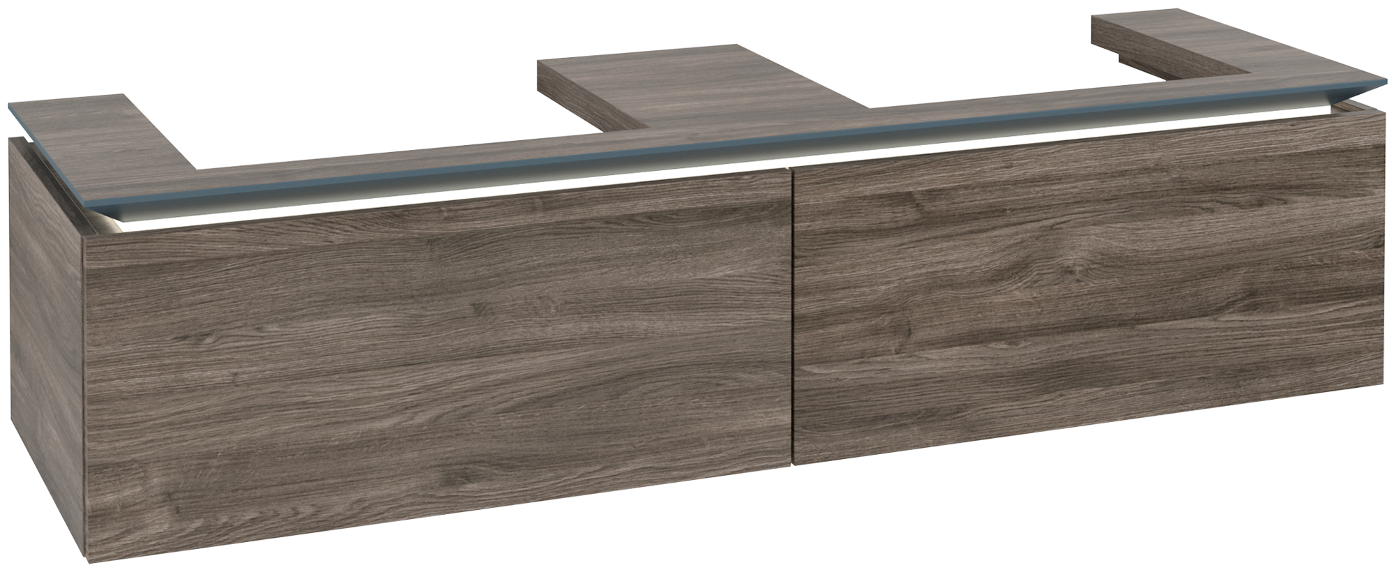 Legato Vanity unit, with lighting, 2 pull-out compartments, 1600x380x500mm, Body: Stone Oak, Front: Stone Oak