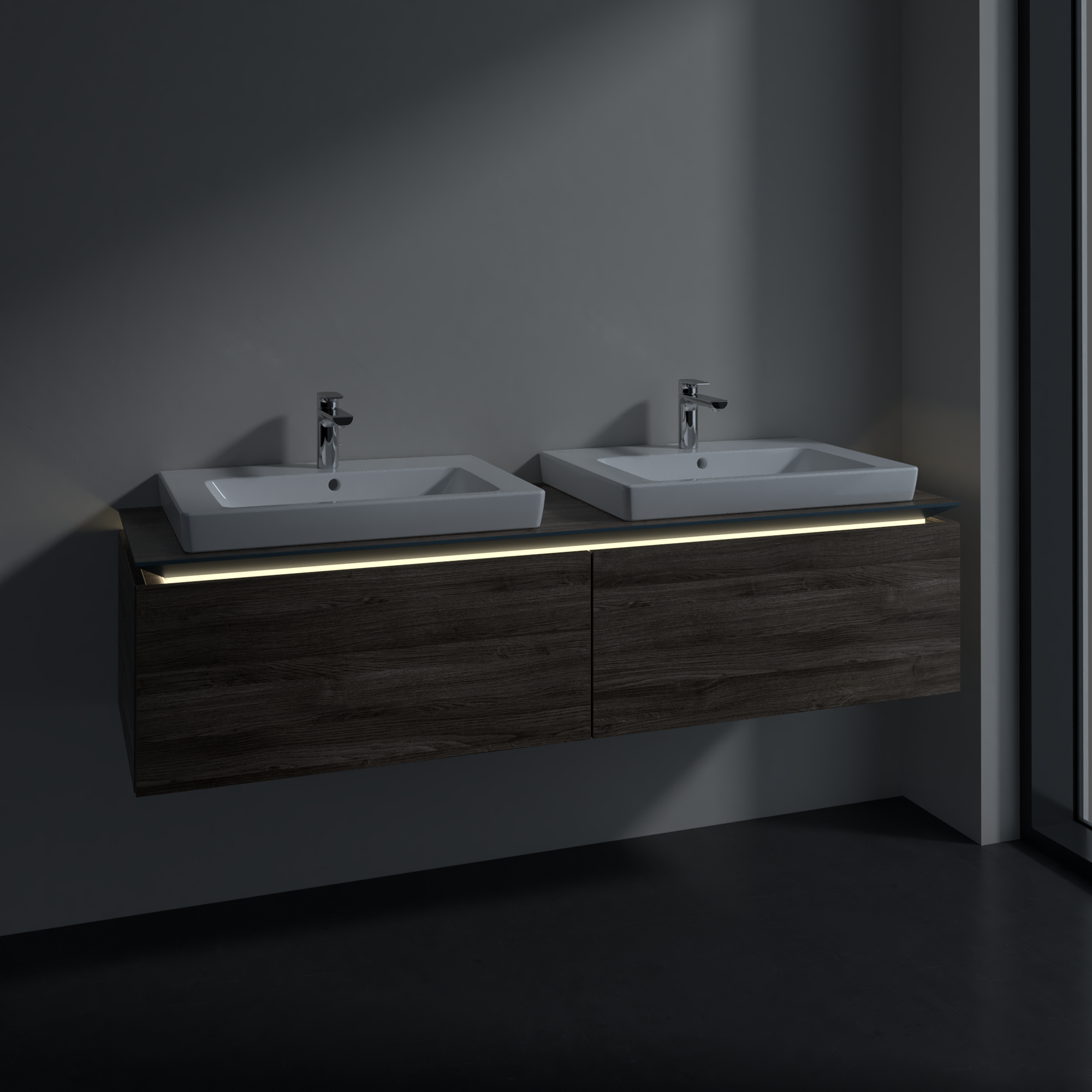 with LED lighting underneath the washbasin top