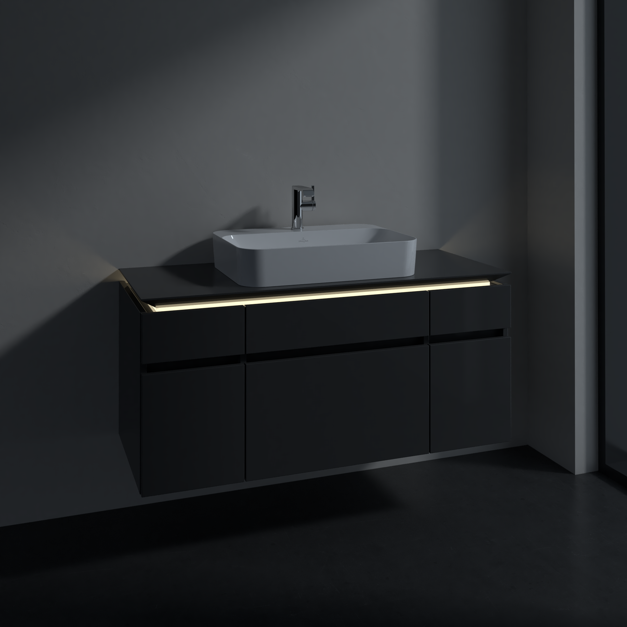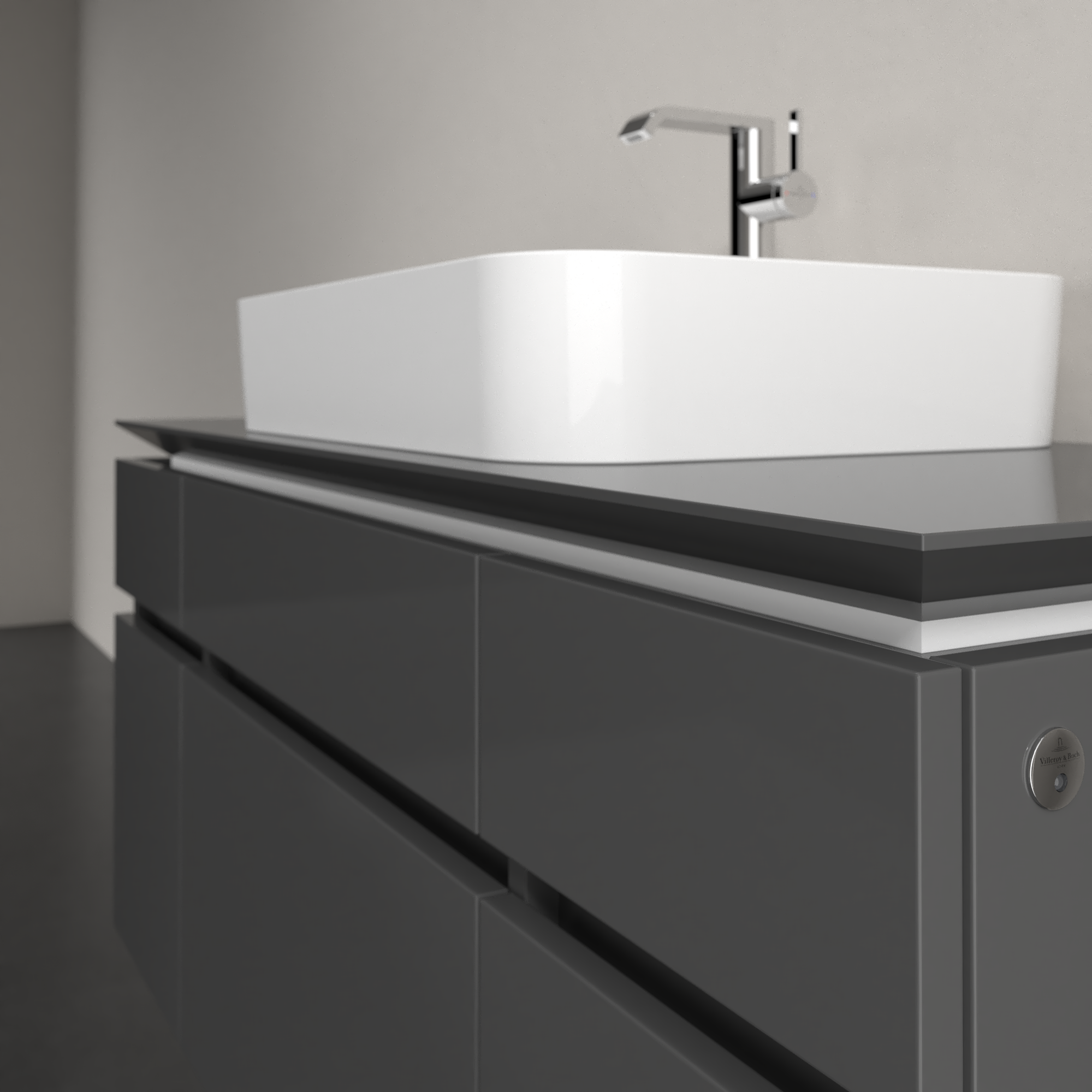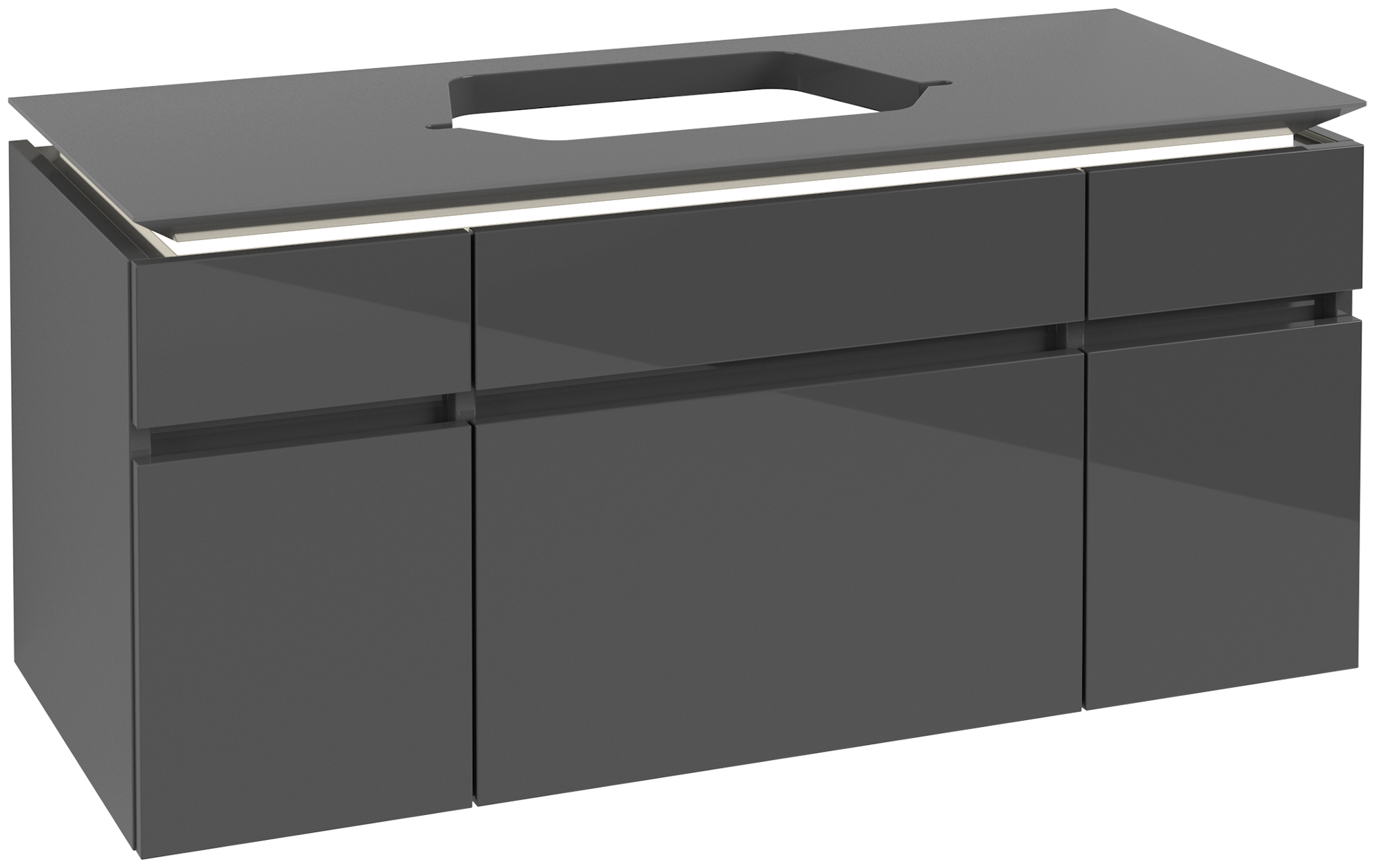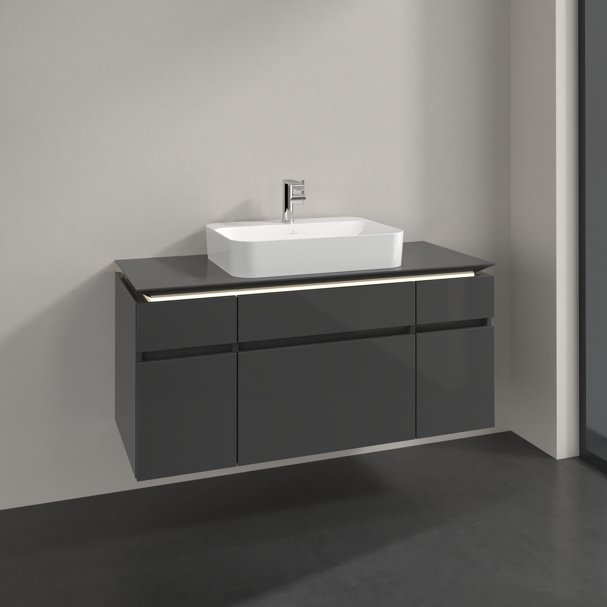 Legato Vanity unit, with lighting, 5 pull-out compartments, 1200x550x500mm, Body: Glossy Grey, Front: Glossy Grey