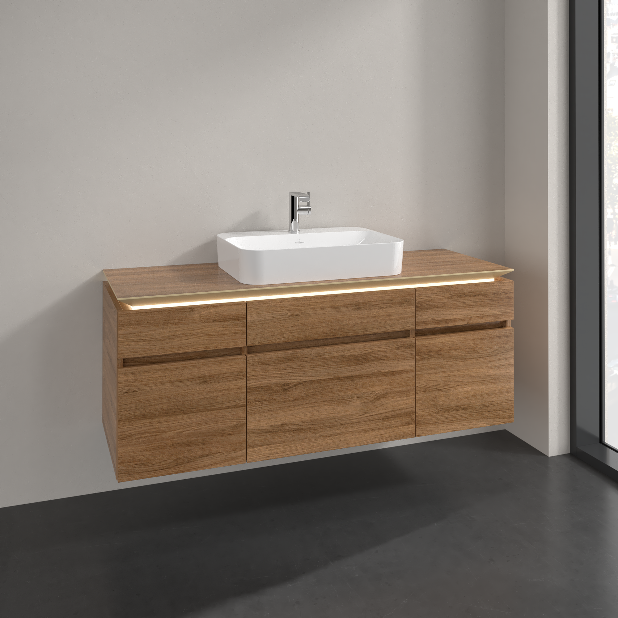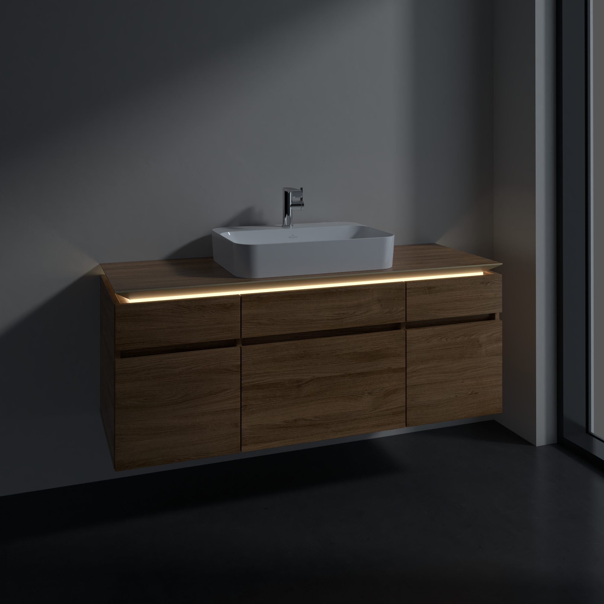 with LED lighting underneath the washbasin top