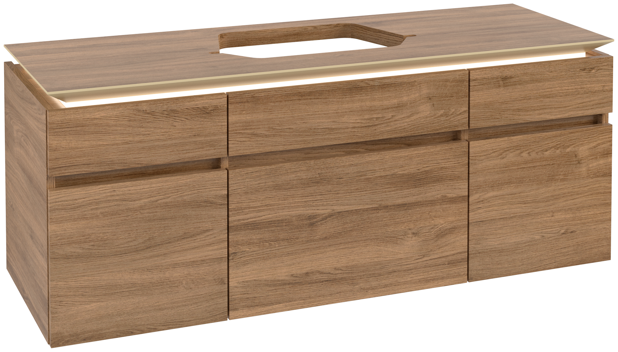 Legato Vanity unit, with lighting, 5 pull-out compartments, 1400x550x500mm, Body: Oak Kansas, Front: Oak Kansas