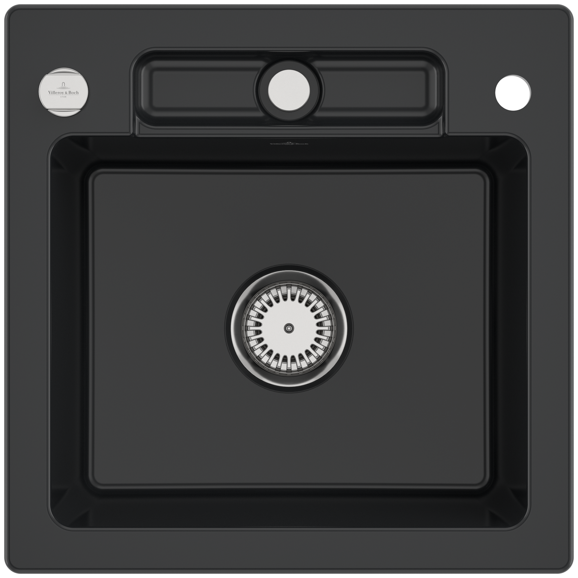 Siluet 50 S Built-in sink included Waste system with pop-up waste system, of TitanCeram, 510x510mm, Pure Black
