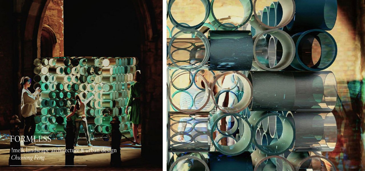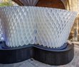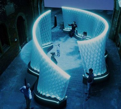 Each structure features a ripple-like geometry, informed by the hydrodynamic forms found in nature, such as river eddies and spiral ocean currents.