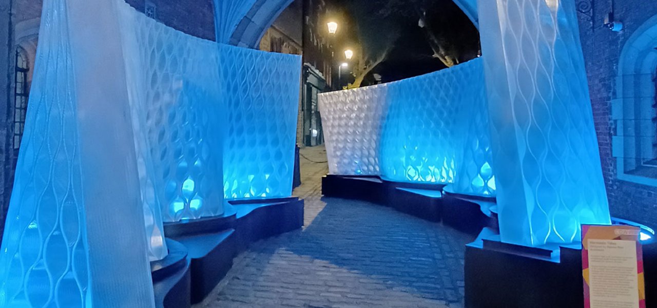 Described as a "water corridor" by Mamou-Mani, the installation comes to life with LED lighting that responds to the rhythmic pulse of waves, evoking the serenity of underwater landscapes.