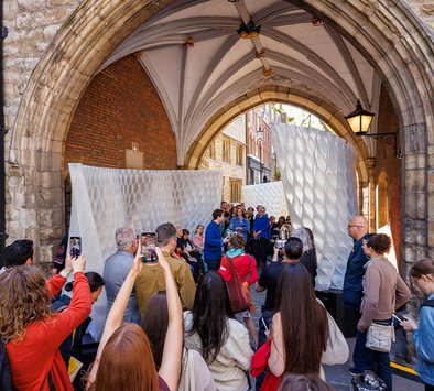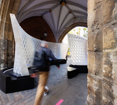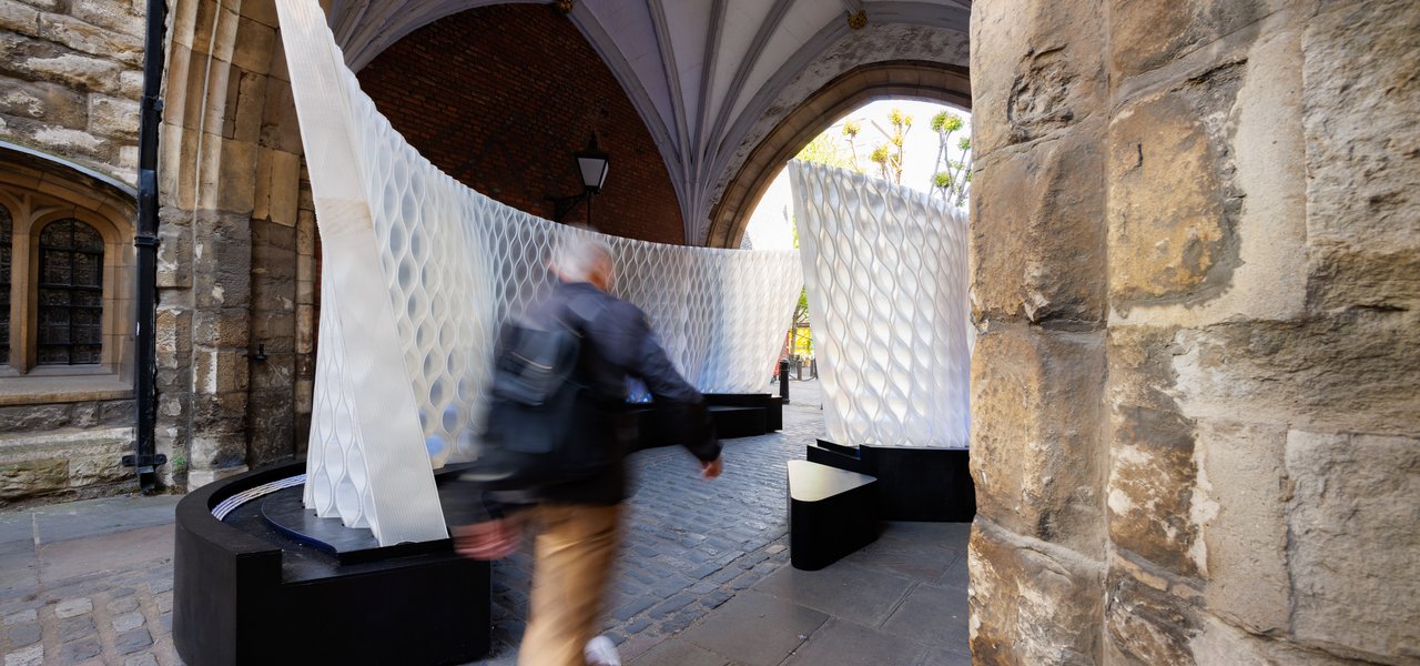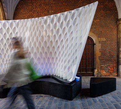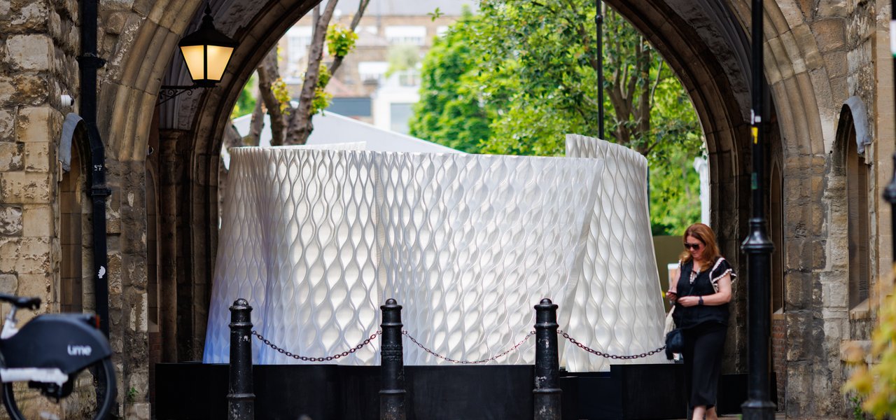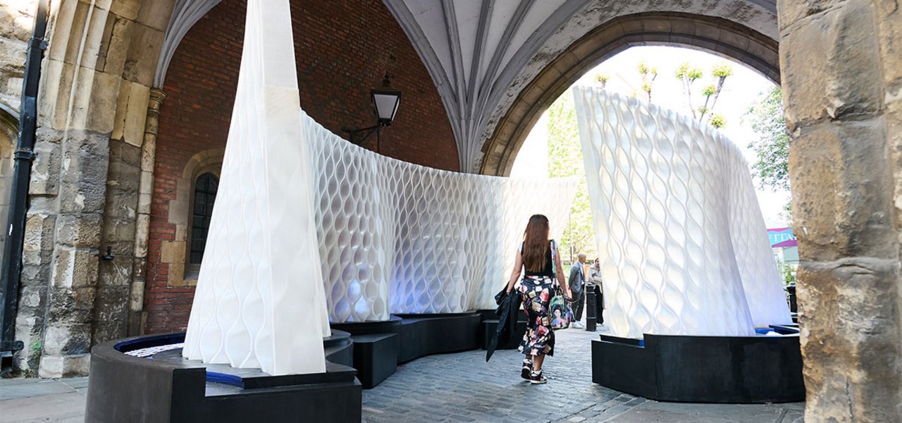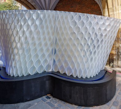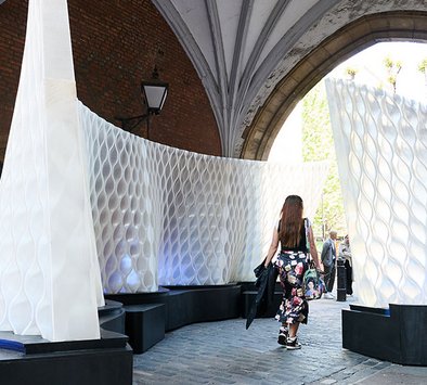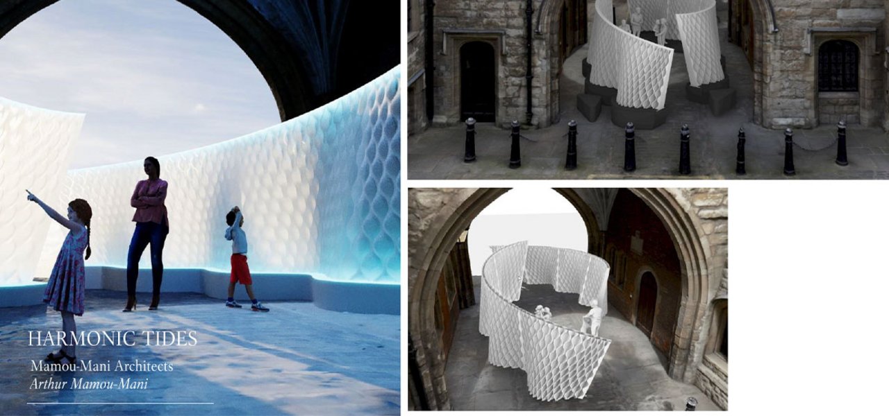 Called Harmonic Tides, Mamou-Mani's installation comprises two undulating 3D-printed walls reminiscent of waves.