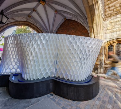 The modules are made using sugar-based PLA – an industrially compostable bioplastic derived from renewable resources – fabricated locally in Mamou-Mani's London studio.
