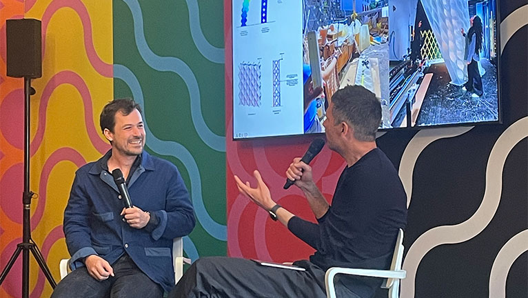 The winning designer of the Dezeen x Villeroy & Boch competition, joins Dezeen’s editorial director Max Fraser to discuss some of the concepts they have explored in their installation at Clerkenwell Design Week.