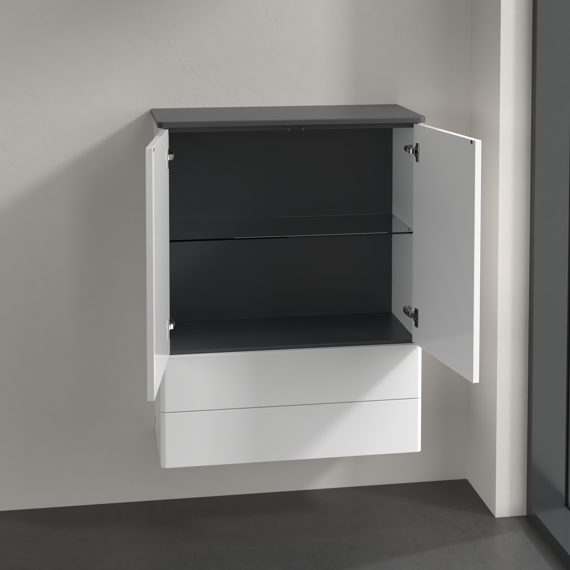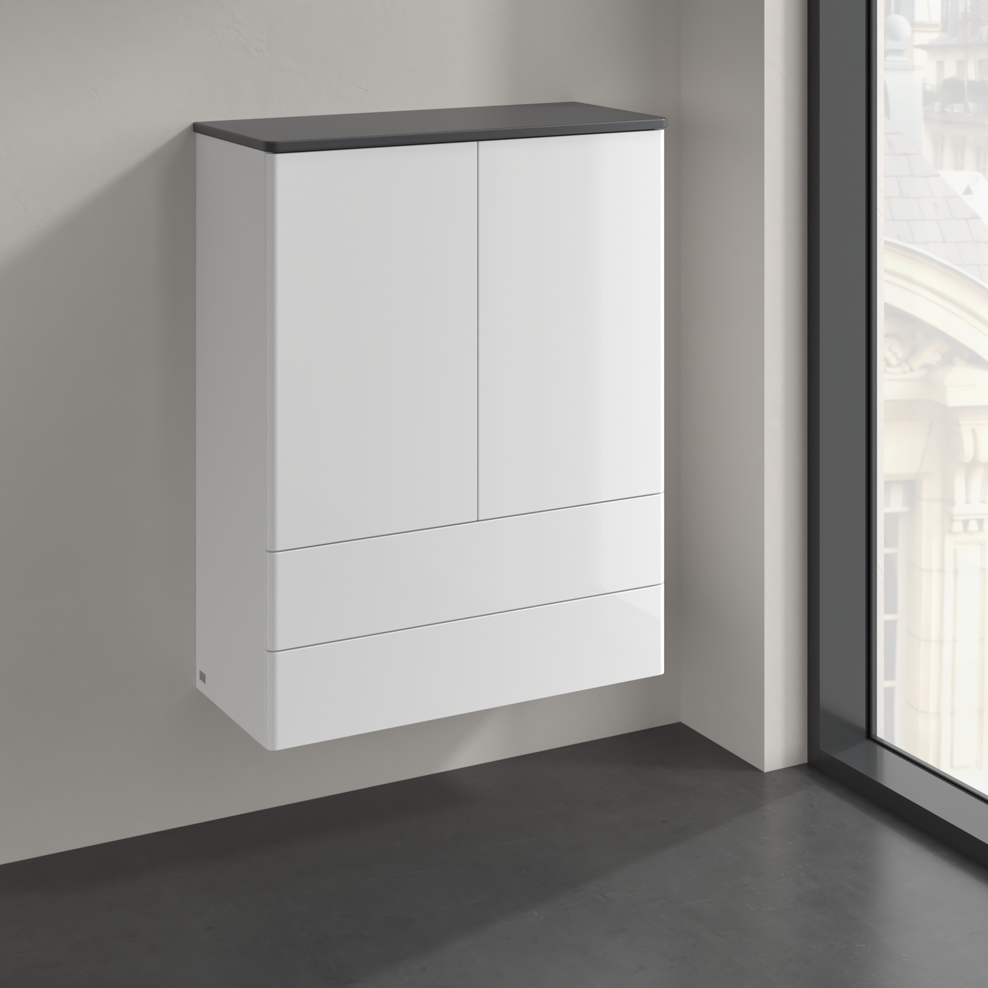 Antao Highboard, 2 doors, 814x1039x356mm, Front without structure, Body: Glossy White Lacquer, Front: Glossy White Lacquer, Cover plate: Glossy White Lacquer