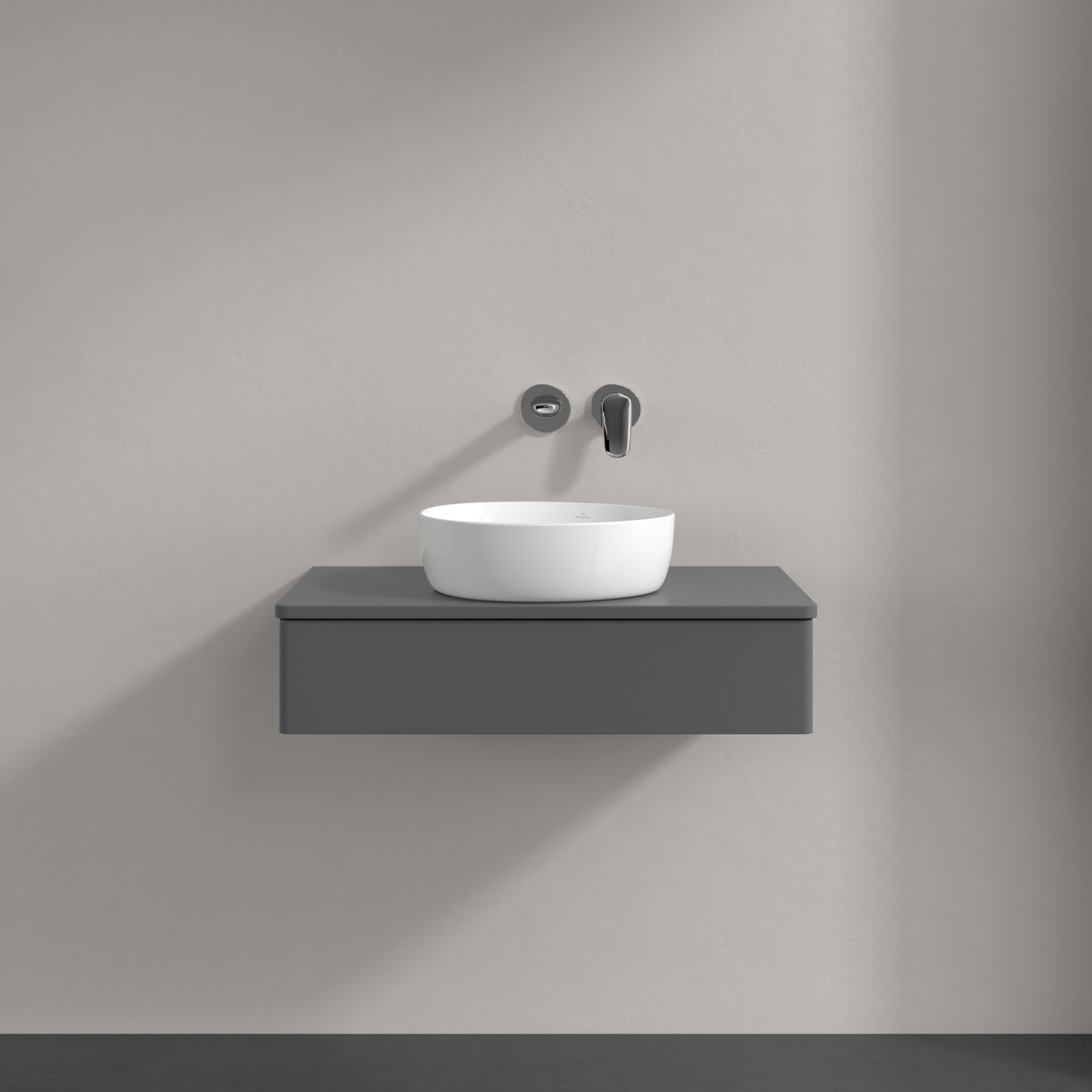Antao Vanity unit, 1 pull-out compartment, 800x190x500mm, Front without structure, Body: Anthracite Matt Lacquer, Front: Anthracite Matt Lacquer, Cover plate: Anthracite Matt Lacquer