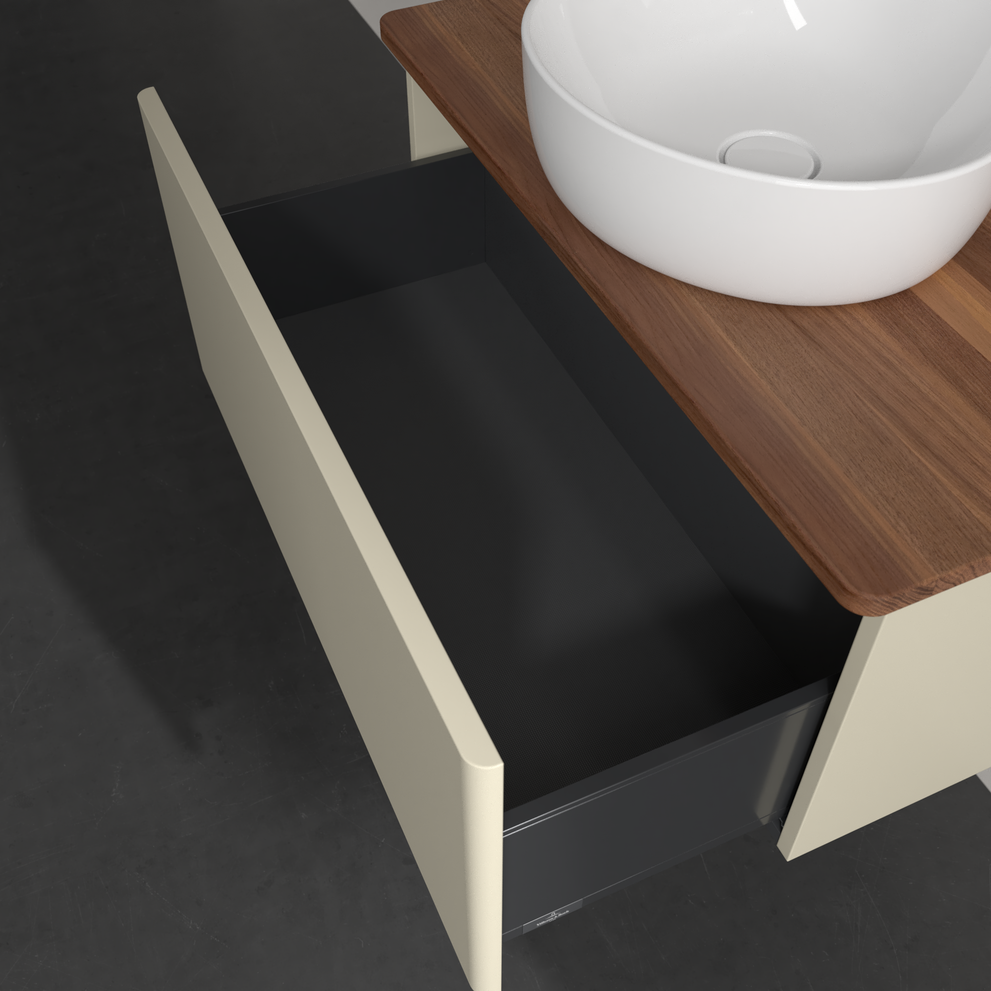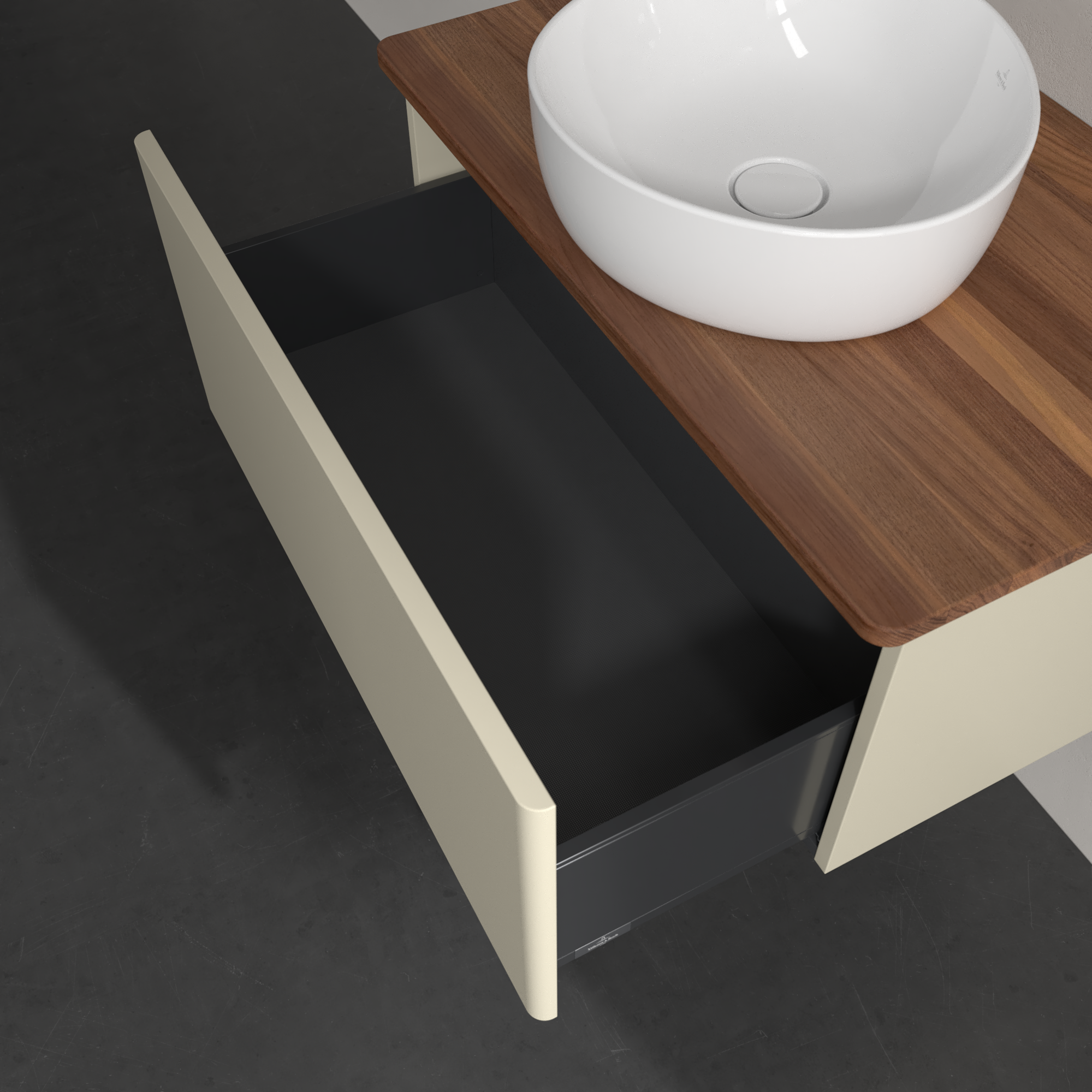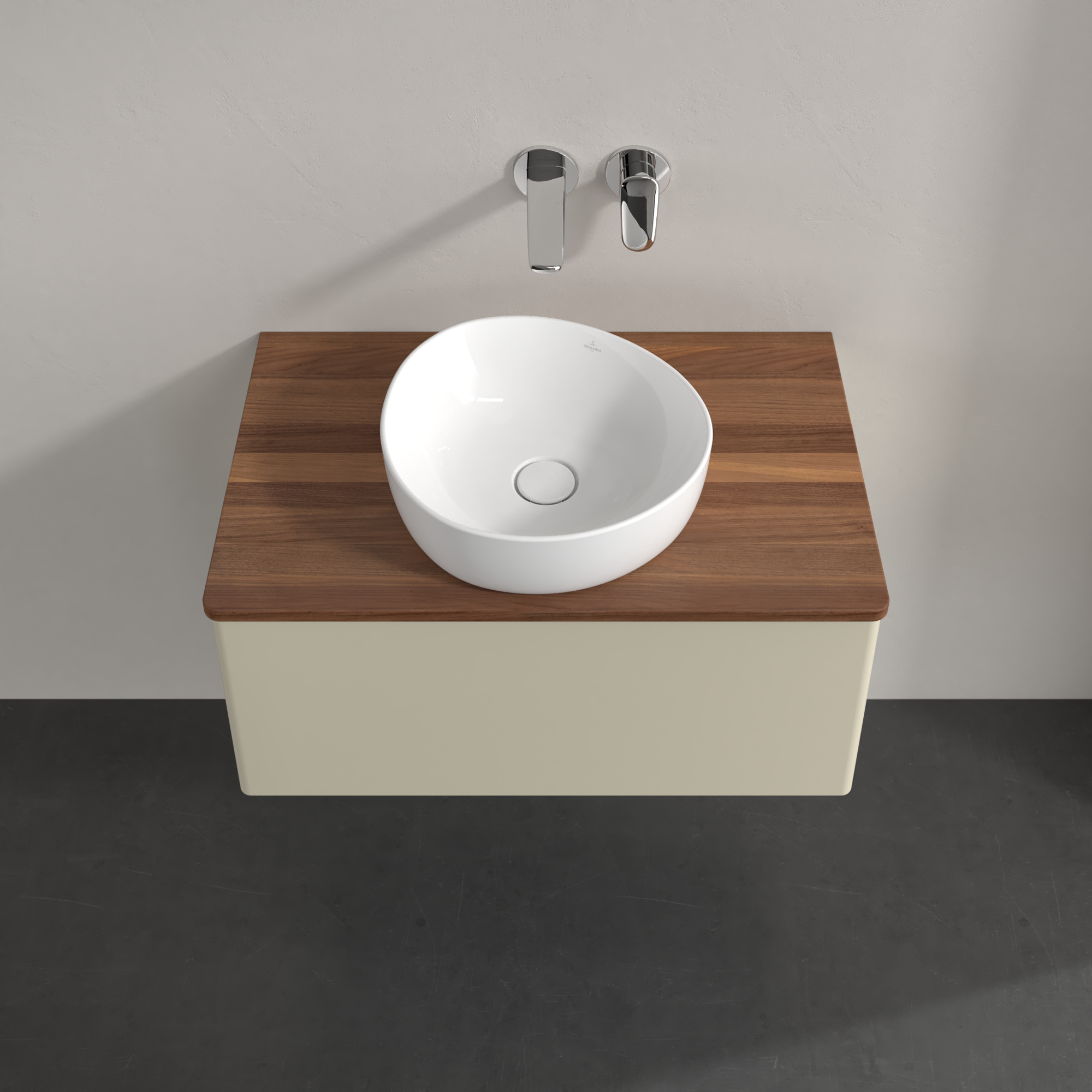 Antao Vanity unit, 1 pull-out compartment, 800x360x500mm, Front without structure, Body: Silk Grey Matt Lacquer, Front: Silk Grey Matt Lacquer, Cover plate: Warm Walnut