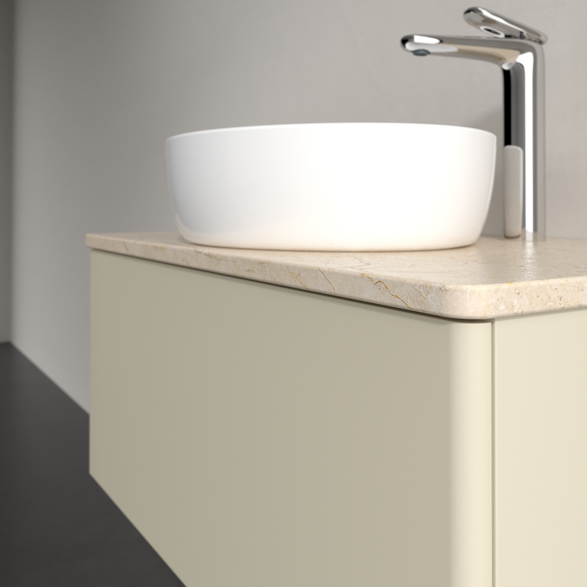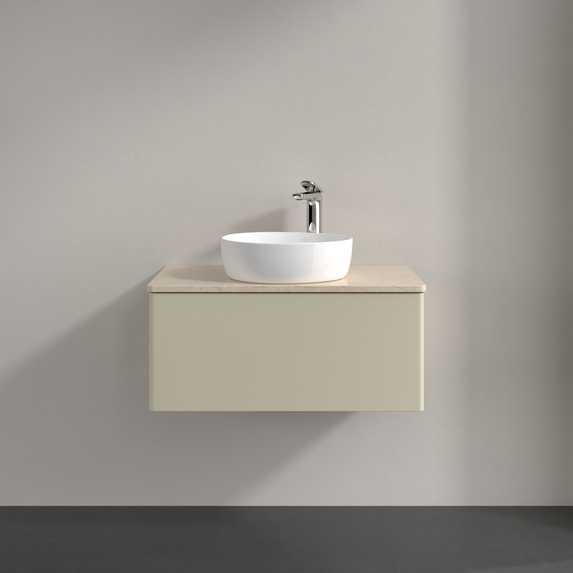 Antao Vanity unit, 1 pull-out compartment, 800x360x500mm, Front without structure, Body: Silk Grey Matt Lacquer, Front: Silk Grey Matt Lacquer, Cover plate: Botticino