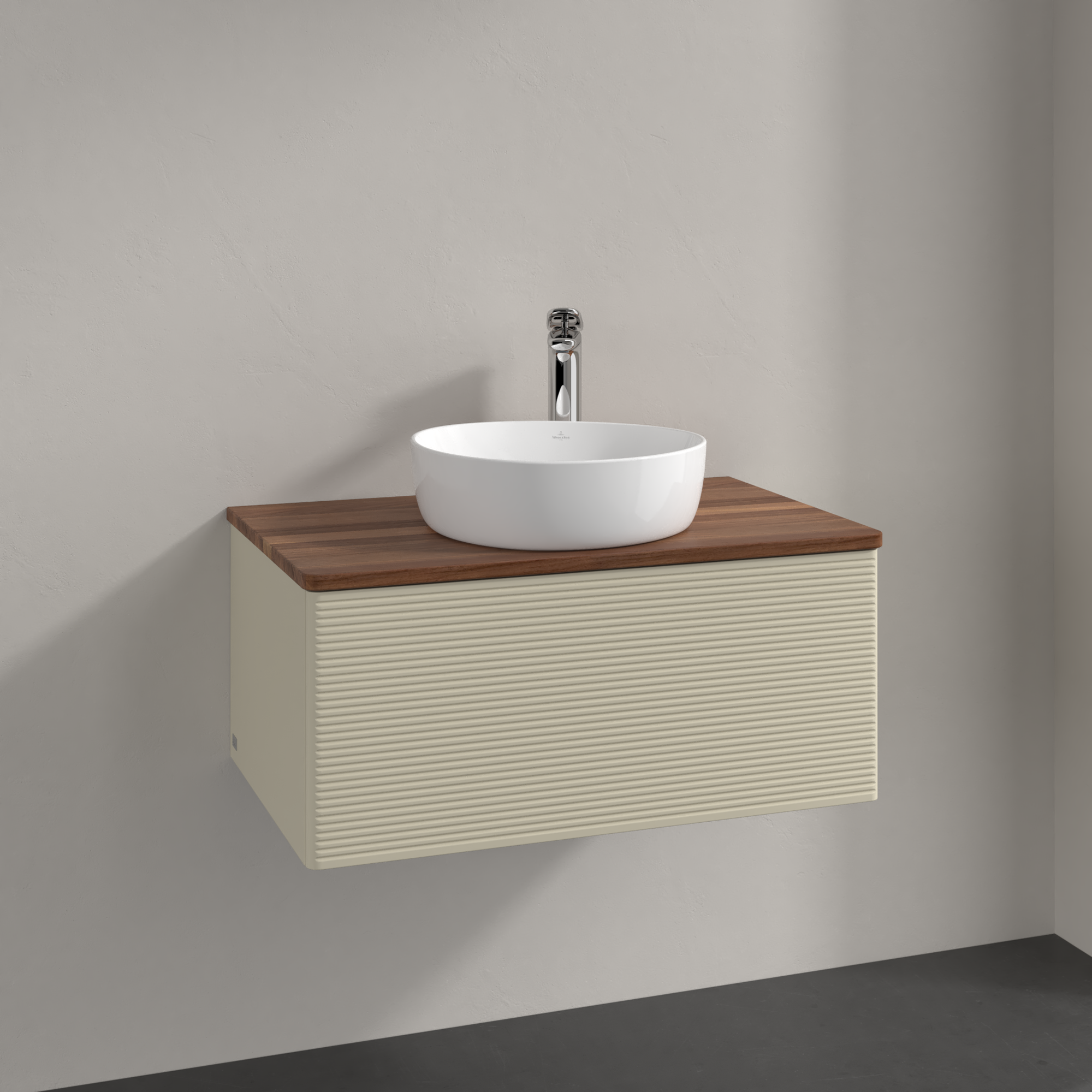 Antao Vanity unit, 1 pull-out compartment, 800x360x500mm, Front with grain texture, Body: Silk Grey Matt Lacquer, Front: Silk Grey Matt Lacquer, Cover plate: Warm Walnut