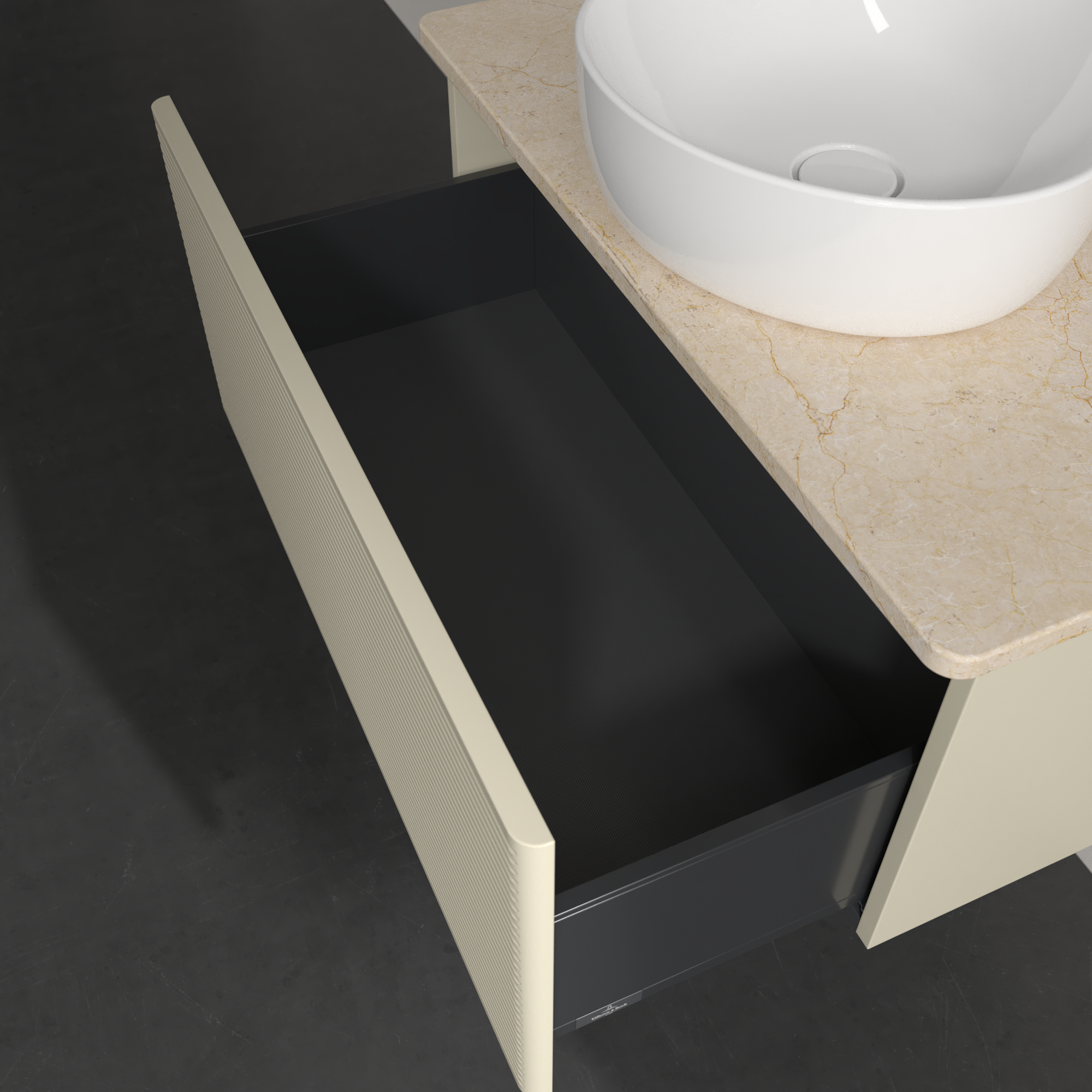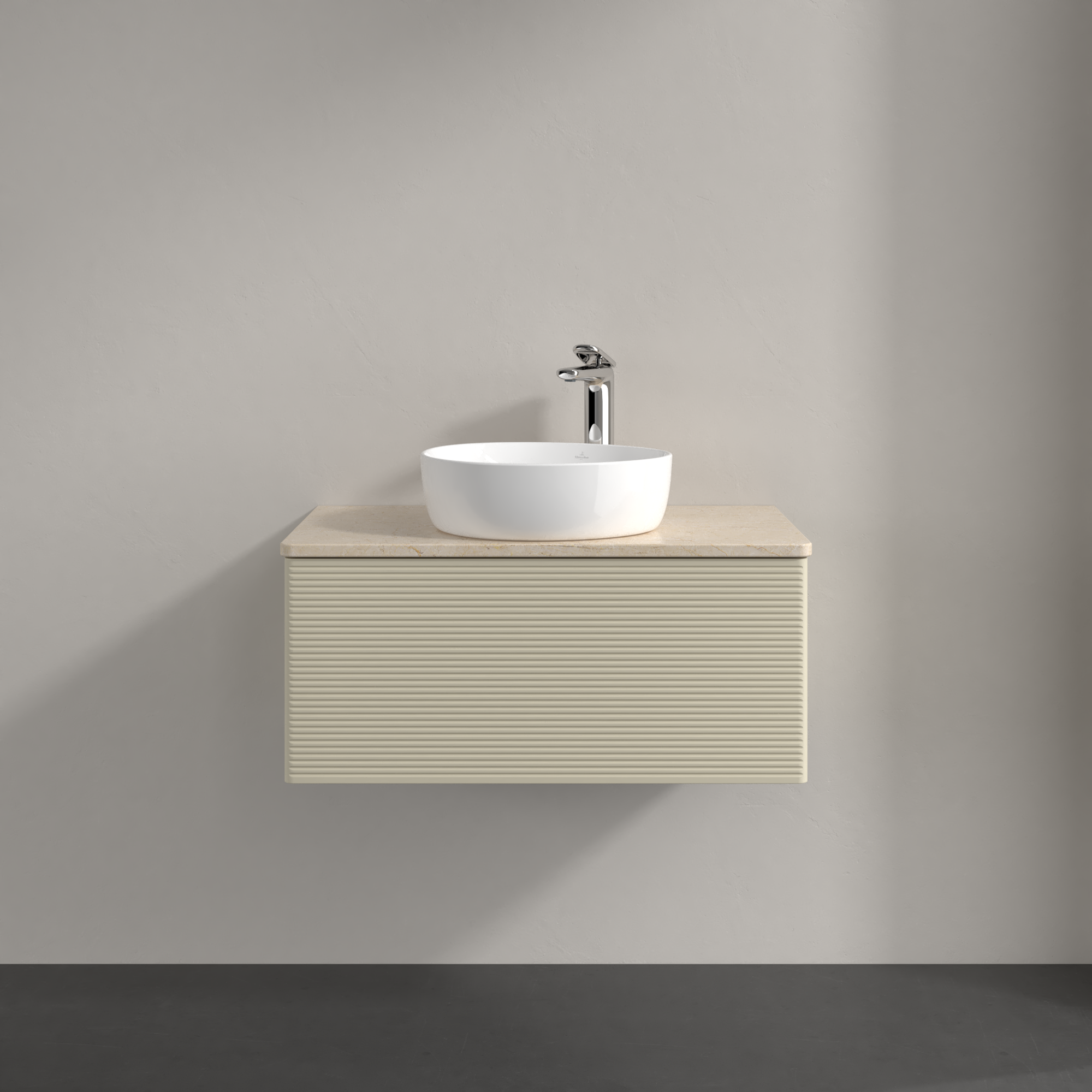 Antao Vanity unit, 1 pull-out compartment, 800x360x500mm, Front with grain texture, Body: Silk Grey Matt Lacquer, Front: Silk Grey Matt Lacquer, Cover plate: Botticino